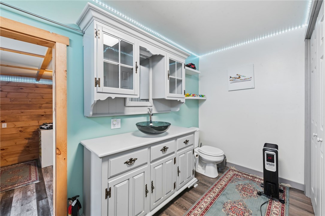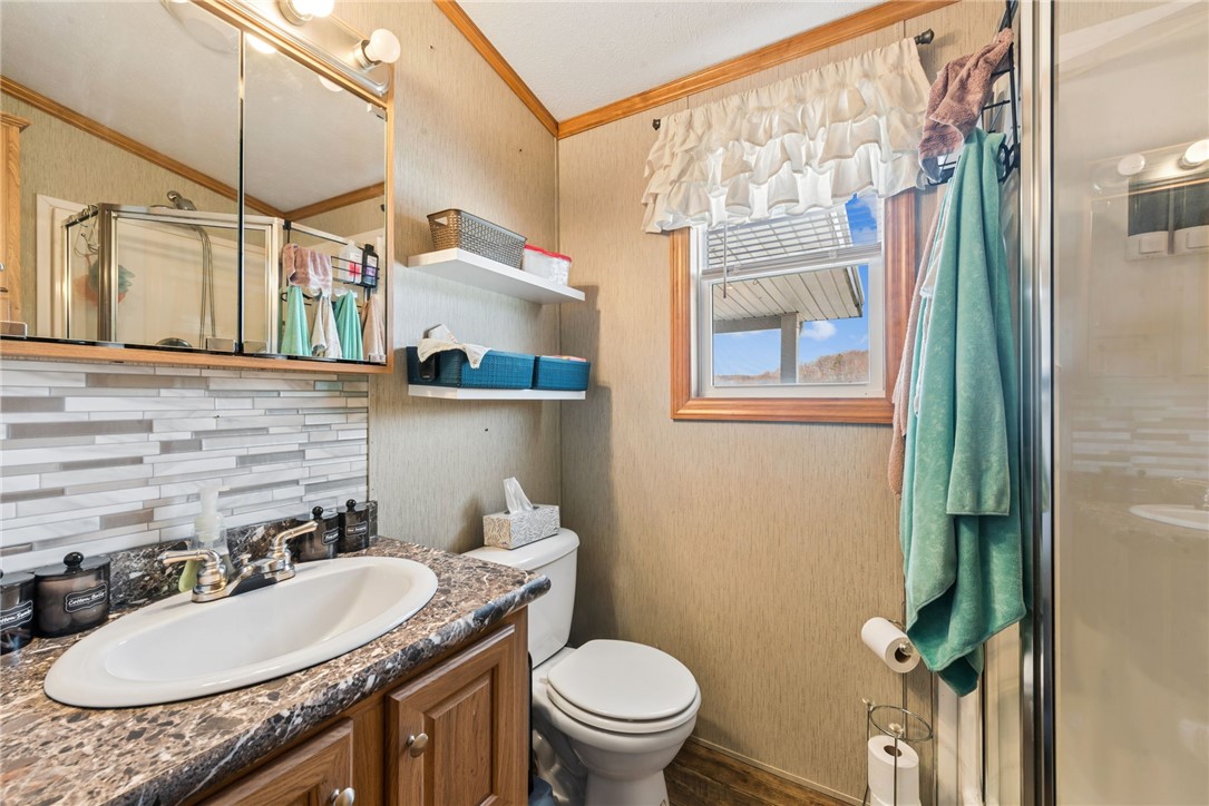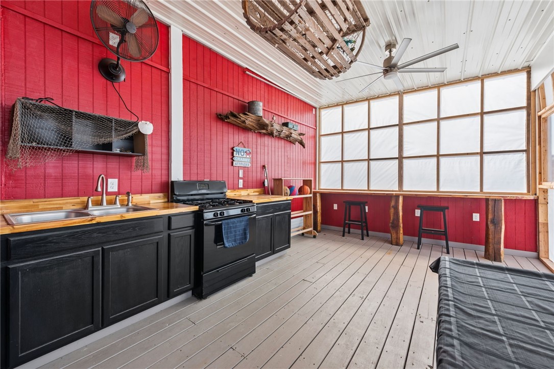 Welcome to 300 Clubhouse Drive in the scenic Laurel Highlands, a truly unique property ideal for a full-time residence or relaxing mountain getaway. This 1-bedroom, 1-bath park model home offers a comfortable and functional layout designed to maximize both indoor and outdoor living. The cozy living room is bright and inviting, featuring two sliding glass doors that fill the space with natural light and provide seamless access to the covered wrap-around porch, perfect for morning coffee or evening relaxation. The fully equipped kitchen includes all appliances along with both a dining area and bar seating, making it ideal for everyday living or entertaining. The bedroom offers convenient overhead storage and a closet, while the stackable washer and dryer add to the home's practicality. A standout feature is the impressive 18x12 outdoor kitchen designed for both the chef and guests. This covered entertaining space includes a gas stove, refrigerator, sink, ample counter and cabinet space, and a beautiful wood bar that creates a warm and inviting gathering area. Attached is a bonus space that can serve as additional sleeping quarters or guest space along with a convenient half bath and extra storage, making outdoor entertaining effortless. Additional exterior structures enhance the property's versatility, including an 11x10 shed with a covered porch and loft, perfect for storage, hobbies, or a workshop, and a 14x12 shed for recreational equipment or additional storage. All exterior buildings are equipped with electricity for added convenience. Situated on a leased lot, the property includes water, sewer, and trash service along with access to amenities offered through Laurel Highlands Campland. With its blend of comfortable living, exceptional outdoor entertaining spaces, and multiple accessory buildings, this property offers a rare opportunity to enjoy mountain living with character, convenience, and versatility.