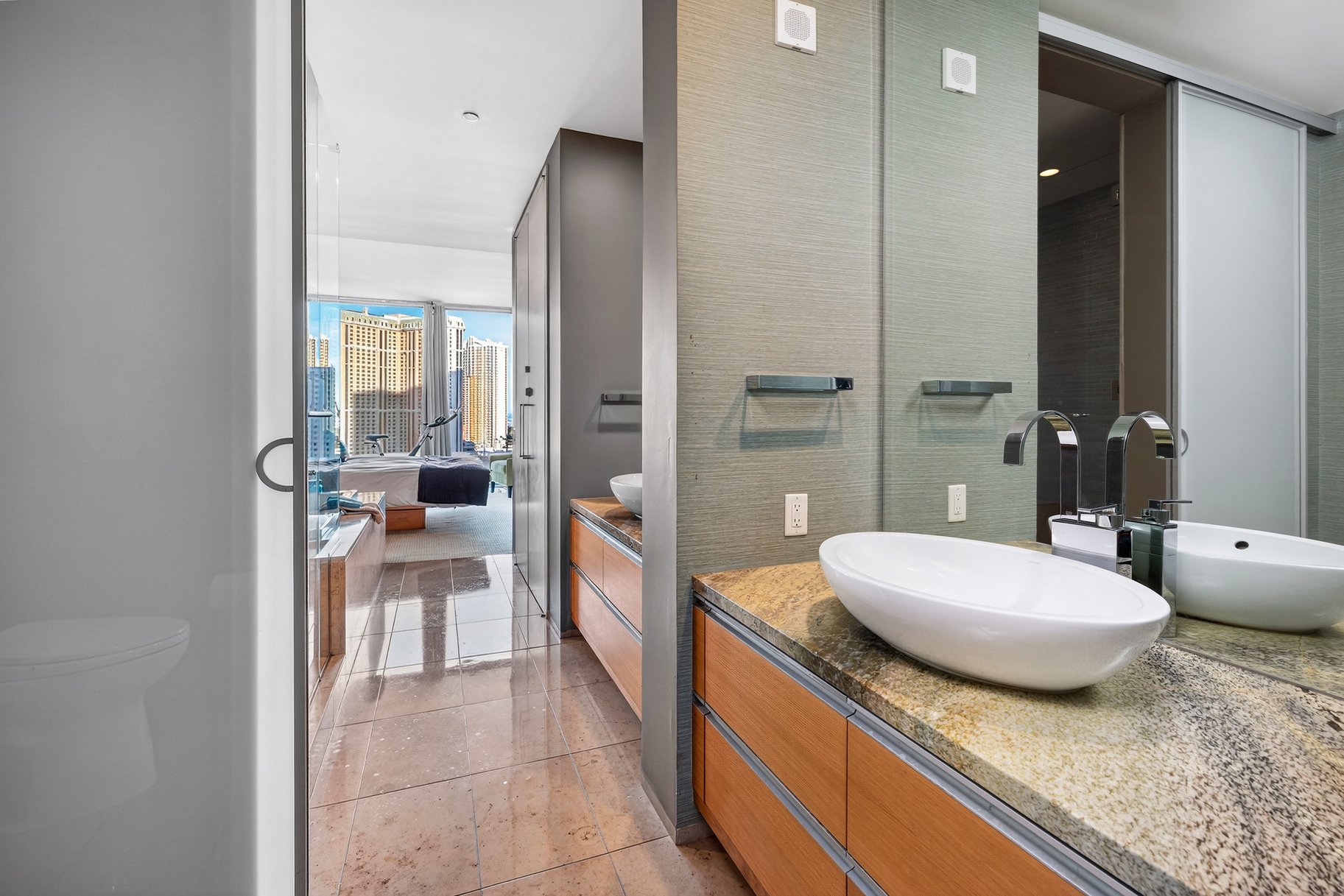 Experience one of the most captivating vantage points of the Las Vegas Strip from Veer Towers Residence 802—an exceptional two-bedroom offering in the heart of CityCenter. This rare home showcases F1 views, Strip views, city skyline, and surrounding mountains, delivering a dynamic panorama both day and night. Set within one of the most prestigious developments in the United States, Veer Towers offers a refined, resort-style lifestyle with 24-hour valet and concierge, a rooftop pool and spa, private cabanas with BBQs, a top-floor lounge, fitness center, billiards room, and business center. Surrounded by world-class dining, luxury retail, and premier entertainment, residents enjoy immediate access to Las Vegas Boulevard and are just moments from T-Mobile Arena’s concerts, sporting events, and nightlife. Ideally located less than 10 minutes from the airport, this residence offers effortless access to all of Las Vegas.