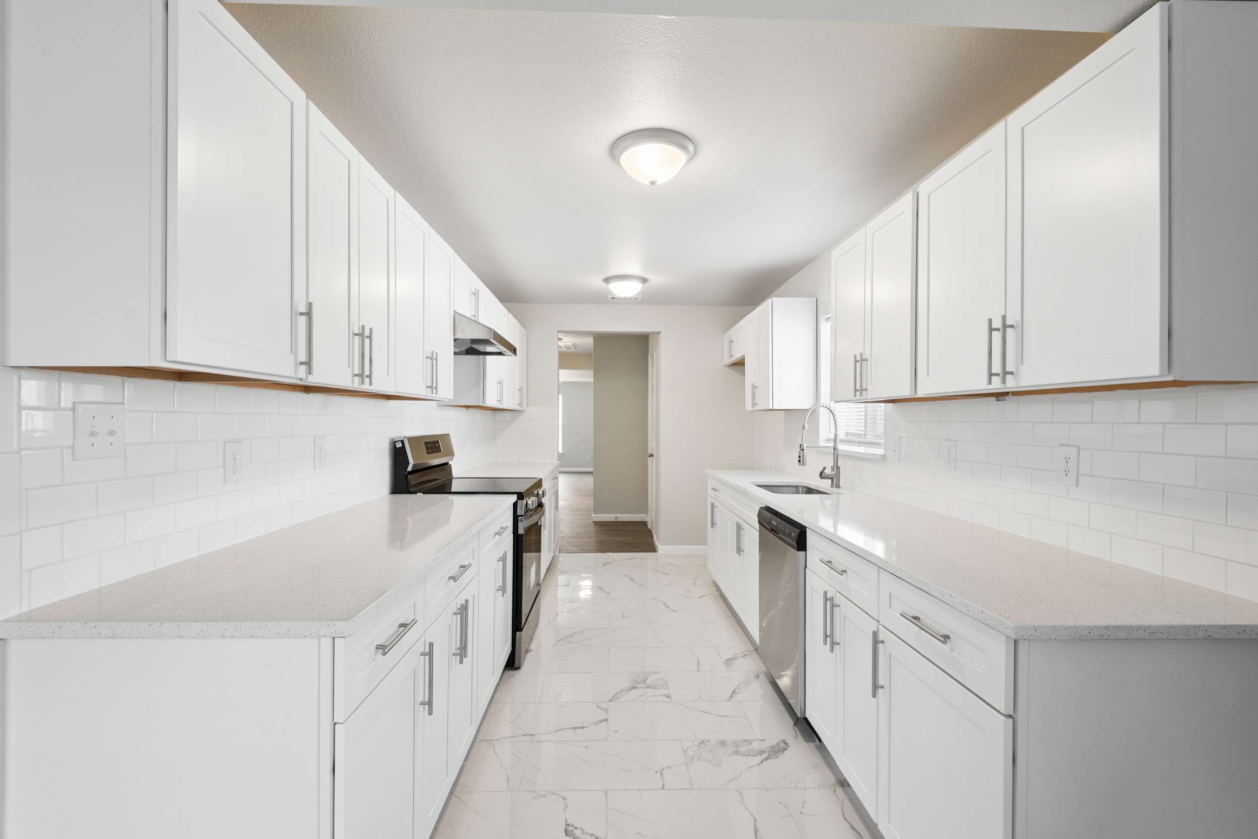 Welcome Home to a beautifully reimagined 3-bedroom, 2-bath home where every detail has been updated from top to bottom. This turnkey property features all-new electrical, HVAC, roof, windows, insulation, flooring, and fixtures—providing the peace of mind of a new build with the charm of an established neighborhood. Step inside to an open, light-filled layout with a brand-new kitchen showcasing quartz countertops, stainless steel appliances, new cabinetry, and an open lay-out perfect for gathering. The spacious living area flows seamlessly for entertaining, while the bathroom feature new tile tile, modern quartz vanities, and high-end finishes. Outside, enjoy a refreshed exterior, a gorgeous wrap-around porch, and a large backyard ready for your personal touch. Everything is done—move in and start living.