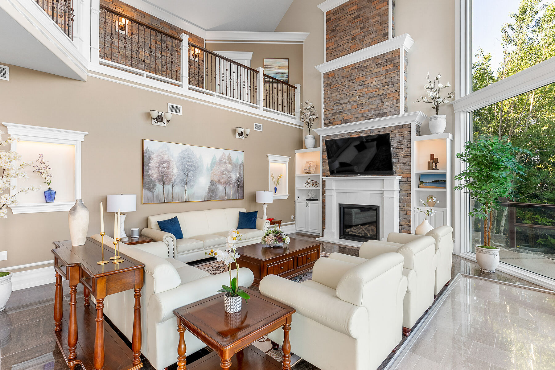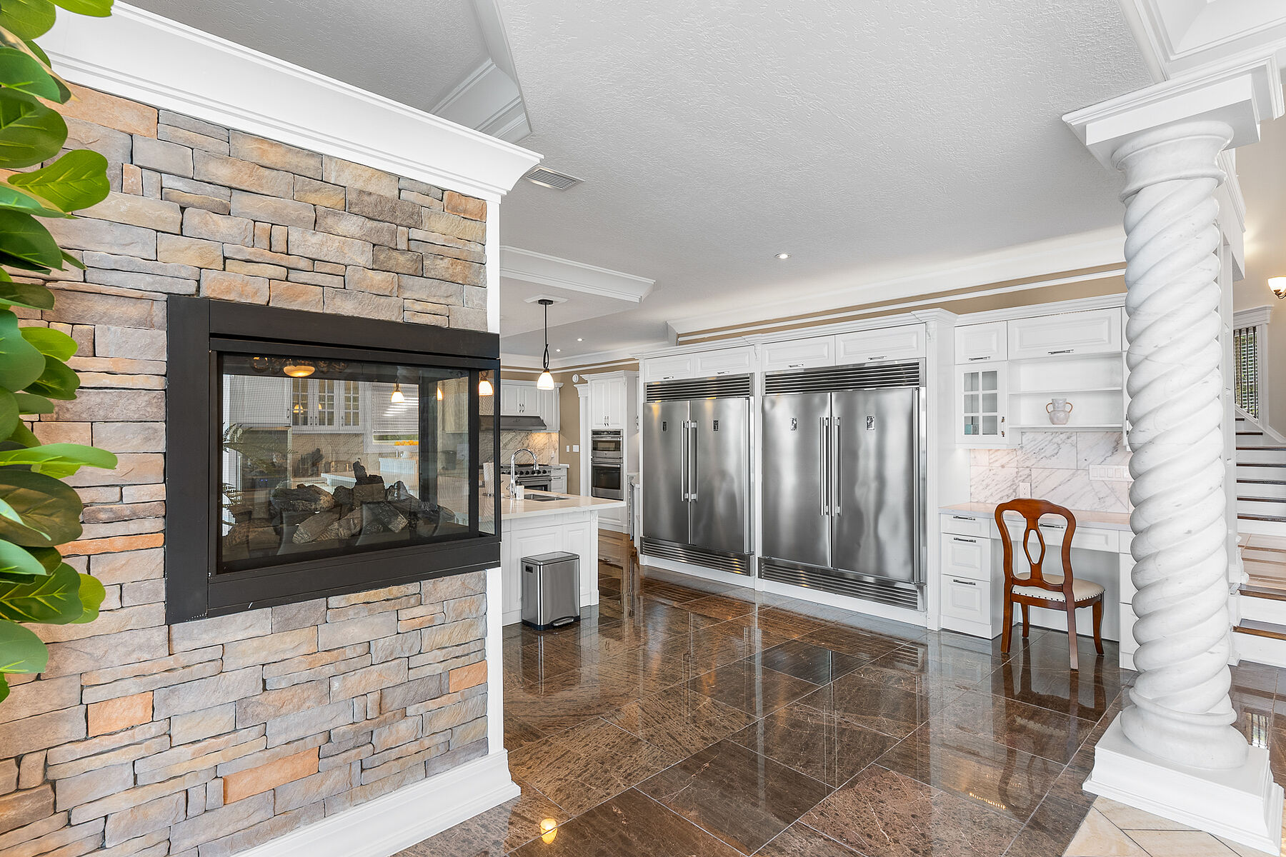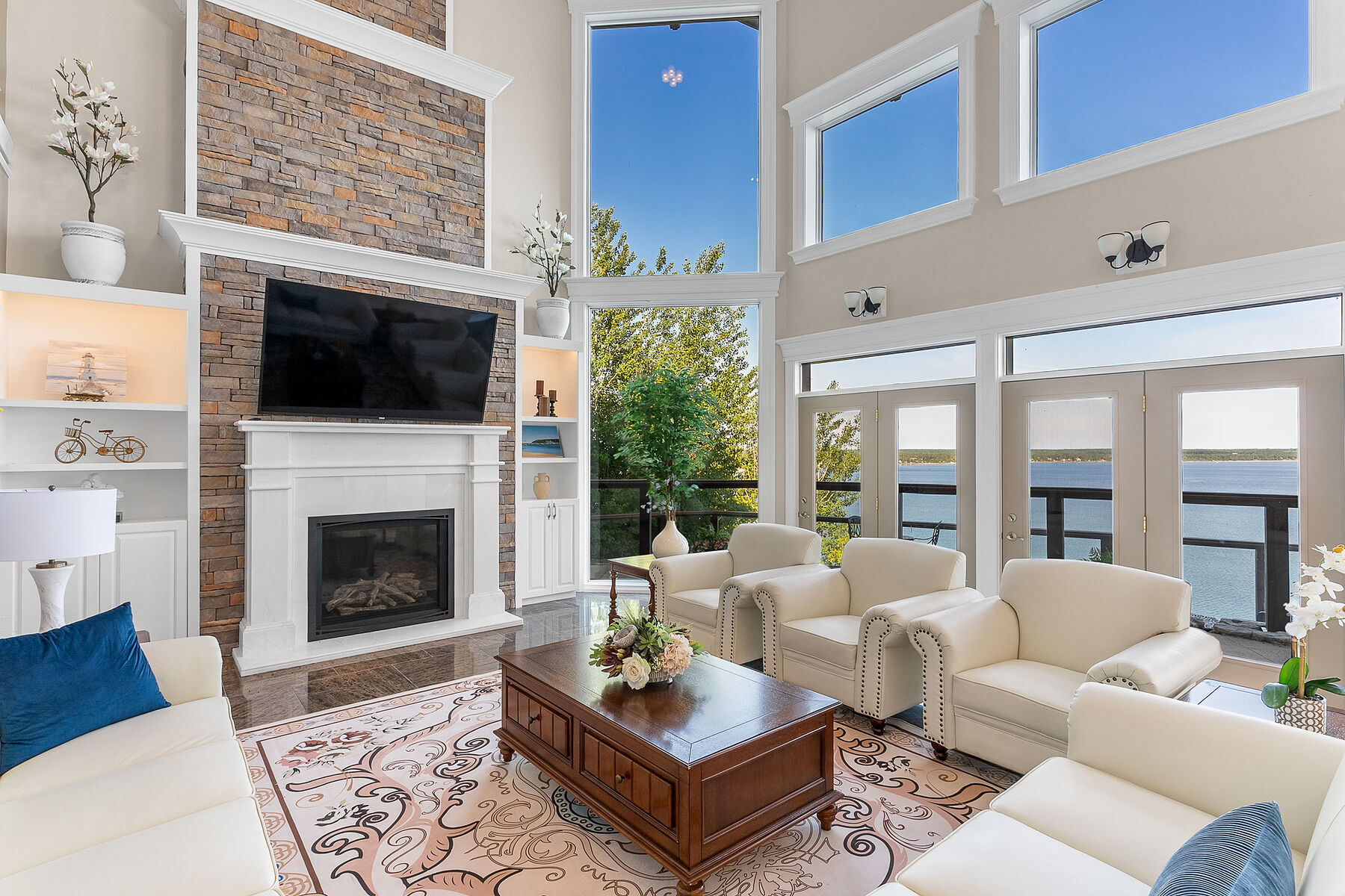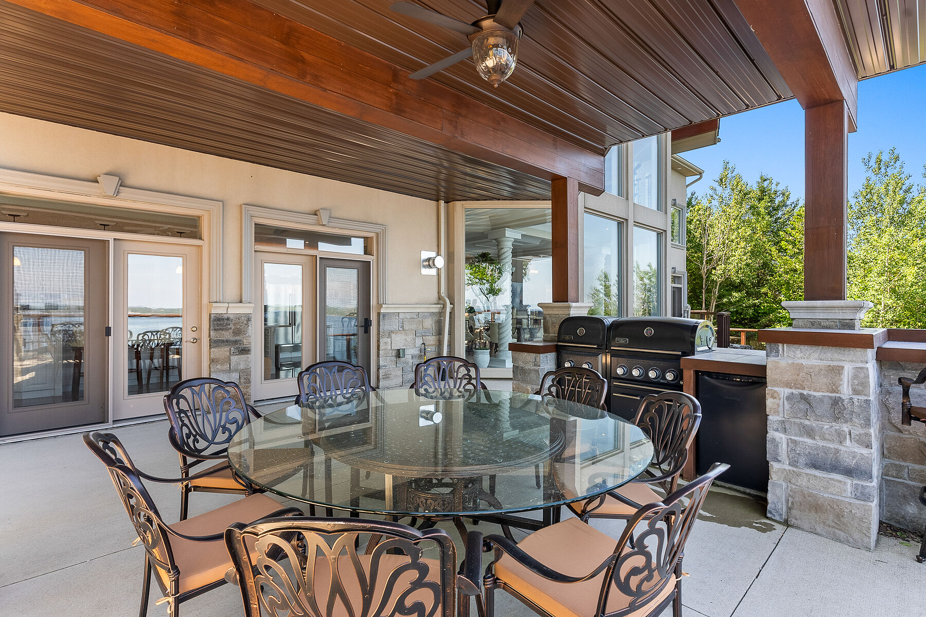 The Peninsula Perch is a 6,418 square foot cliffside masterpiece perched 300 feet above the turquoise waters of Georgian Bay, offering nearly four kilometres of uninterrupted northwest-facing views and world-class sunsets over Whippoorwill Bay. This architectural feat features R45 ICF construction from foundation to trusses, topped with a timeless slate roof and a concrete driveway leading to a triple-car garage with heated floors and EV charger rough-in. Inside, the great room boasts soaring 33-foot ceilings anchored by solid marble pillars and a grand fireplace with a custom marble mantle, while the mezzanine sitting area and primary bedroom balcony offer a front-row seat to the escarpment. The professional chef's kitchen is equipped with a large island induction cooktop with a pop-up air vent, a walk-in pantry, four Sub-Zero fridge/freezer units, two dishwashers, and an ice maker. Designed for comfort and efficiency, the home features radiant heated floors throughout and the convenience of primary bedroom laundry. The outdoor living space is a maintenance-free oasis with a covered porch, large hot tub, and high-end AstroTurf grounds, all situated in a designated Dark Sky community just 30 minutes from the 5,000-foot runway at Wiarton Keppel International Airport.