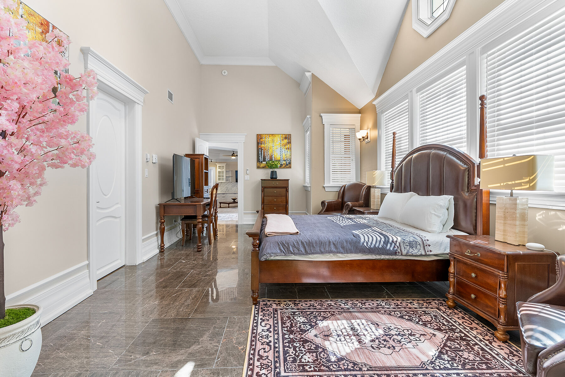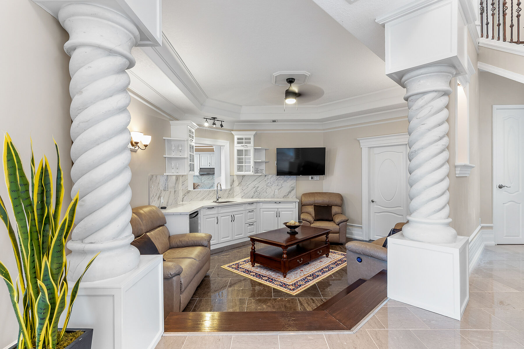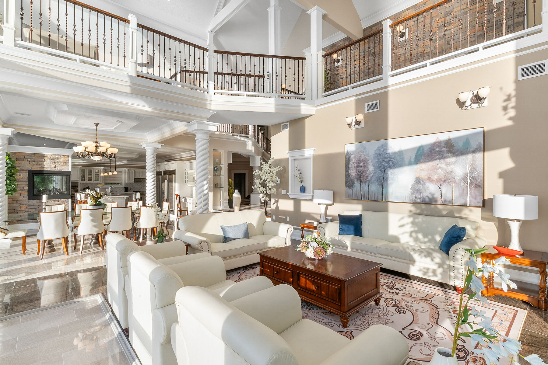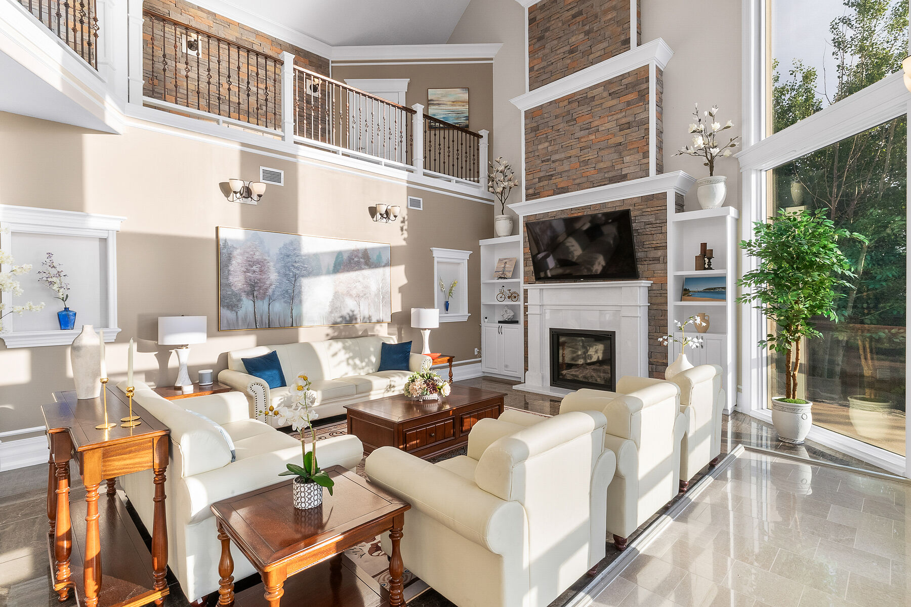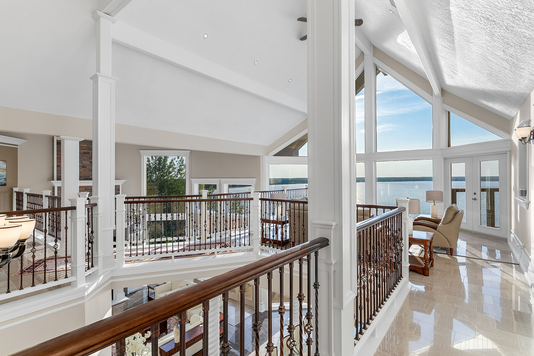 The Peninsula Perch is a 6,418 square foot cliffside masterpiece perched 300 feet above the turquoise waters of Georgian Bay, offering nearly four kilometres of uninterrupted northwest-facing views and world-class sunsets over Whippoorwill Bay. This architectural feat features R45 ICF construction from foundation to trusses, topped with a timeless slate roof and a concrete driveway leading to a triple-car garage with heated floors and EV charger rough-in. Inside, the great room boasts soaring 33-foot ceilings anchored by solid marble pillars and a grand fireplace with a custom marble mantle, while the mezzanine sitting area and primary bedroom balcony offer a front-row seat to the escarpment. The professional chef's kitchen is equipped with a large island induction cooktop with a pop-up air vent, a walk-in pantry, four Sub-Zero fridge/freezer units, two dishwashers, and an ice maker. Designed for comfort and efficiency, the home features radiant heated floors throughout and the convenience of primary bedroom laundry. The outdoor living space is a maintenance-free oasis with a covered porch, large hot tub, and high-end AstroTurf grounds, all situated in a designated Dark Sky community just 30 minutes from the 5,000-foot runway at Wiarton Keppel International Airport.