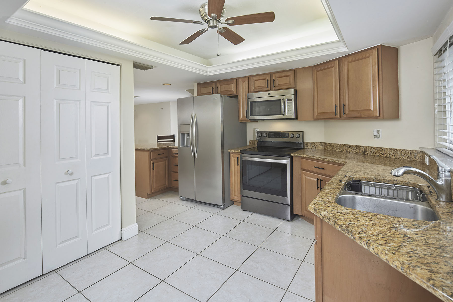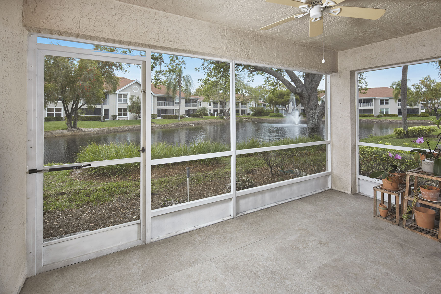 This three-bedroom, two-bath, first-floor lakefront end unit with a detached one-car garage lives like a single-family house. In the Crestview at Crescent Lake, an enclave of only 64 private residences within eight low-rise garden-style buildings offering lake and landscaped views. Spacious great room floor plan with formal dining room with tray ceiling and mirrored wall, eat-in kitchen (nook) with triple windows, tray ceiling, breakfast bar and service door to outside walkway to garage. Split bedrooms, tile flooring in main living areas, the primary bedroom has a large walk-in closet, remodeled bath with shower and dual sinks. Private 14-by-8-foot screened lanai with northwest exposure affords beautiful sunsets over the lake and ample opportunities for bird watching around the lake's fountain. Recent improvements include renovated baths with all plumbing and electrical, impact-resistant windows, washer, dryer, dishwasher, water heater and epoxy garage floor. The community has many mature trees along with colorful vegetation, a heated community pool and large sunny deck area, and is an easy distance to Pelican Marsh Elementary School. Desirable north Naples location within minutes of shopping, medical facilities, recreational centers, the Gulf beaches and entertainment venues.