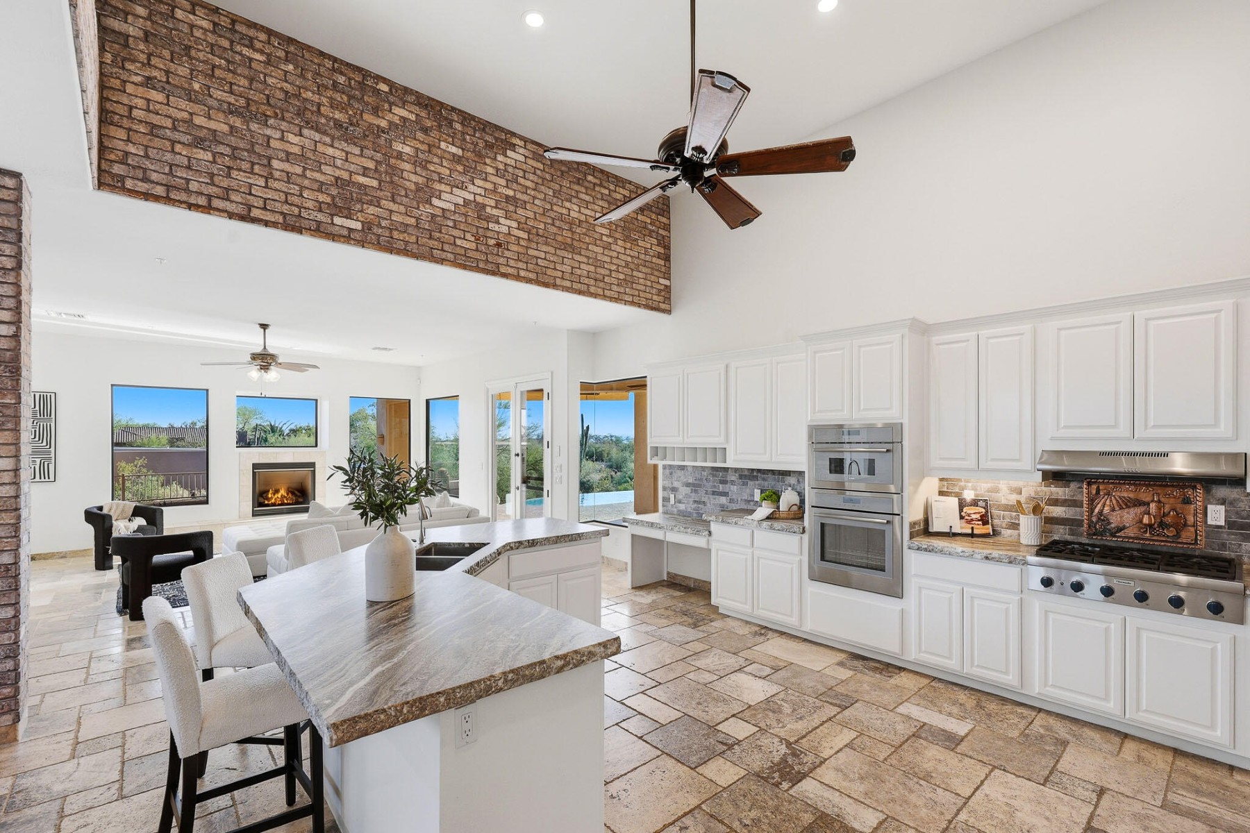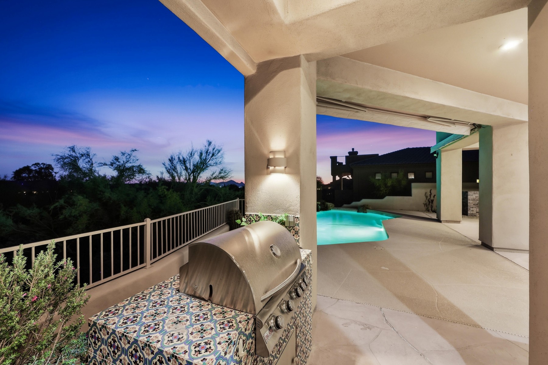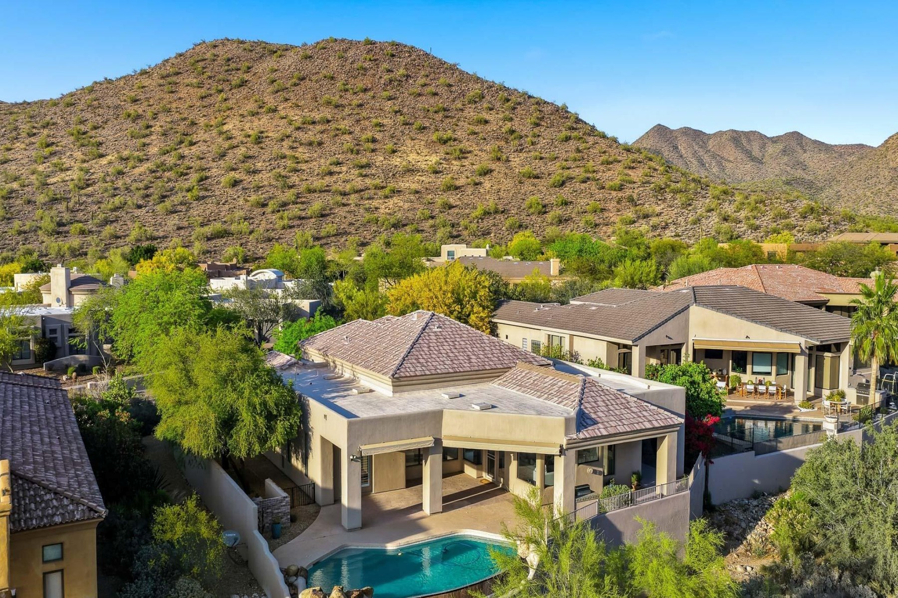 Located in the desirable guard-gated community of Ancala, this beautifully updated single-level custom home offers a seamless layout designed for both comfort and functionality. Thoughtfully improved throughout, the home features a new tile and flat roof (2026), fresh interior paint, plantation shutters, and updated lighting that create a clean, refined feel.The kitchen and family room anchor the home, featuring a 6-burner gas range, Thermador appliances, chiseled-edge countertops, and a walk-in pantry, all opening to the main living spaces with built-in cabinetry and a fireplace. A split floor plan provides privacy, with a spacious primary suite offering direct patio access, while secondary bedrooms include flexible ensuite and Jack & Jill configurations to suit a variety of needs. ensuite and Jack & Jill configurations to suit a variety of needs.Outdoor living is equally inviting, with a covered patio, built-in BBQ, and a pool positioned to capture sweeping mountain views, vibrant sunsets, and city lights.A setting that truly captures the beauty of Scottsdale desert living.