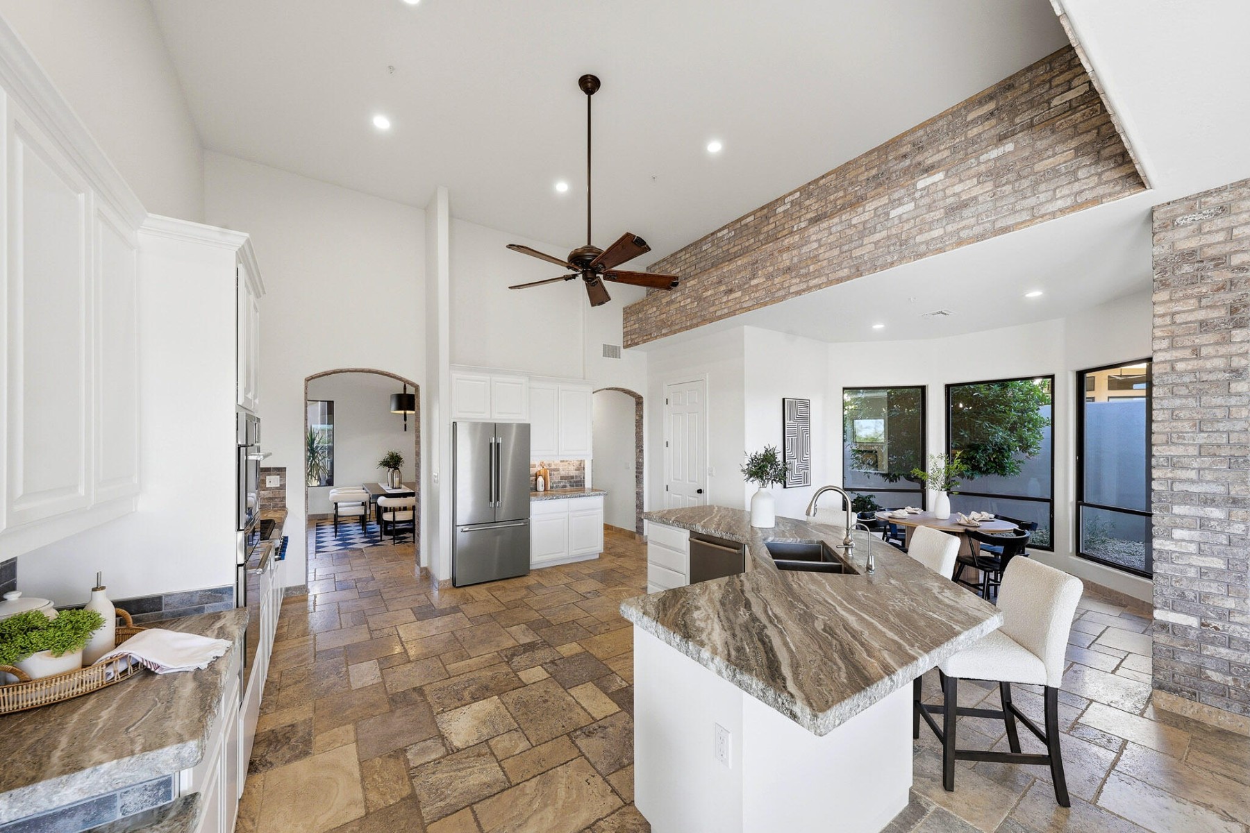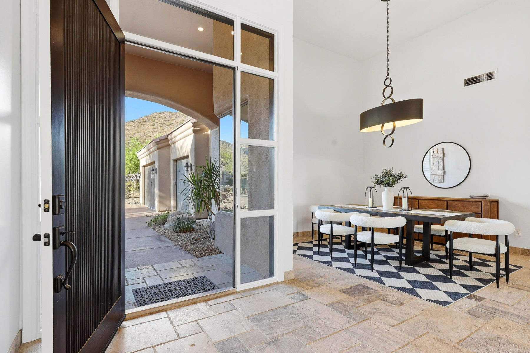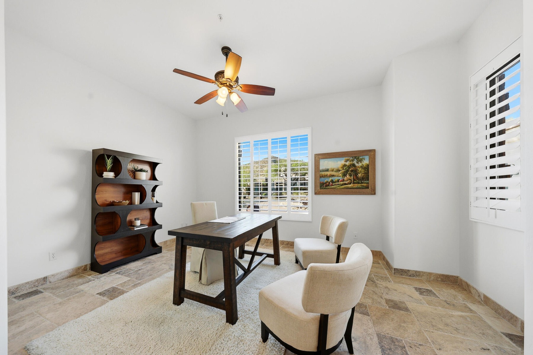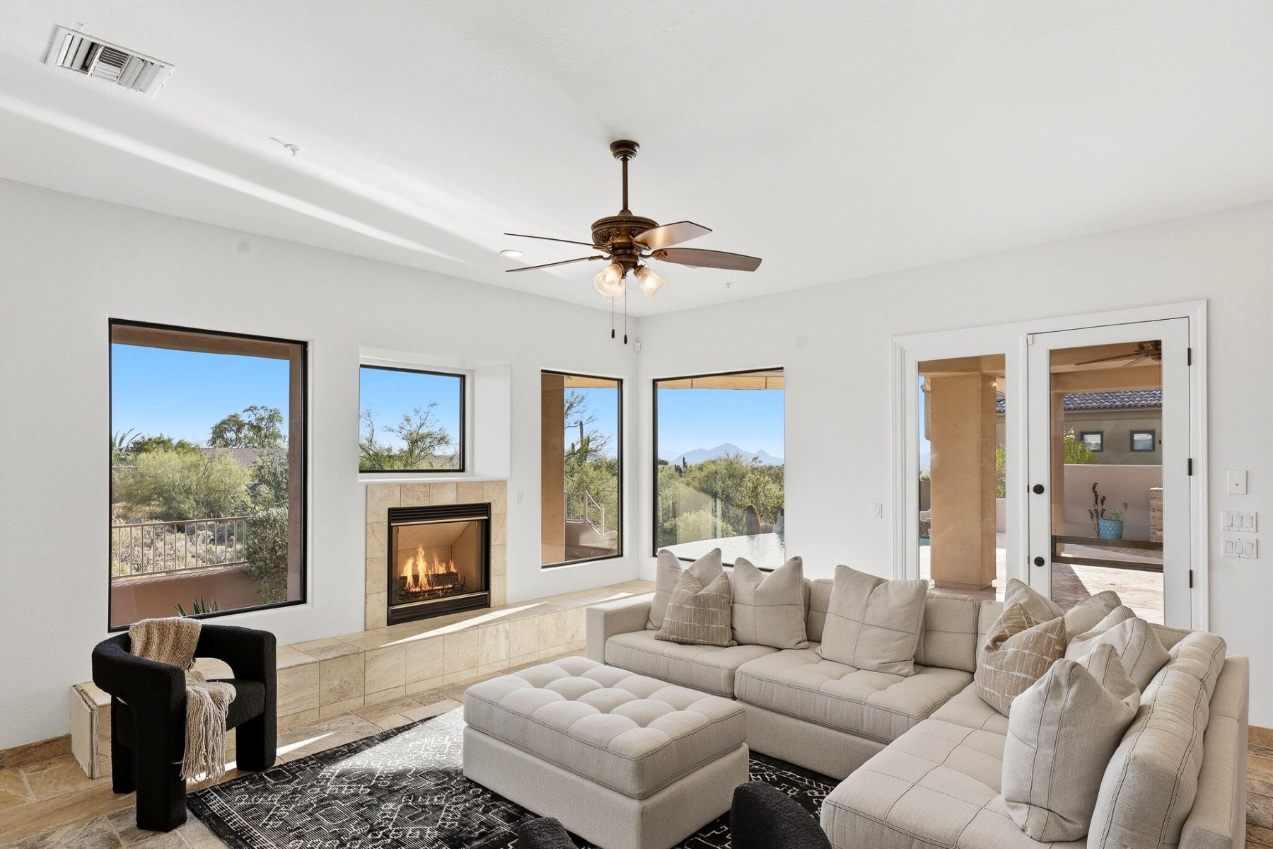 Located in the desirable guard-gated community of Ancala, this beautifully updated single-level custom home offers a seamless layout designed for both comfort and functionality. Thoughtfully improved throughout, the home features a new tile and flat roof (2026), fresh interior paint, plantation shutters, and updated lighting that create a clean, refined feel.The kitchen and family room anchor the home, featuring a 6-burner gas range, Thermador appliances, chiseled-edge countertops, and a walk-in pantry, all opening to the main living spaces with built-in cabinetry and a fireplace. A split floor plan provides privacy, with a spacious primary suite offering direct patio access, while secondary bedrooms include flexible ensuite and Jack & Jill configurations to suit a variety of needs. ensuite and Jack & Jill configurations to suit a variety of needs.Outdoor living is equally inviting, with a covered patio, built-in BBQ, and a pool positioned to capture sweeping mountain views, vibrant sunsets, and city lights.A setting that truly captures the beauty of Scottsdale desert living.