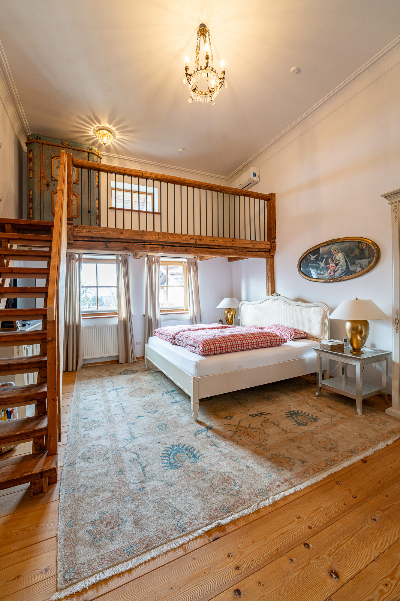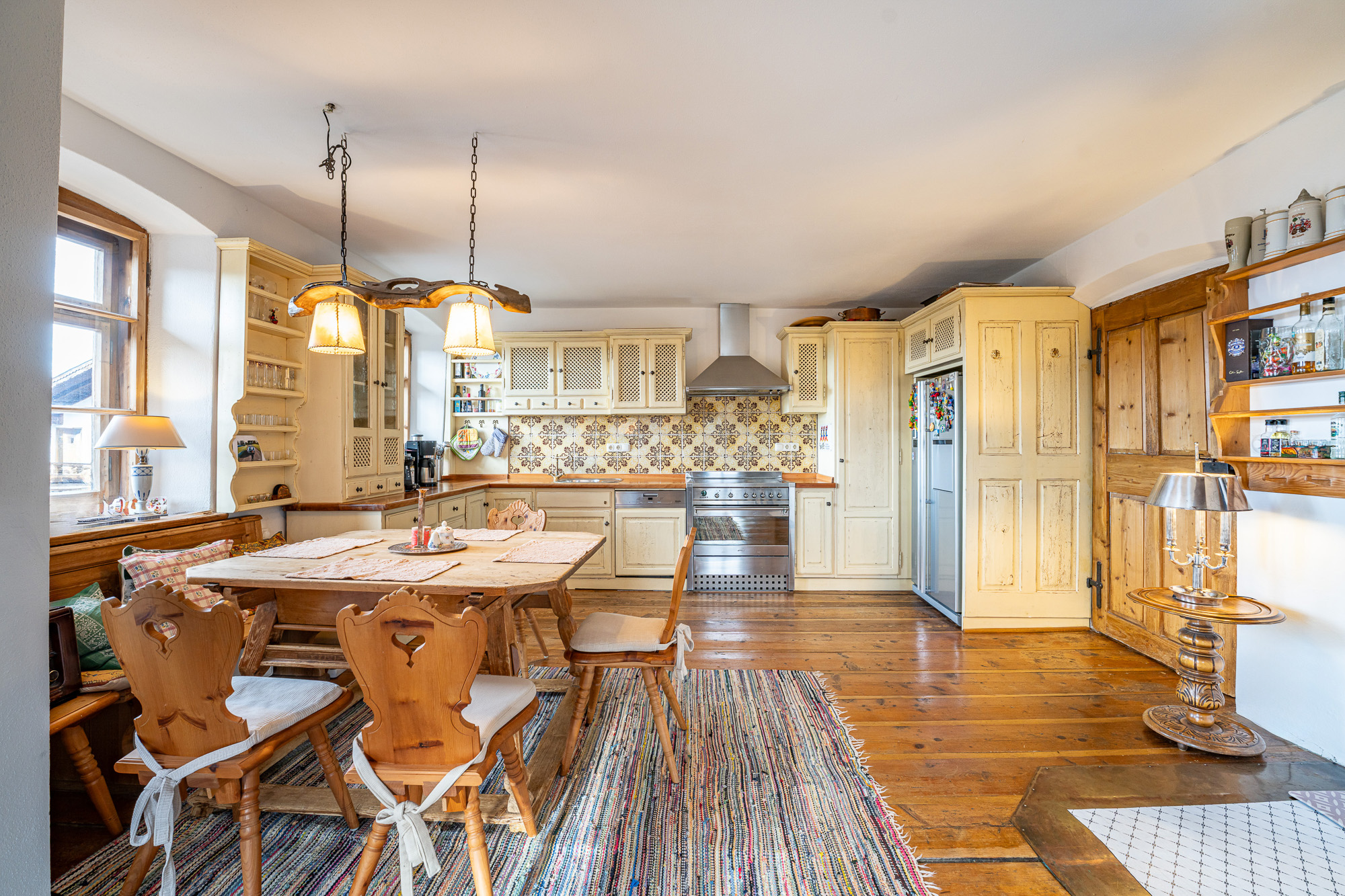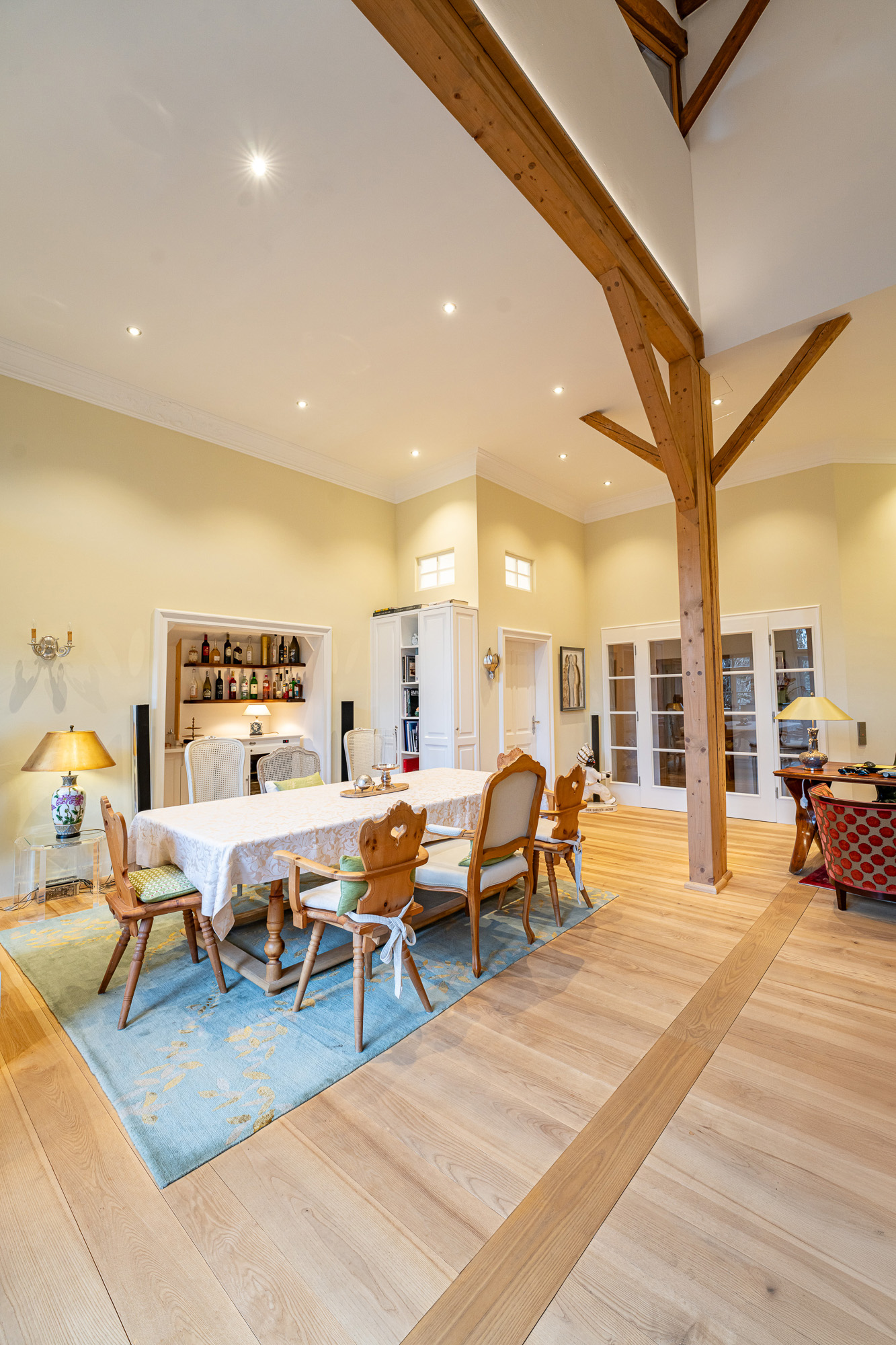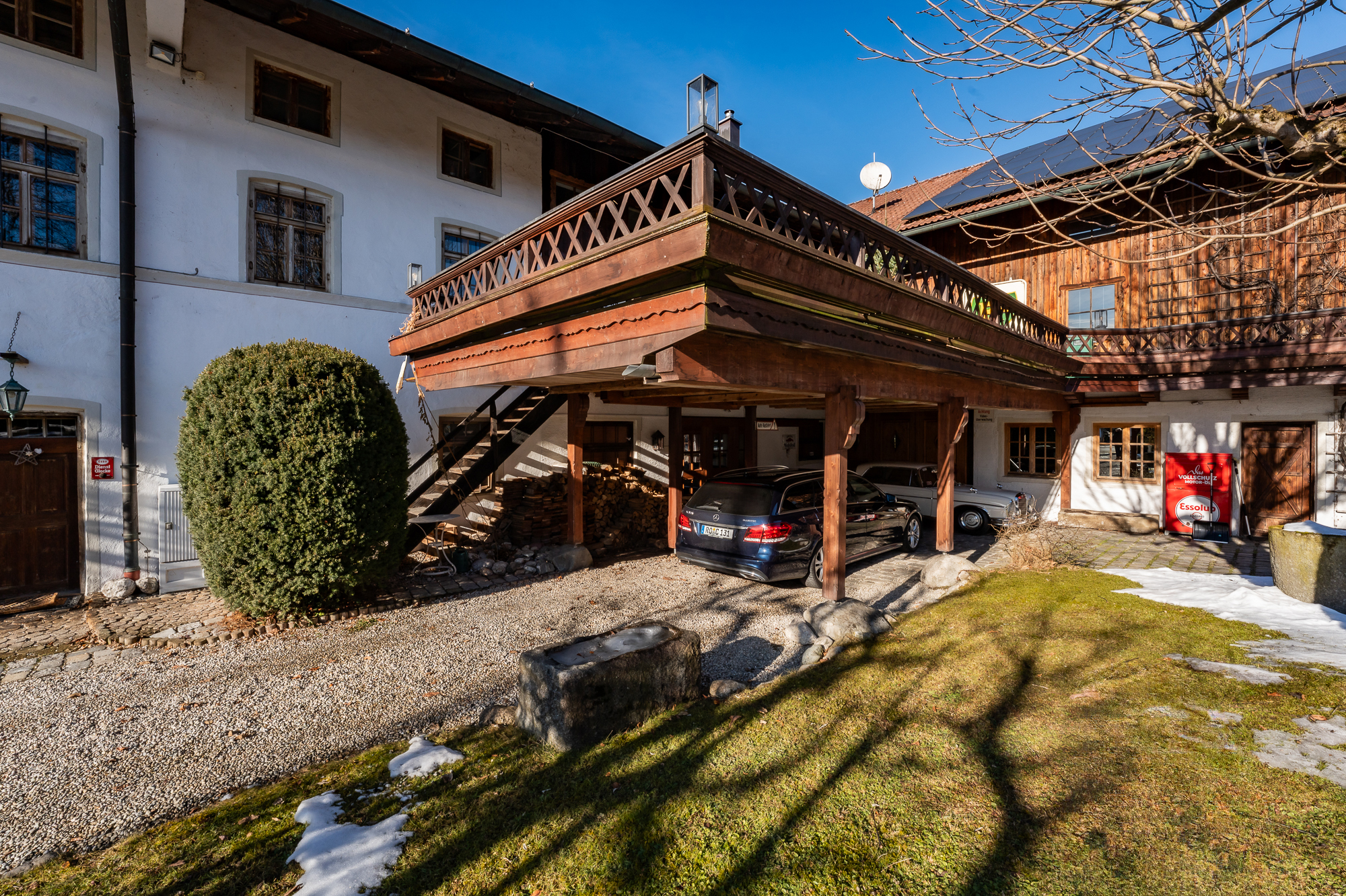 Summerer-Hof - A jewel in Chiemgau with over 500 years of historyHistorical substance. Plenty of space. Various possible uses.The Summerer-Hof combines over five centuries of architectural history with a spatial structure that impressively meets today's demands for spaciousness and flexibility. Just a few steps away from Lake Simssee and nestled in the countryside around Riedering, this is a property with an extraordinary presence.Working with style:The first floor is currently designed as a prestigious office level:- Three spacious offices- Meeting room under a historic barrel vault- Separate kitchen- Checkroom area- WC- Access to the hall areasAnother new reception area on the second floor adjoins the large veranda.All the office spaces are impressive in terms of their proportions and their calm, professional atmosphere - ideal for self-employed people, creative professionals or entrepreneurs who demand the best from their working environment.The main residence:The spacious main residence is located on the upper floor - the heart of the house.- Open living and dining area as a communicative center- Many lines of sight towards the lake- Panoramic balconies- Three bedrooms- Separate dressing room- Spacious wellness bathroom- Guest WC- Pantry (pantry)The open-plan living/dining area creates space and light. High-quality materials, historic details and modern technology combine to create a stylish yet very private living space.Guest apartments:The top floor accommodates three separate guest rooms or granny apartments. These offer a variety of possible uses - for adult children, guests, multi-generational living or discreet rental. The clear separation of the levels ensures privacy while at the same time belonging to the property as a whole.Dimensions:- Plot approx. 2,467 m²- 462 sqm living space- 1,027 sqm commercial spaceTechnical equipment:- Viessmann central heating system with oil tank as good as new- Underfloor heating combined with five steel wood-burning stoves and original tiled stove- Modern individual air conditioning systems- Large-scale solar panels- Windows with double and triple glazing- Video and burglar alarm systemMaterials:- Fine wood and terracotta floors- Original coffered and wooden beamed ceilings- Wall paneling- Handmade fittings- Three spacious main balconies and an approx. 50 m² wooden veranda extend the living space to the outside. The property is complemented by a workshop with lifting platform, generous ancillary areas, 6 carports, 10 outdoor parking spaces and three separate driveways.Conclusion:The Summerer-Hof is a property with an exceptional structure and the historic architectural attitude of a classic Itaker farmhouse.The combination of historical substance, modern furnishings and functional floor layout opens up a wide range of perspectives - as a prestigious residence, as a combination of working and living or as a multi-generational ensemble.A house for personalities who not only want to use space, but also design it.Commission:The brokerage contract with us is concluded by written agreement or confirmation in text form on the basis of the property exposé and our General Terms and Conditions. The commission to be paid by the buyer to MIR München International Realty Verwaltungs GmbH, master licensee of München I Sotheby`s International Realty and Tegernsee I Sotheby`s International Realty, in the event that a notarized purchase agreement is concluded, is 3.57% (incl. 19% VAT) of the purchase price and is due upon conclusion of the notarized purchase agreement. The seller has to pay us a commission in the same amount.