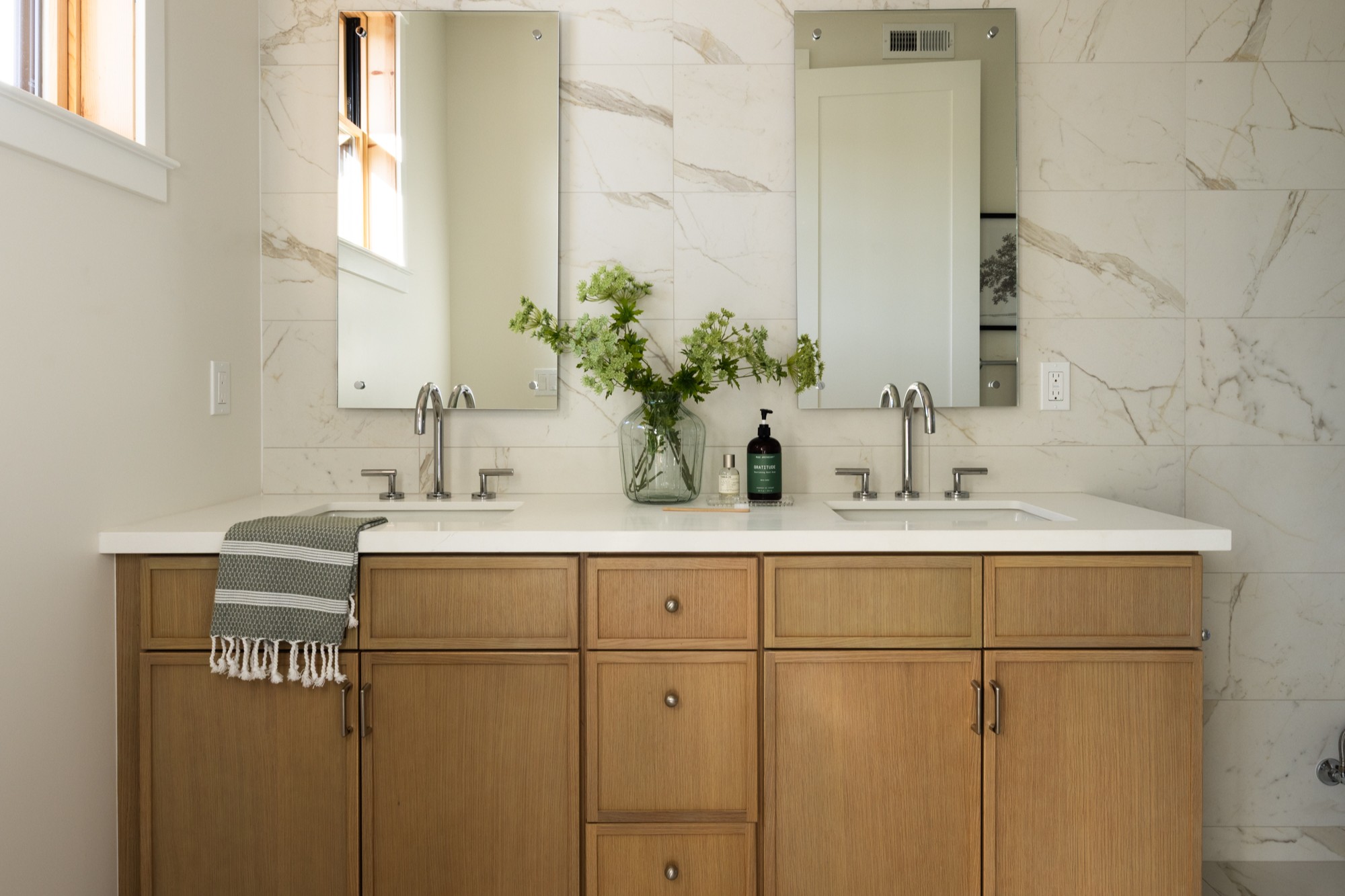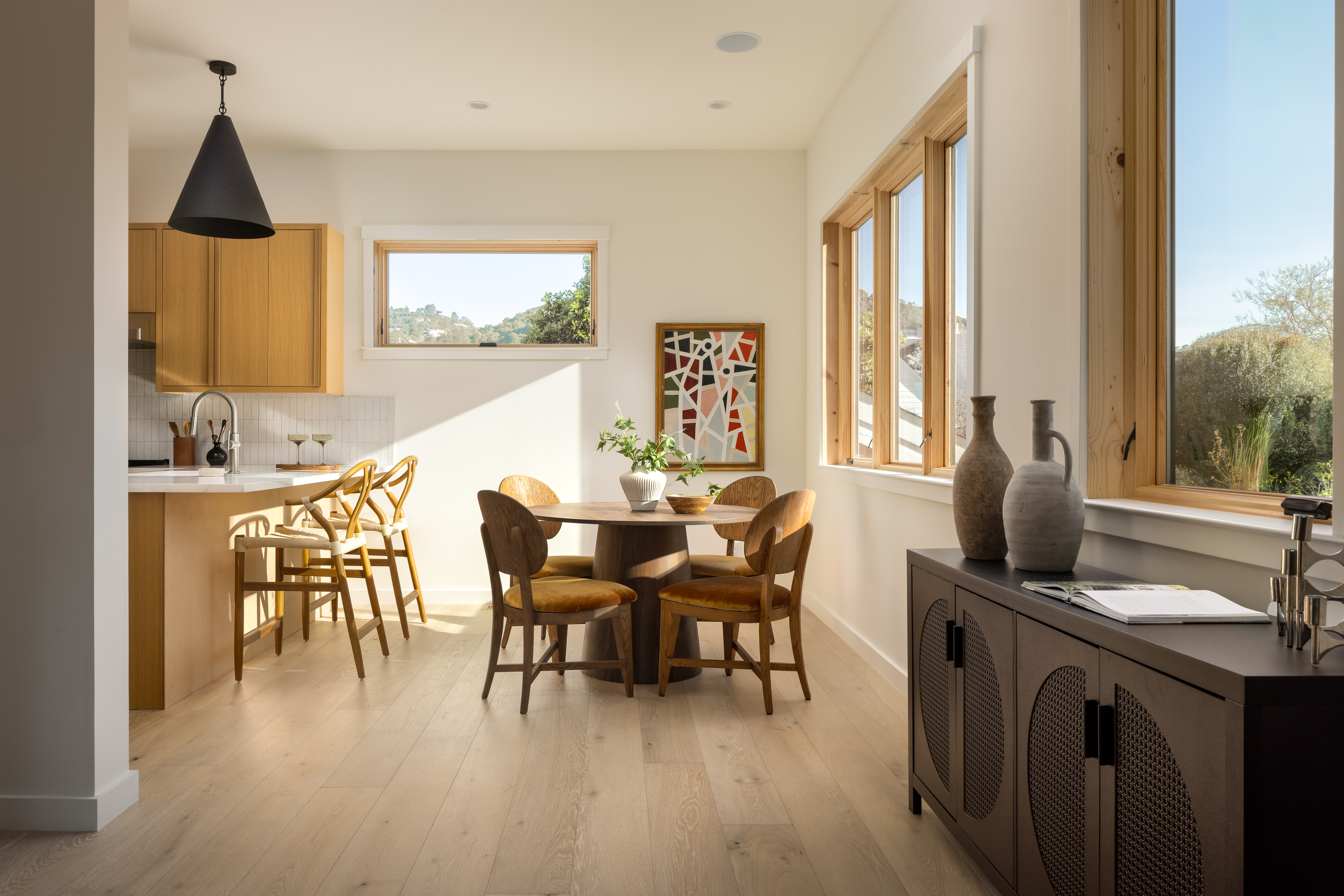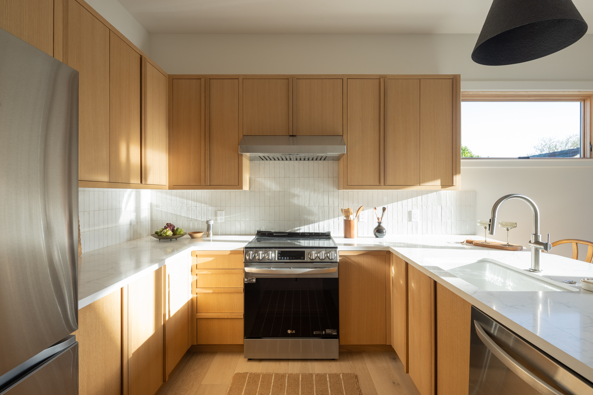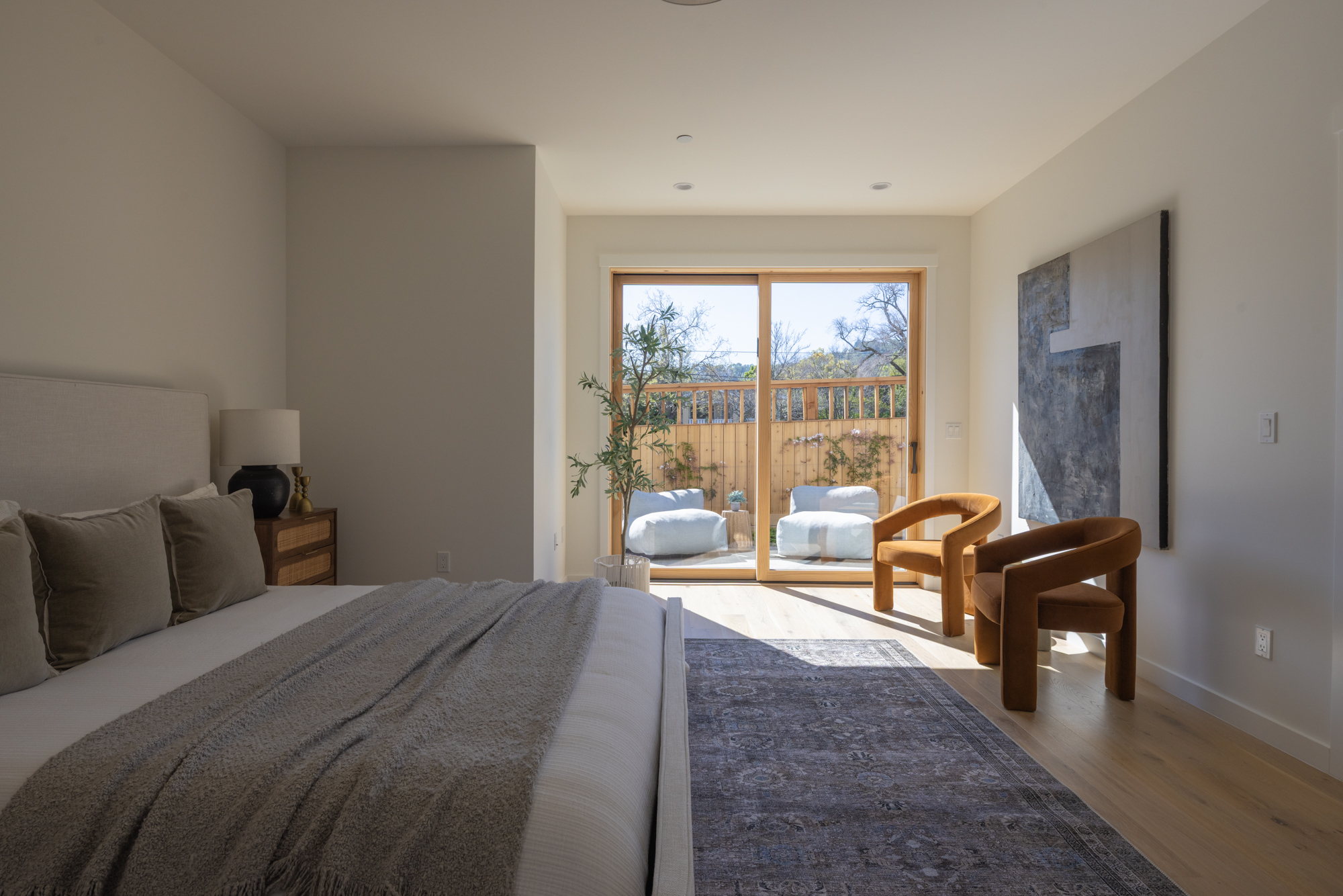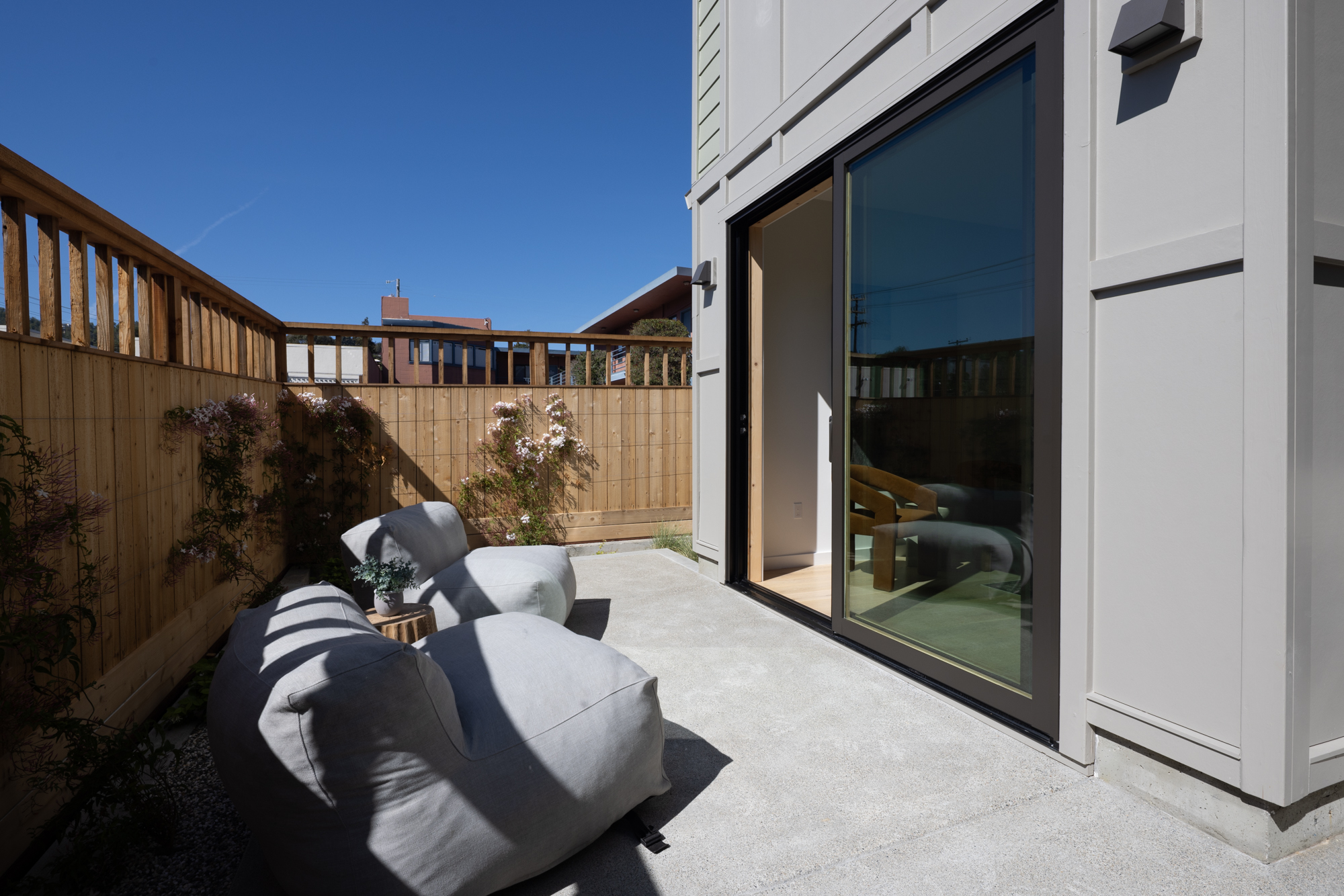 Newly constructed townhome in small, Gerstle Park complex. Walk score of 98 due to proximity to all that San Rafael has to offer. Unit is privately positioned at the end of the complex offering a feelling of a single family dwelling with a spacious and flexible layout. Inviting entry leads you upstairs or to one of 2 primary suites. The living level has an open plan with high ceilings and light hardwood flooring. Attention has been paid to every detail of this home from the kitchen ammenities to the powder room. The ground level primary has a lovely, private patio and a spacious bedroom with en-suite bathroom. The upper level has 2 on suite bedrooms with the primary being attached to a gorgeous bathroom with 2 vanity stations and a soaking tub shower combination. The roof top deck has stunning, panoramic views to include Mt. Tam and all of downtown San Rafael. Additional features include: solar, 1-car attached garage with laundry and EV capabilities.
