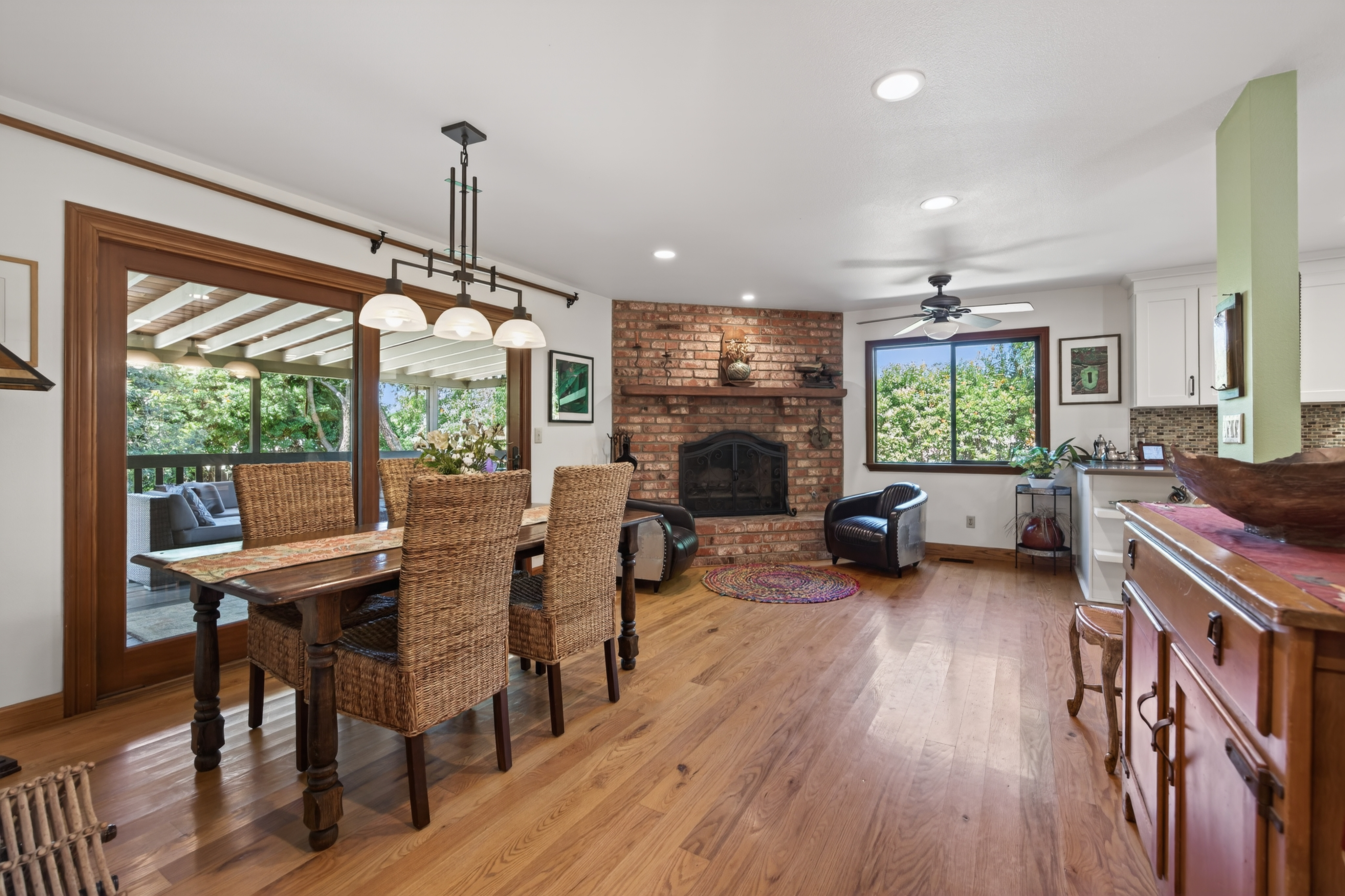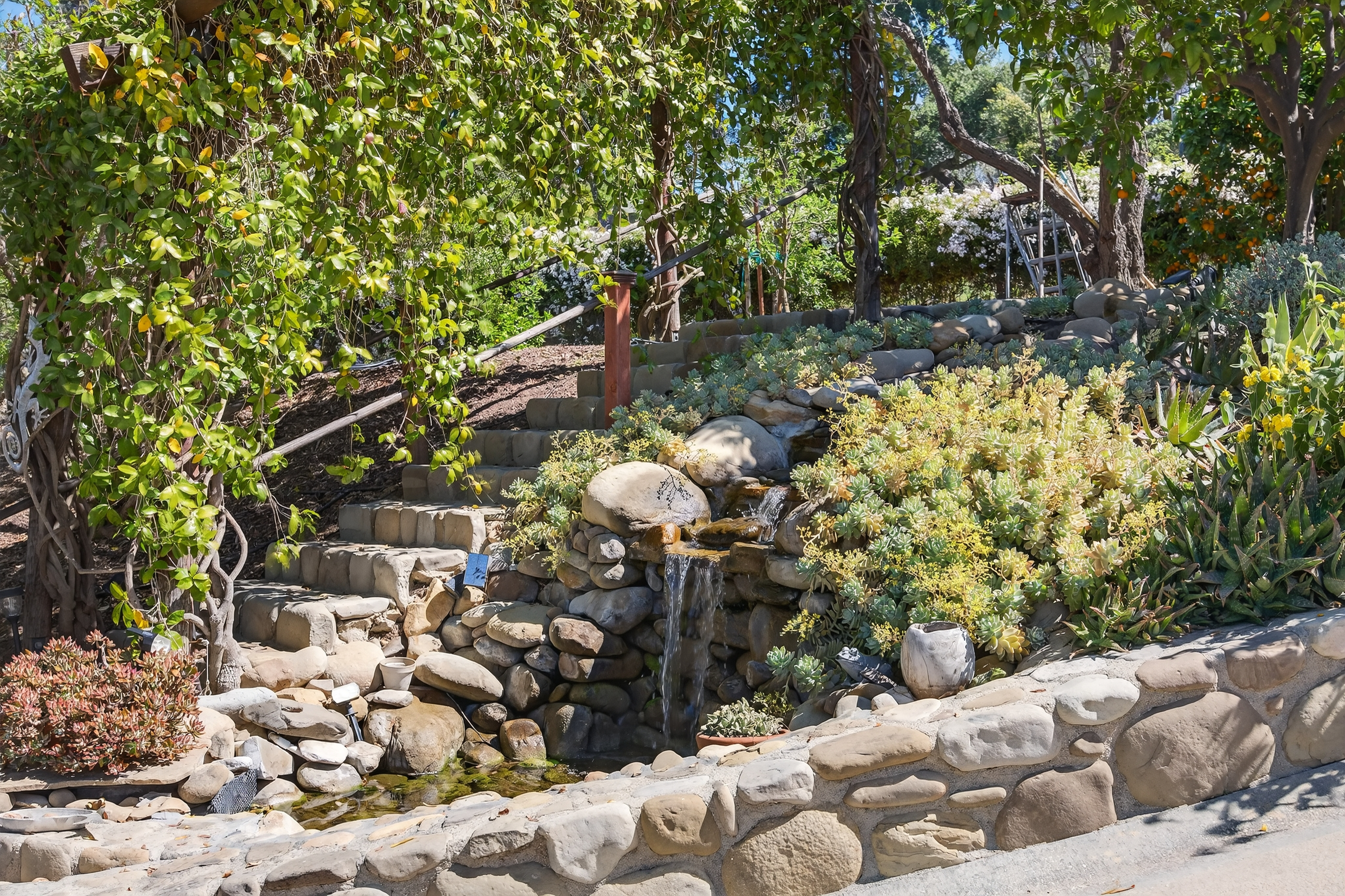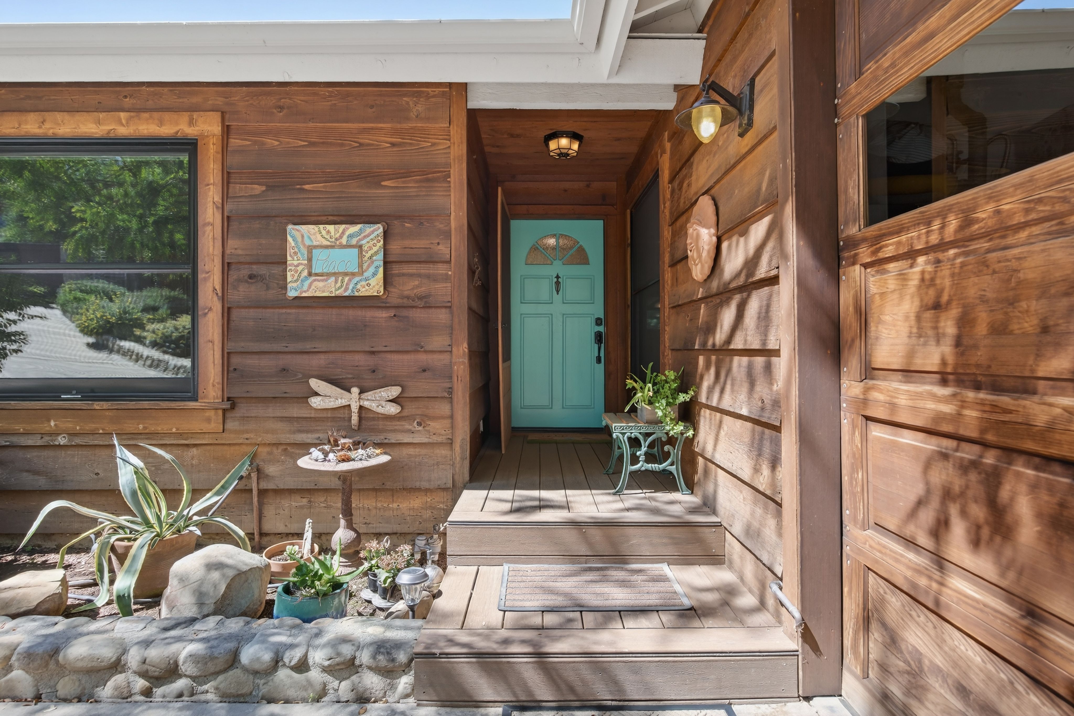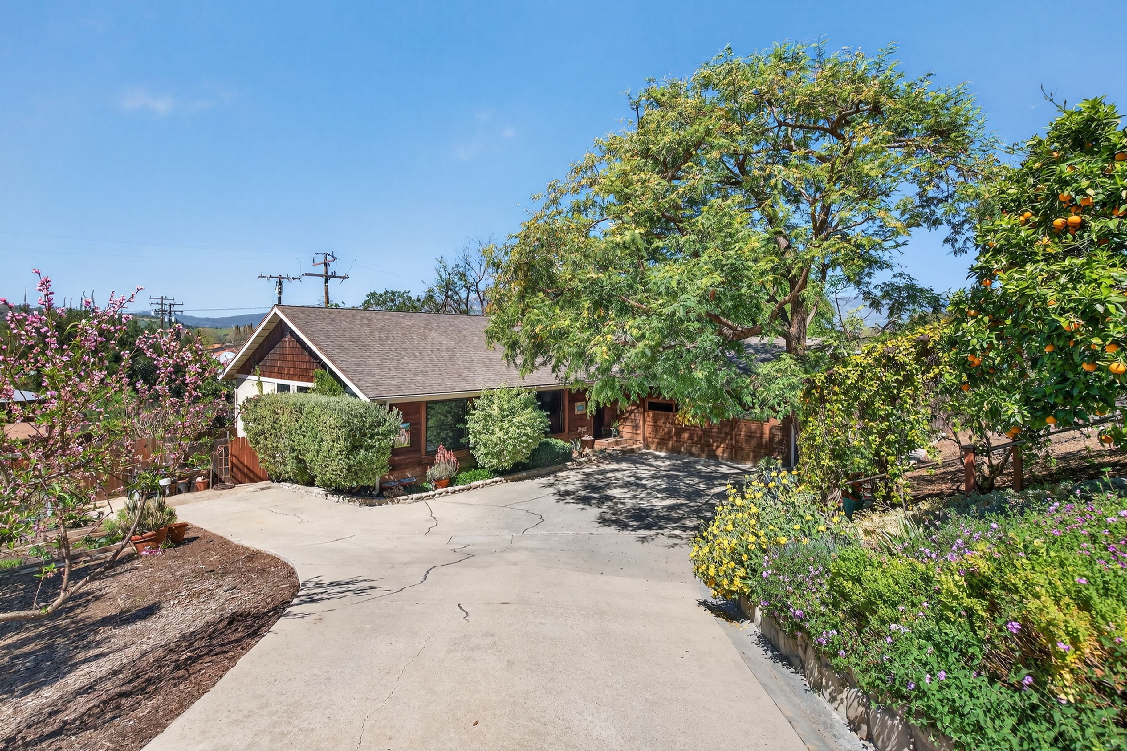Tucked away in one of Oak View’s most private and peaceful neighborhoods, this lovingly upgraded 3 bedroom, 2 bath home offers a relaxed country lifestyle with thoughtful modern touches. A gated driveway and fully fenced grounds create a sense of security and freedom, perfect for pets, play, and everyday ease. Inside, the home is warm and inviting, showcasing beautiful wood floors, vaulted ceilings, and an abundance of natural light. The open-concept kitchen has been tastefully remodeled with generous counter space, ample storage, and a seamless flow into the dining area, complete with a cozy fireplace and additional sitting space for gathering. The living room feels both airy and grounded, with built-in shelving and architectural character that enhances the home’s charm. The primary suite offers a quiet retreat with dual closets and a well appointed layout. One of the home’s standout features is the oversized covered patio. An effortless extension of the living space that invites year round indoor/outdoor living. Whether hosting gatherings, or unwinding with a morning coffee, this versatile space creates the perfect backdrop for relaxed California living. Step outside and experience the true essence of this property. The oversized lot invites you to slow down and enjoy, whether lounging in the chic cowboy pool, tending to raised garden beds, or harvesting from your own established orchard. A remarkable variety of fruit trees, including navel and blood orange, Ojai Pixie tangerine, grapefruit, avocado, peach, nectarine, plum, apple, pomegranate, and lemon, creates a rare farm-to-table lifestyle right at home. Thoughtful landscaping details like river rock pathways, a tranquil water feature, and a charming wood shed add to the property’s unique appeal. Perfectly positioned just minutes from Ventura’s beaches and Ojai’s scenic trails, this home offers the best of both worlds—privacy, nature, and convenience in one special setting.