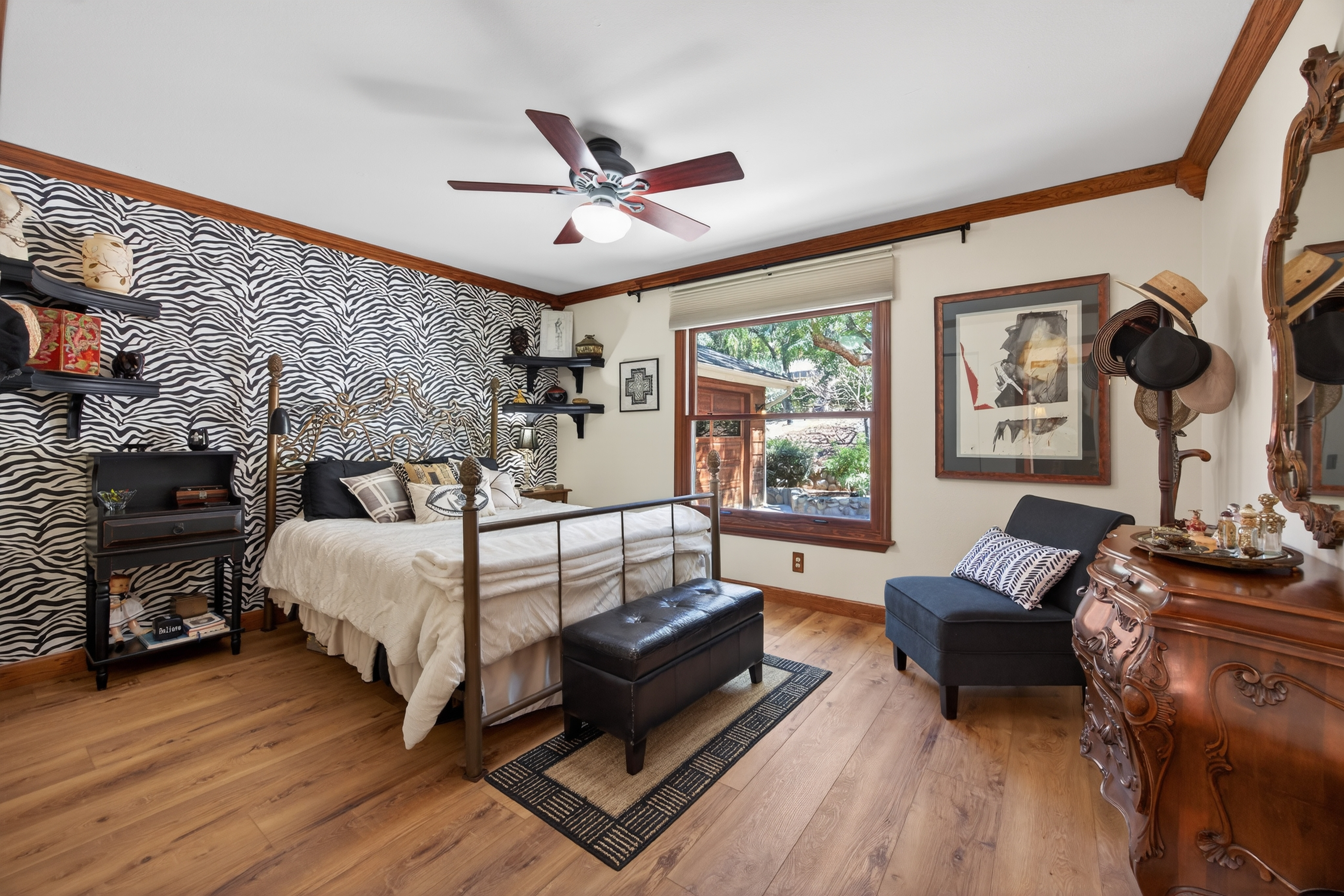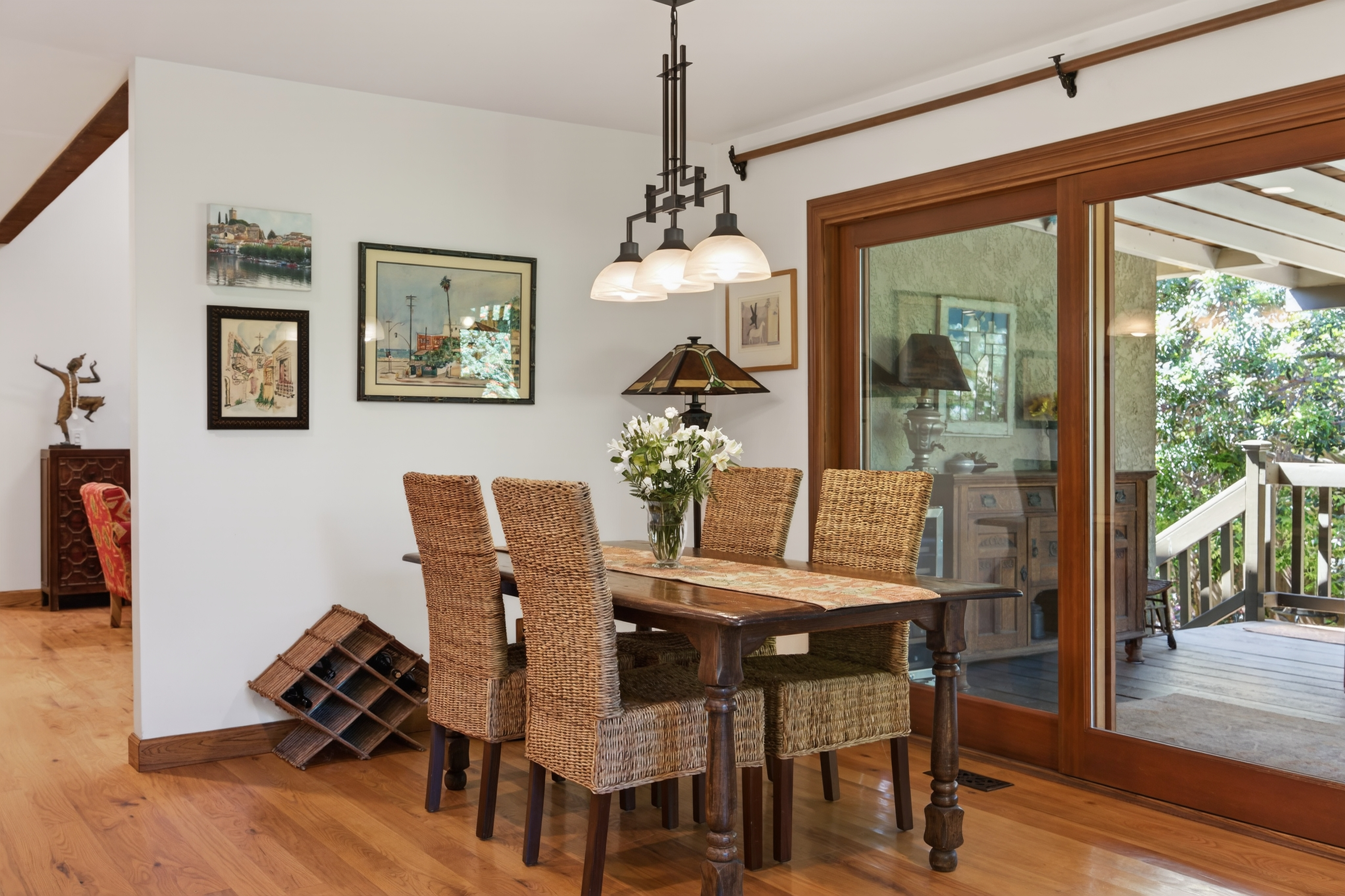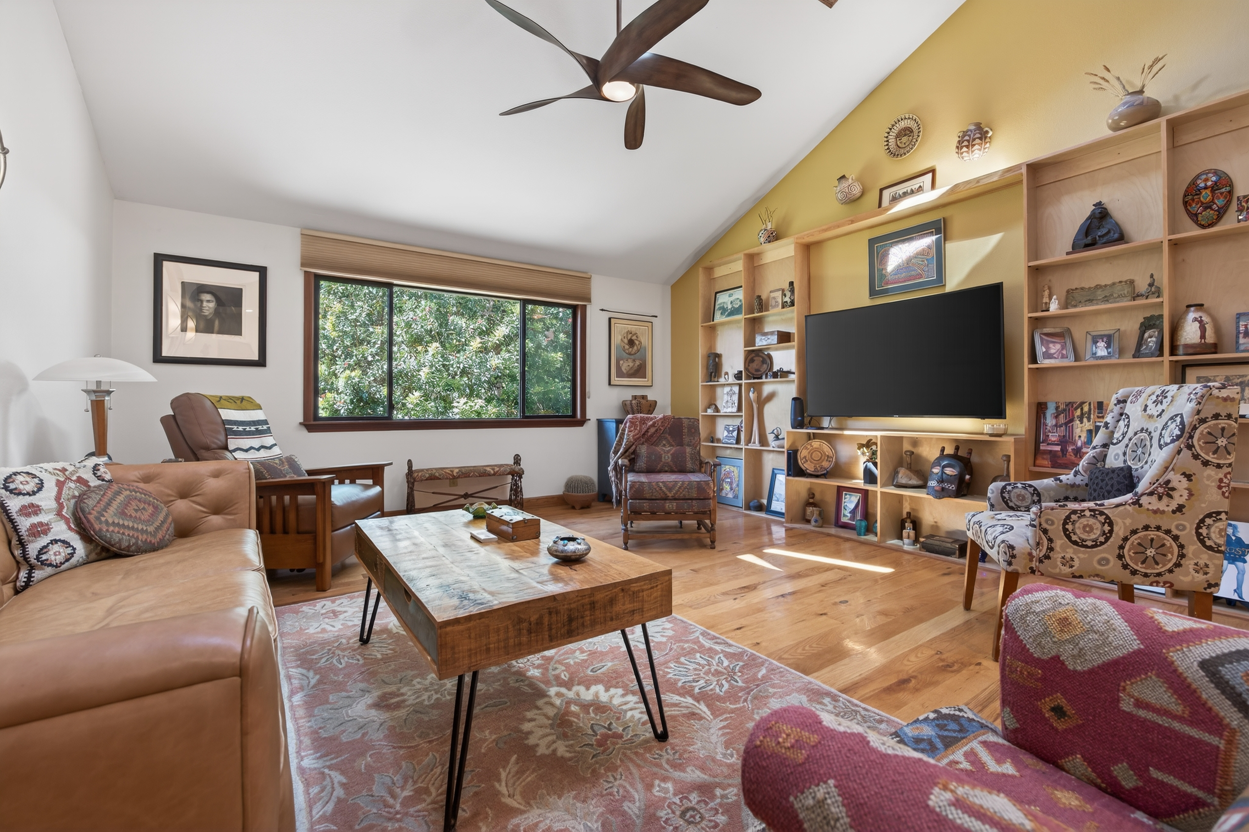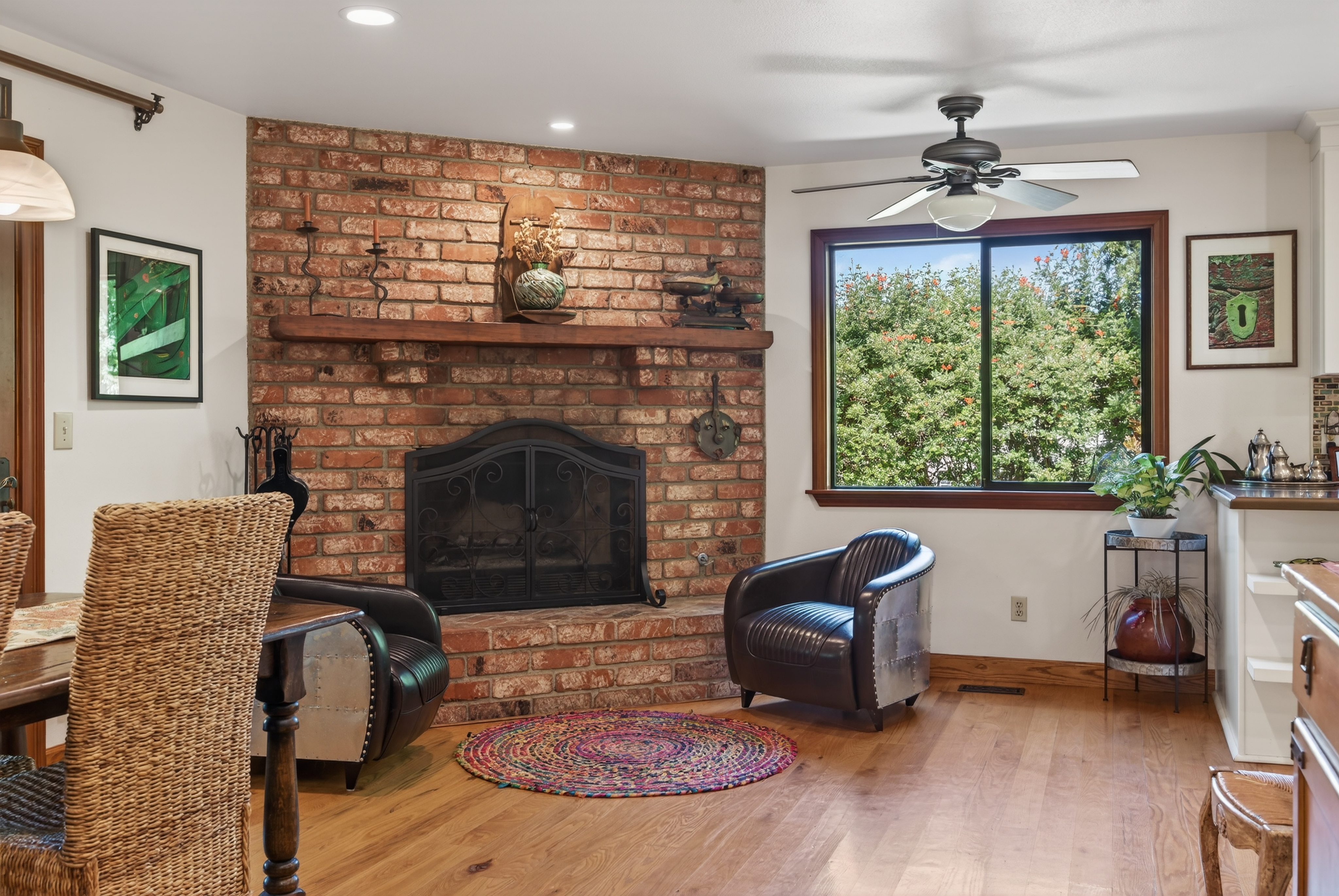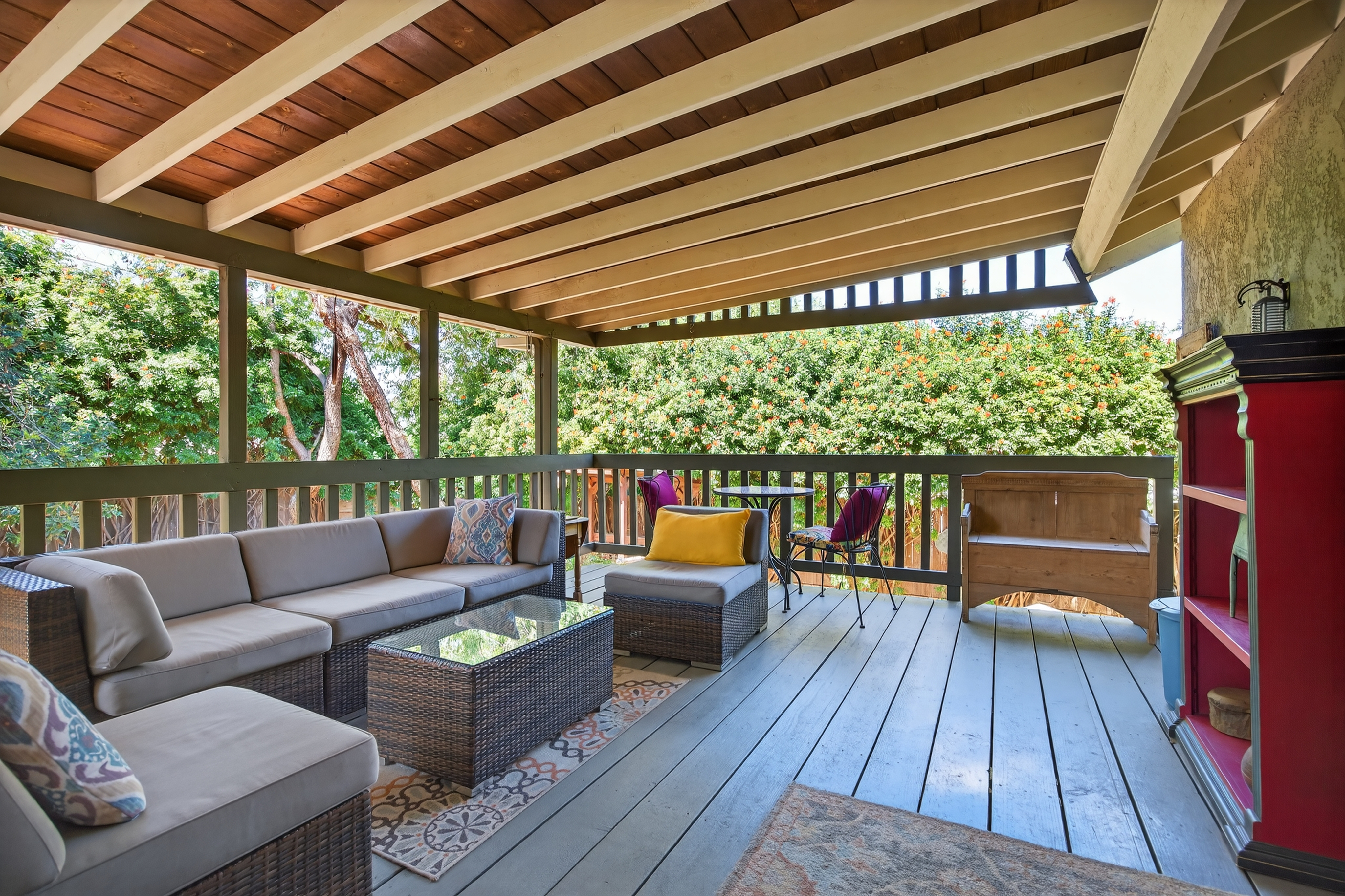 Tucked away in one of Oak View’s most private and peaceful neighborhoods, this lovingly upgraded 3 bedroom, 2 bath home offers a relaxed country lifestyle with thoughtful modern touches. A gated driveway and fully fenced grounds create a sense of security and freedom, perfect for pets, play, and everyday ease. Inside, the home is warm and inviting, showcasing beautiful wood floors, vaulted ceilings, and an abundance of natural light. The open-concept kitchen has been tastefully remodeled with generous counter space, ample storage, and a seamless flow into the dining area, complete with a cozy fireplace and additional sitting space for gathering. The living room feels both airy and grounded, with built-in shelving and architectural character that enhances the home’s charm. The primary suite offers a quiet retreat with dual closets and a well appointed layout. One of the home’s standout features is the oversized covered patio. An effortless extension of the living space that invites year round indoor/outdoor living. Whether hosting gatherings, or unwinding with a morning coffee, this versatile space creates the perfect backdrop for relaxed California living. Step outside and experience the true essence of this property. The oversized lot invites you to slow down and enjoy, whether lounging in the chic cowboy pool, tending to raised garden beds, or harvesting from your own established orchard. A remarkable variety of fruit trees, including navel and blood orange, Ojai Pixie tangerine, grapefruit, avocado, peach, nectarine, plum, apple, pomegranate, and lemon, creates a rare farm-to-table lifestyle right at home. Thoughtful landscaping details like river rock pathways, a tranquil water feature, and a charming wood shed add to the property’s unique appeal. Perfectly positioned just minutes from Ventura’s beaches and Ojai’s scenic trails, this home offers the best of both worlds—privacy, nature, and convenience in one special setting.