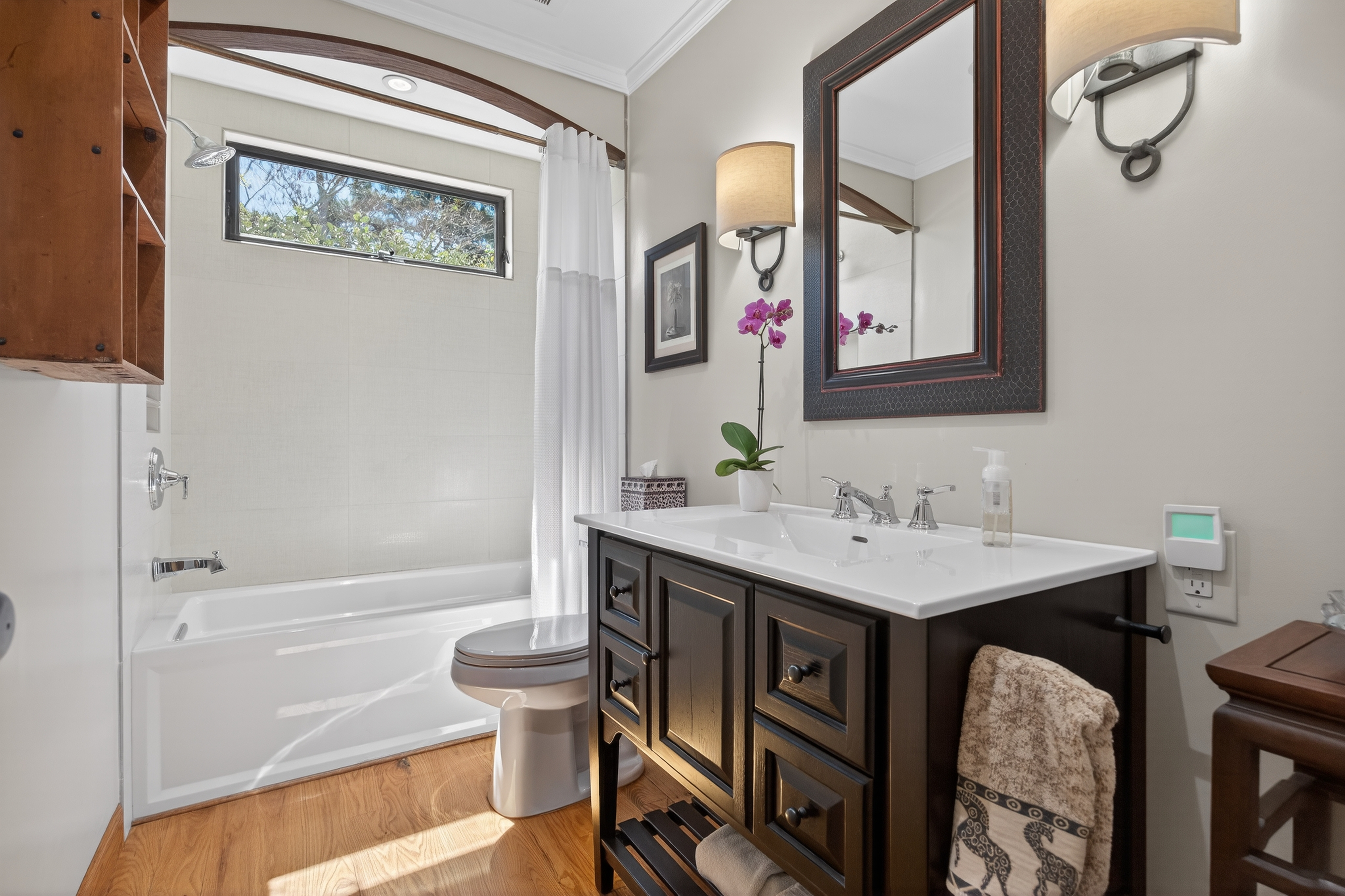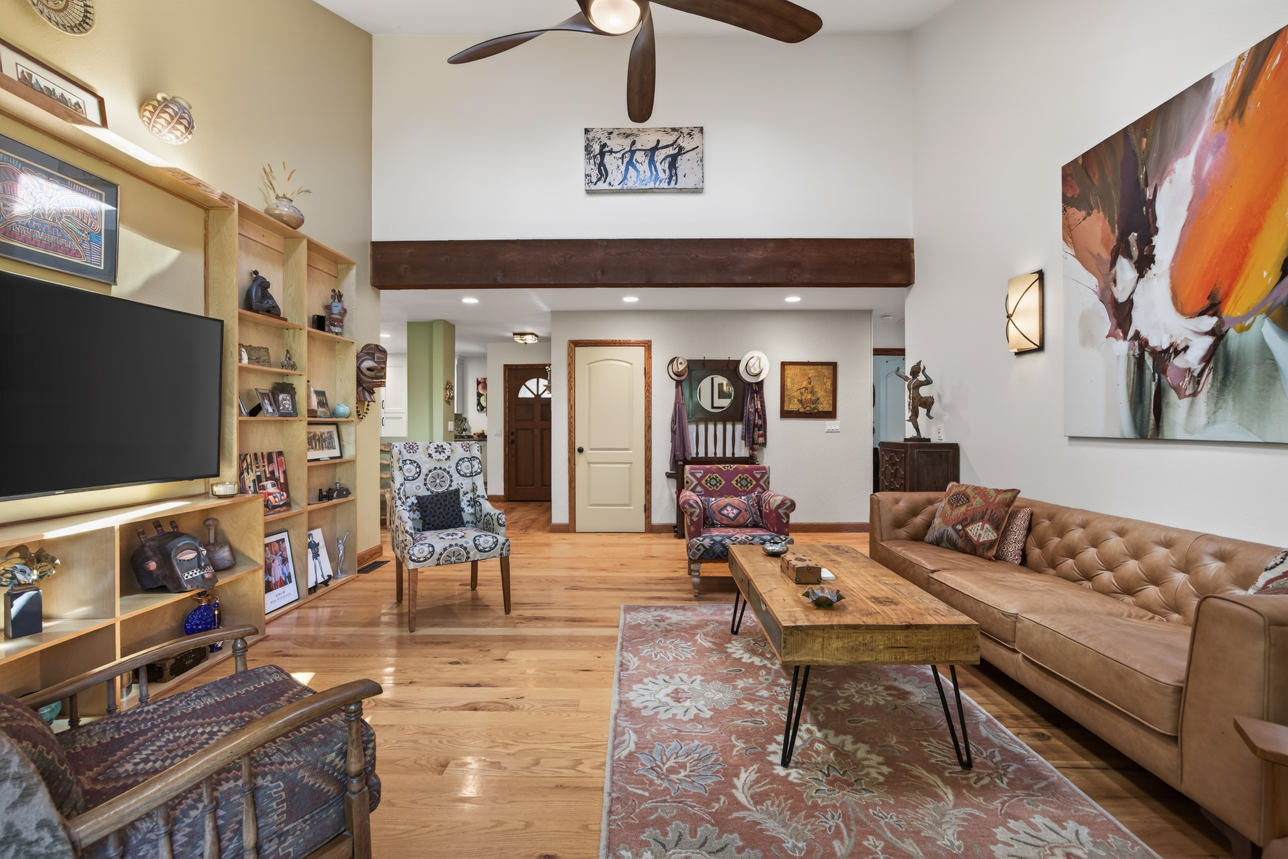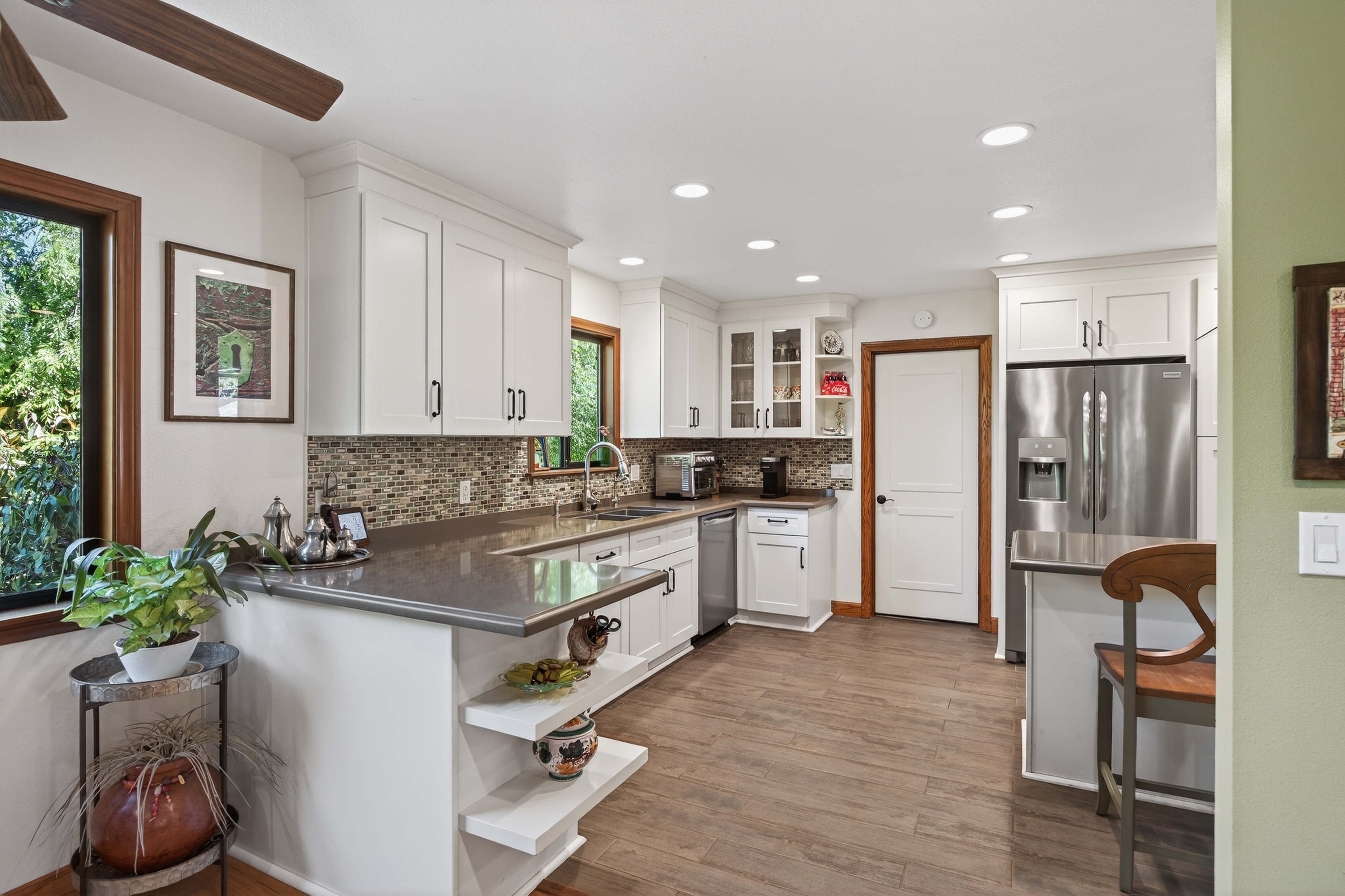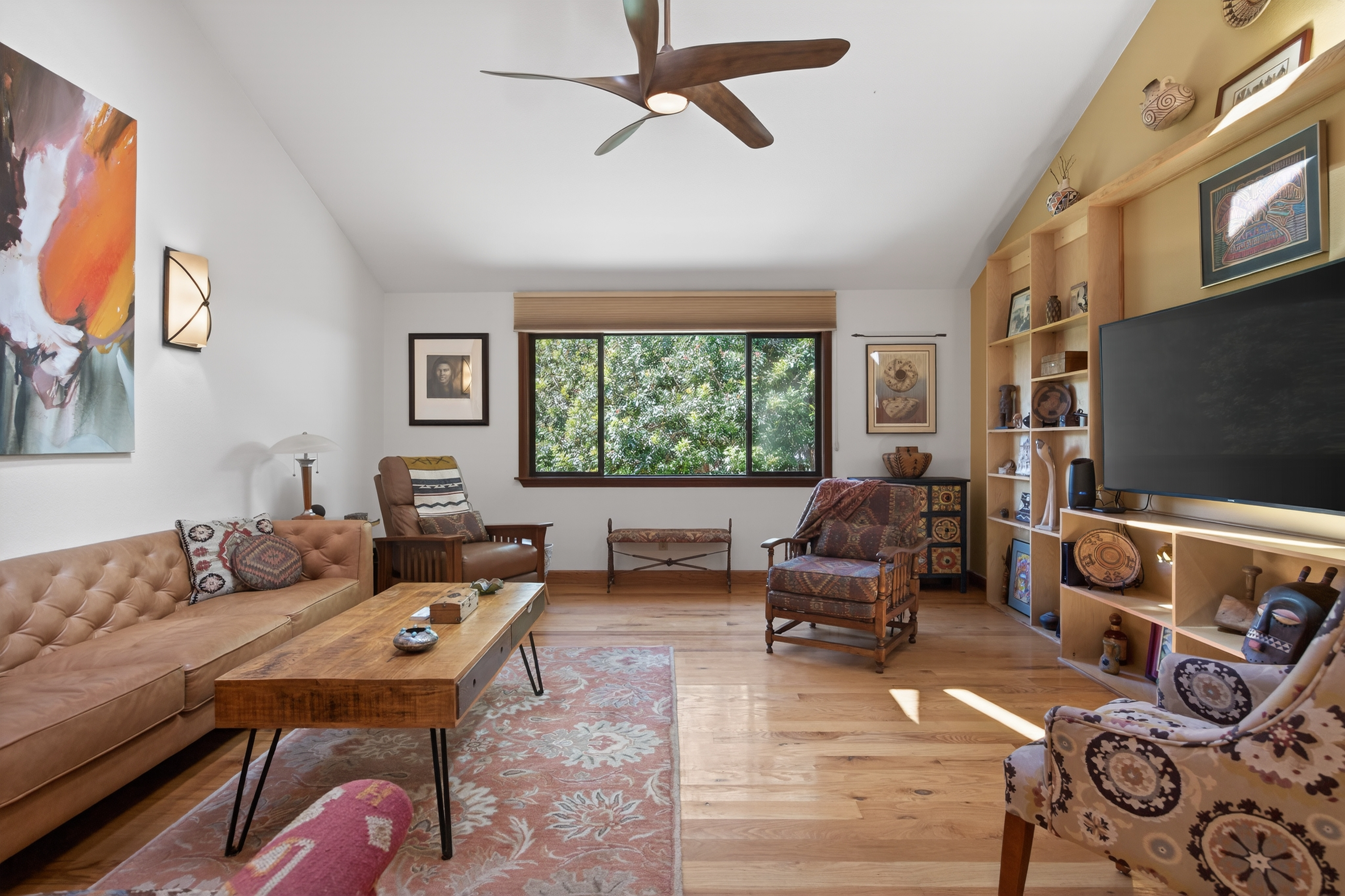 Tucked away in one of Oak View’s most private and peaceful neighborhoods, this lovingly upgraded 3 bedroom, 2 bath home offers a relaxed country lifestyle with thoughtful modern touches. A gated driveway and fully fenced grounds create a sense of security and freedom, perfect for pets, play, and everyday ease. Inside, the home is warm and inviting, showcasing beautiful wood floors, vaulted ceilings, and an abundance of natural light. The open-concept kitchen has been tastefully remodeled with generous counter space, ample storage, and a seamless flow into the dining area, complete with a cozy fireplace and additional sitting space for gathering. The living room feels both airy and grounded, with built-in shelving and architectural character that enhances the home’s charm. The primary suite offers a quiet retreat with dual closets and a well appointed layout. One of the home’s standout features is the oversized covered patio. An effortless extension of the living space that invites year round indoor/outdoor living. Whether hosting gatherings, or unwinding with a morning coffee, this versatile space creates the perfect backdrop for relaxed California living. Step outside and experience the true essence of this property. The oversized lot invites you to slow down and enjoy, whether lounging in the chic cowboy pool, tending to raised garden beds, or harvesting from your own established orchard. A remarkable variety of fruit trees, including navel and blood orange, Ojai Pixie tangerine, grapefruit, avocado, peach, nectarine, plum, apple, pomegranate, and lemon, creates a rare farm-to-table lifestyle right at home. Thoughtful landscaping details like river rock pathways, a tranquil water feature, and a charming wood shed add to the property’s unique appeal. Perfectly positioned just minutes from Ventura’s beaches and Ojai’s scenic trails, this home offers the best of both worlds—privacy, nature, and convenience in one special setting.