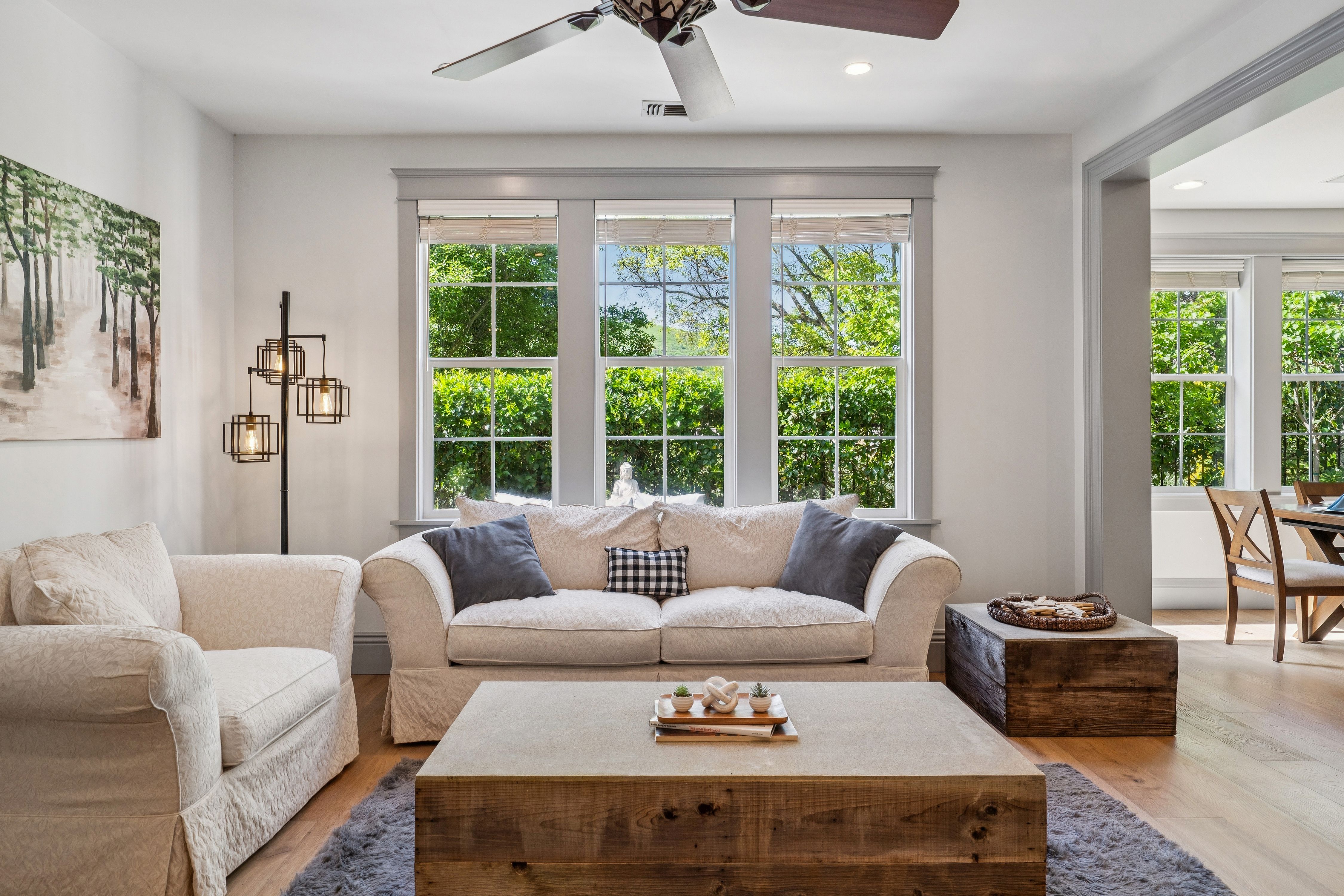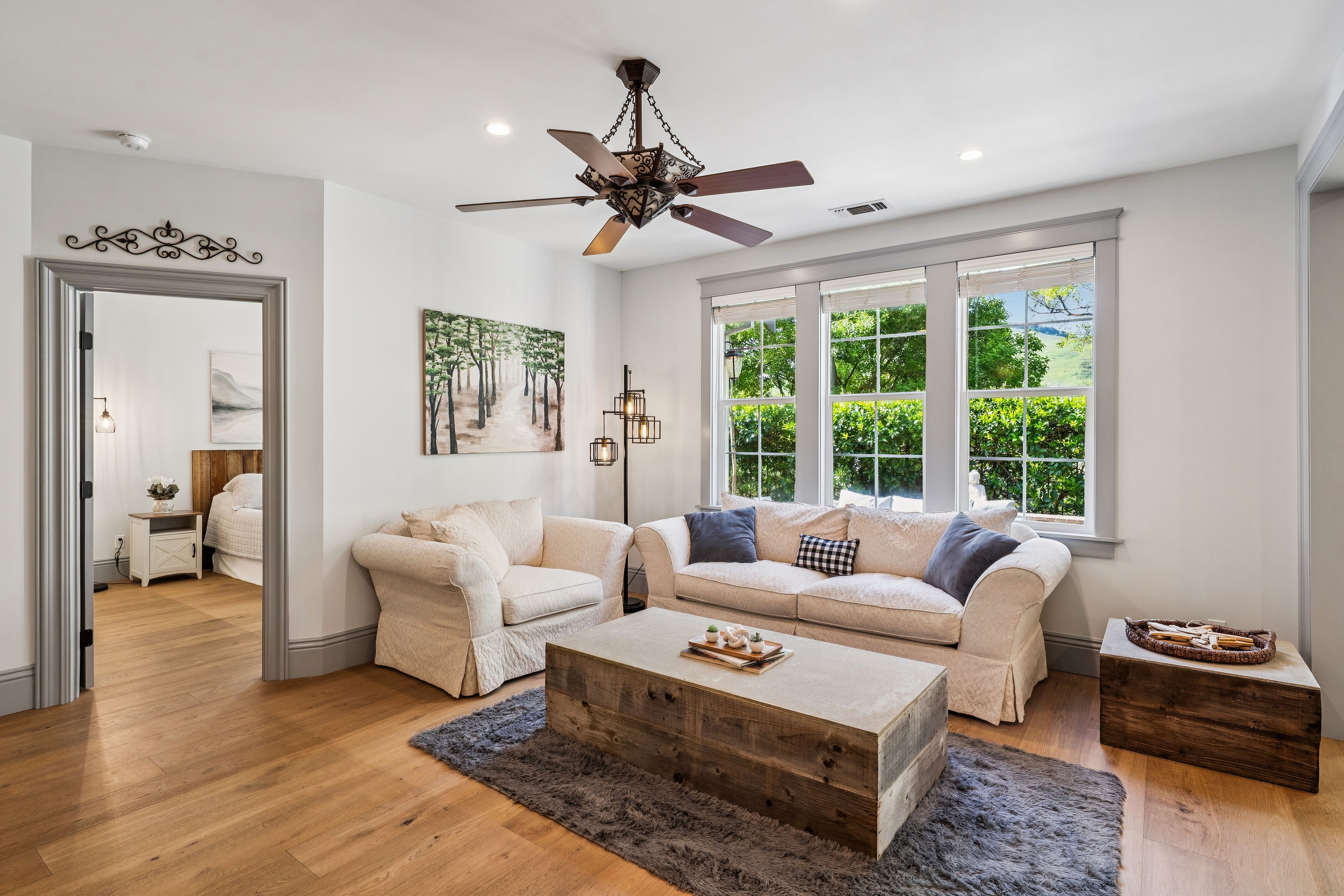Tucked within The Village, a gated, storybook-inspired enclave in Hiddenbrooke, this beautifully upgraded residence blends timeless charm with modern sophistication. Offering four bedrooms and four full bathrooms including two spacious primary suites this home provides exceptional flexibility for comfortable living and hosting. The newly remodeled kitchen showcases refaced cabinetry, updated hardware, and elegant trim work, seamlessly connecting to refined living spaces. A custom-built entertainment wall anchors the living room, complete with a sleek linear electric fireplace, creating a warm yet contemporary focal point. Throughout the main level and staircase, high-end Villagio European white oak hardwood flooring adds both durability and style. Thoughtful upgrades elevate every corner of the home, including a custom-built staircase, solid core doors for enhanced sound insulation, and smooth wall texturing with modern squared edges. Custom paneling, molding, baseboards, and built-in cabinetry enhance the architectural detail, while upgraded window moldings and LED lighting with dimmer switches add a polished, designer finish. Step outside to a private backyard featuring a slate tile patio perfect for relaxing or entertaining while new carpeting adds comfort to the upper level.