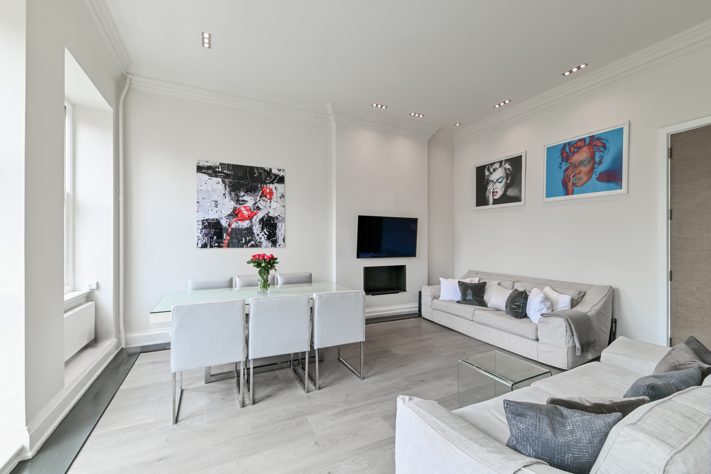Throughout, the apartment feels bright, well balanced and quietly sophisticated. The proportions are particularly appealing, with the high-floor position enhancing both privacy and outlook. The red-brick façade of the building, seen against the greenery of Cadogan Square, gives the apartment the kind of setting that is immediately recognisable as prime central London at its most enduringly desirable.