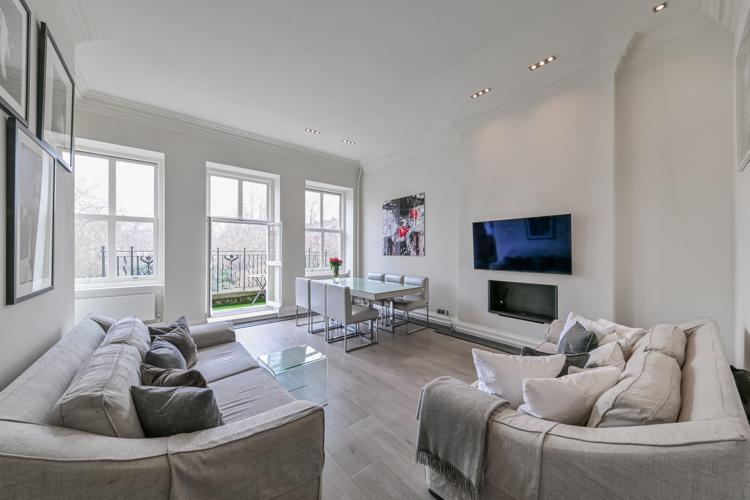 Occupying a handsome position on one of Knightsbridge’s most distinguished garden squares, this elegant second-floor apartment unfolds across approximately 914 sq ft, with wonderfully green views over Cadogan Square. With a balcony off the reception room, access to a flat roof from the second bedroom or study, and well-proportioned lateral accommodation, it is a polished London home in an exceptional address.