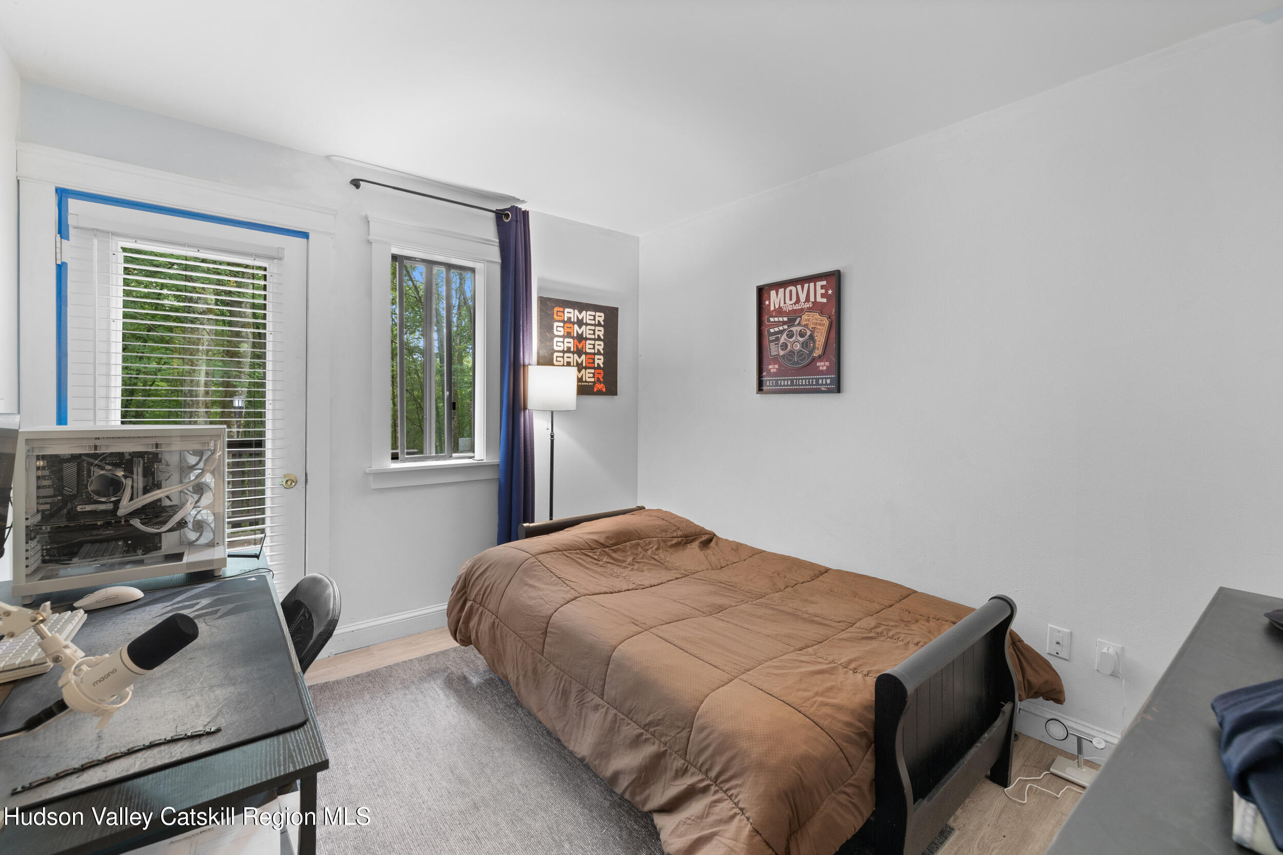 Discover your perfect upstate escape in this beautifully maintained townhouse nestled on a level lot with a charming stream meandering alongside the property, creating a peaceful natural setting. This spacious 2,128 square foot home features four bedrooms and two and a half bathrooms, combining comfort with thoughtful design throughout. Inside, you will find cathedral ceilings and hardwood floors throughout the home. The open kitchen and living area creates a perfect gathering space, while the wood-burning fireplace adds warmth during chilly evenings. The primary bedroom features an ensuite bathroom with a jacuzzi tub and radiant flooring for added comfort. The half bathroom is conveniently located on the main level. Both bedrooms on the main level provide direct access to the rear deck, making it easy to enjoy the outdoor space. The finished lower level includes two additional bedrooms, a full bathroom, a convenient laundry room and a sitting area-ideal for guests or a home office. Storage is abundant throughout the home, and outside you will find two sheds with additional storage space under the rear deck. This neighborhood offers an exceptional blend of tranquil residential living and exciting nearby attractions. The Kartrite Resort and Indoor Waterpark provides year-round family entertainment, while Resorts World Catskills offers gaming and dining experiences. Outdoor enthusiasts can explore the Woodridge trail system for hiking adventures, and culture lovers will enjoy the renowned Bethel Woods Center for the Arts featuring world-class entertainment. Located just 2 hours from Metro NY, the combination of peaceful surroundings, modern amenities, and proximity to recreational activities makes this property an ideal choice for those seeking an upstate lifestyle.