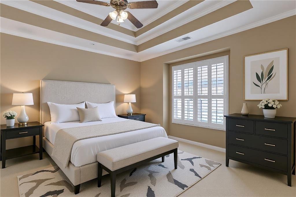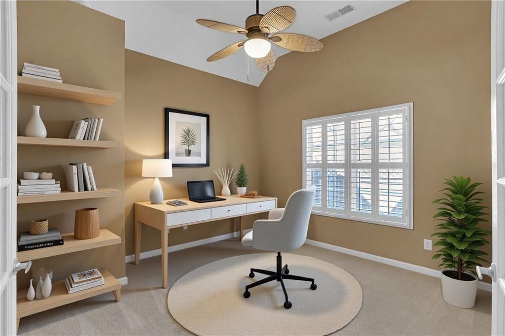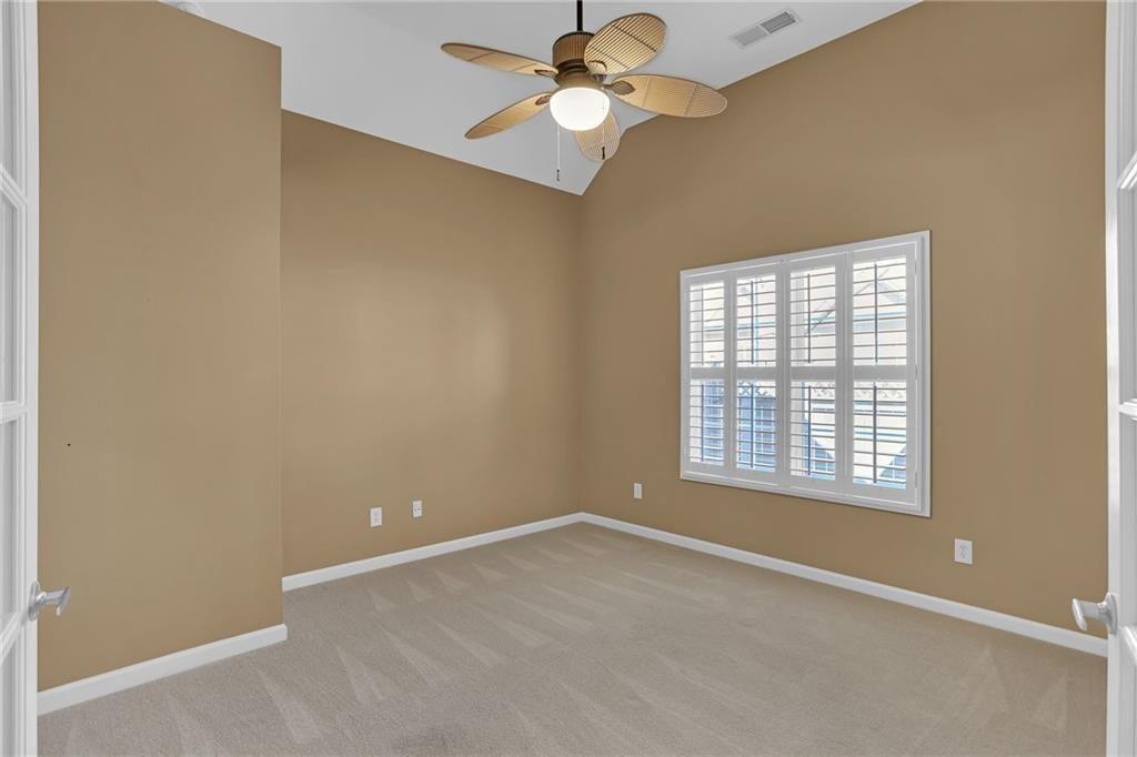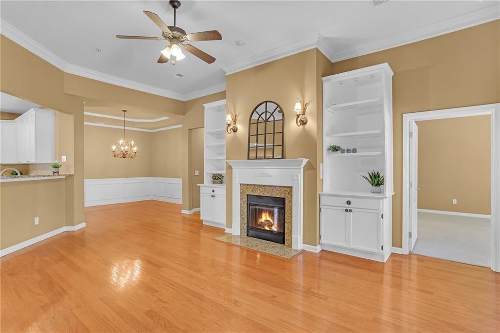Come see this hard-to-find, craftsman-style ranch townhome with 2 bedrooms/2 baths, a 2-car garage, plus an office/den, sunroom, formal dining, and a laundry room! Wow! All in a carefree, adult community where the exterior is managed by the HOA. The open floor plan flows easily to various rooms and you have a sense of individual spaces, not just a big open box! Updated with plantation shutters throughout, built-in bookcases, granite countertops, and a kitchen island. The furnace is approx 4 years old. The laundry room is just down the hall and includes the washer/dryer. The expanded patio is the perfect area to enjoy grilling and chilling. The house is ideal for entertaining. This floorplan is the largest style for the attached townhomes in the community. Often called a 3-bedroom, this home has the optional office/den. The community includes a beautiful clubhouse, fitness room, pool, walking trails and a lake. Close to downtown Woodstock or downtown Roswell, shopping, restaurants, and more. Come see!