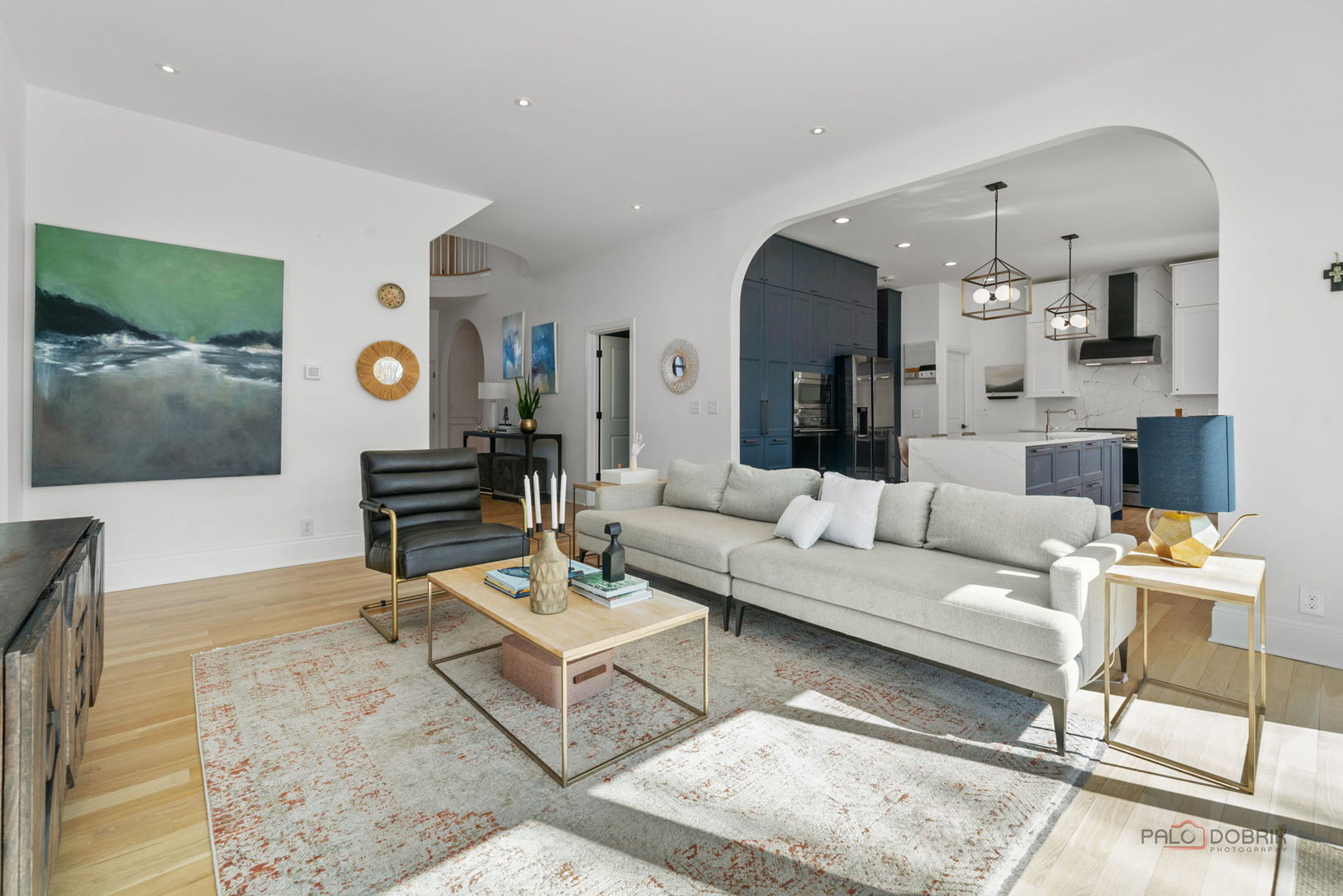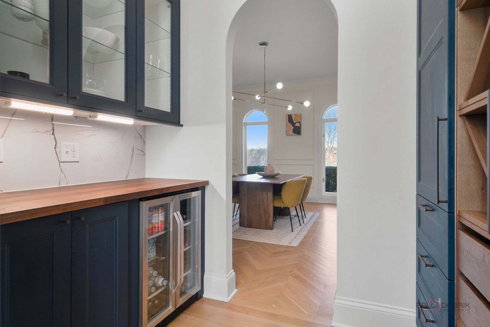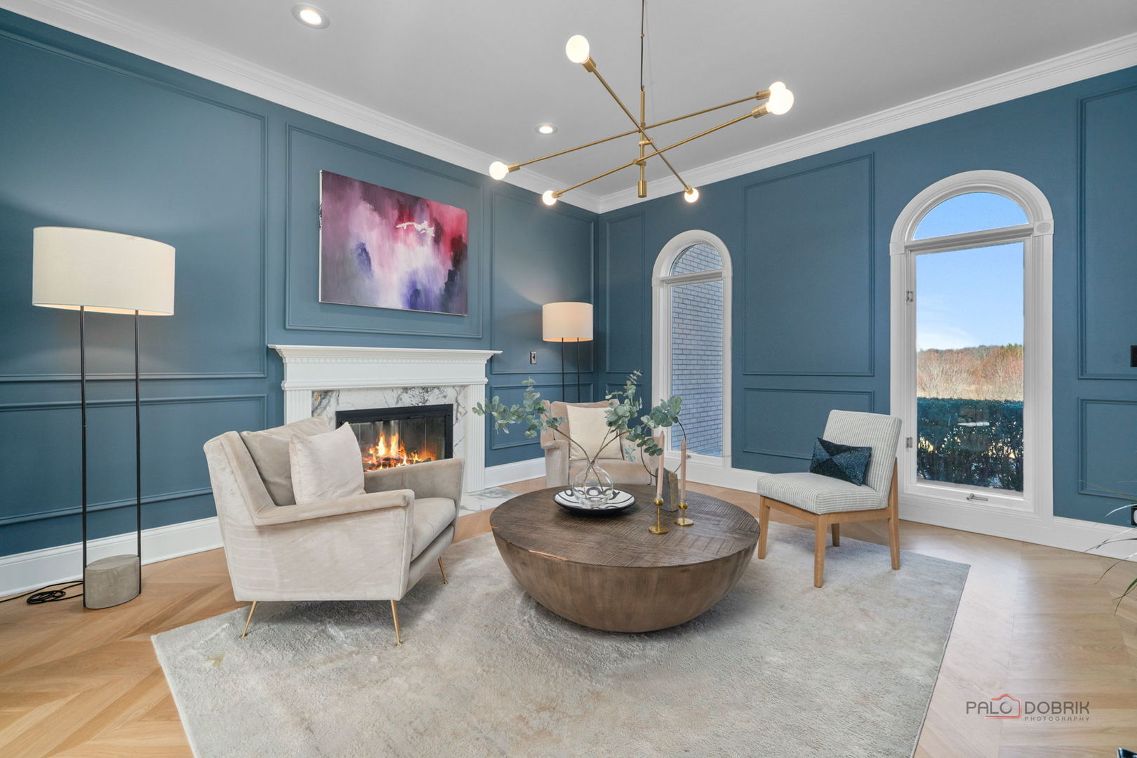 This elegant two-story brick residence offers approximately 6,800 square feet of refined living space and was comprehensively renovated in 2021. Set on 37.5 acres, the property is approached by a winding, tree-lined drive extending from a private gated entrance to the home. Three ponds enhance the picturesque setting and provide tranquil views throughout the grounds. Upon entry, a grand two-story foyer with a sweeping circular staircase creates a striking first impression. Oak flooring extends throughout both the first and second levels. Flanking the foyer, the formal living room features paneled walls, crown molding, and a marble-hearth, two-sided fireplace. Opposite, the dining room also showcases a marble fireplace and connects to the kitchen via a butler's pantry. The kitchen is both functional and well-appointed, featuring contemporary white and blue cabinetry, stainless steel appliances, and quartz countertops with a waterfall-edge island and matching backsplash. An octagonal breakfast room with arched windows surrounds the space with natural light. Adjacent to the kitchen, a spacious mudroom with built-in cabinetry leads to the laundry room and attached three-car garage. Through an arched opening, the family room offers expansive windows and a sliding glass door leading to a concrete aggregate patio overlooking the grounds. A private home office with a bay window is located just beyond. A notable feature on the main level is the children's playroom, situated next to a first-floor bedroom with an en-suite bath. This flexible space may serve as a primary suite, guest accommodations, or an in-law arrangement. The second level includes three additional bedrooms. The primary suite features a fireplace and private access to a catwalk leading to a balcony with views of the ponds. The catwalk continues to a secondary bedroom, ideal for use as a nursery. The primary bath is appointed with terrazzo tile flooring, a walk-in shower with a frameless glass enclosure, a walnut vanity with a granite countertop and dual vessel sinks, and a freestanding tub positioned beneath a window. The remaining bedrooms share a generously sized hall bath, complete with dual vanities, a walk-in shower with a frameless glass enclosure, and a freestanding tub. The lower level is thoughtfully divided into two distinct areas. One side is designed for recreation and entertaining, offering a large space suitable for a billiards room or home theater, along with French doors leading to a wine cellar with built-in storage. The opposite side features a private apartment with its own entrance, including a living room, kitchen, bedroom, office, bathroom, and laundry area. This space is well-suited for an in-law arrangement, guests, nanny suite, or potential rental use, with direct access to a covered carport beneath the main-level deck. There is a pole barn on the property, ideal for a workshop, vehicle storage, or potential equestrian use. An artist had a vision to make this home a masterpiece and loved the peaceful surroundings of this landscape. The property's expansive acreage and natural setting offer a rare opportunity for privacy, recreation, and an estate tailored to a variety of lifestyles.