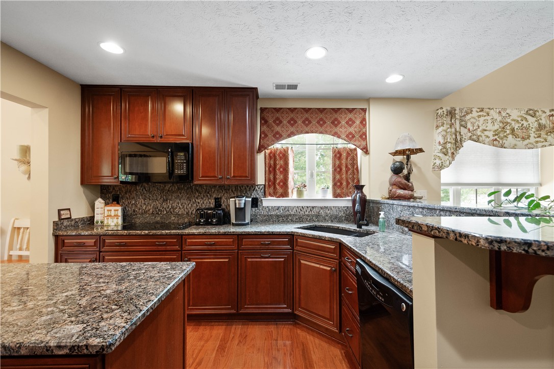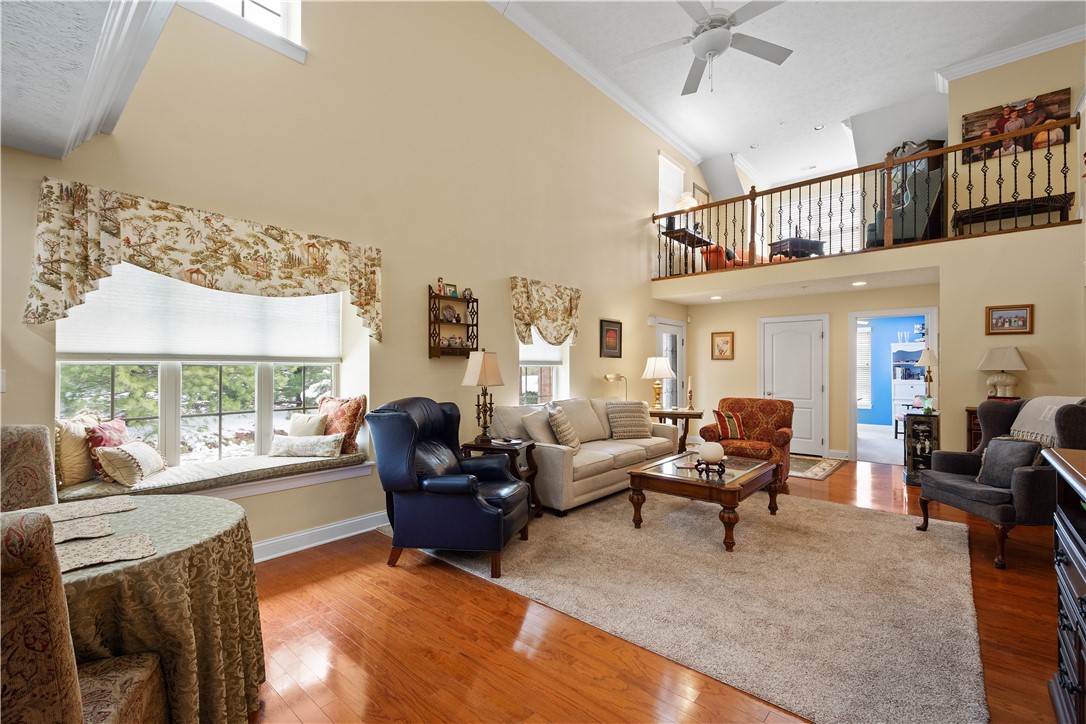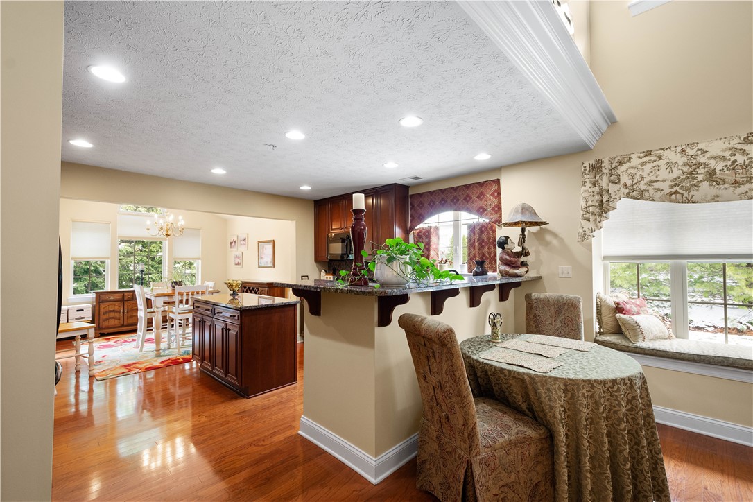 Enjoy low-maintenance, carefree living in the highly desirable patio home community of Hill Station Manor in Cecil Township - just minutes from I-79 and PA 576 for easy commuting and everyday convenience. This Laurel Hill end-unit floor plan offers an exceptional blend of space, style, and functionality. The main level features a sought-after first-floor primary suite complete with a luxurious ensuite bath, rain shower, Stright sinks, and an expansive walk-in closet, pocket doors. An impressive front-to-back great room showcases soaring ceilings and hardwood floors, creating a bright, open atmosphere perfect for both relaxing and entertaining. A private den at the front of the home provides the ideal space for a home office or quiet retreat. The beautifully upgraded kitchen is equipped with granite countertops, black appliances, glass topped electric stove, black sink, wall oven,and a high-top counter that seamlessly connects to the living and dining areas. The adjoining breakfast area opens to a private engraved patio - perfect for outdoor dining or enjoying peaceful moments at home. Convenience continues with a first-floor laundry room featuring cabinetry and direct access to the two-car garage. Recently painted primary bath and office, 18 months ago, powder room and primary bedroom 3 years ago. Upstairs, a spacious loft overlooks the great room and is complemented by a storage closet, two generously sized bedrooms - each with walk-in closets - and a lightly used full bath. The hot water heater is new, January 2026. This thoughtfully designed home offers the perfect combination of comfort, convenience, and easy living in one of Cecil Township's most sought-after communities.