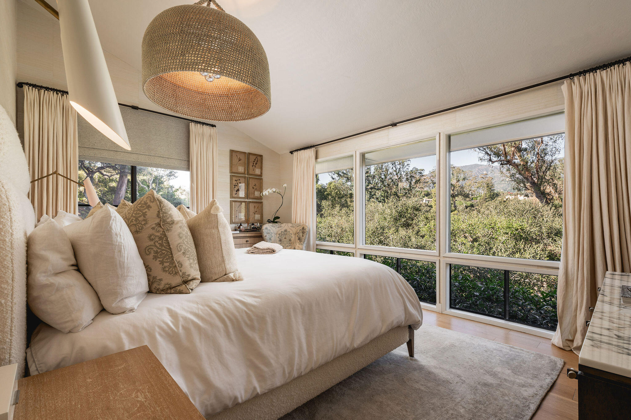 Sweeping Santa Ynez Mountain views create a striking backdrop for this private Montecito residence, on a lush acre in the exclusive Pepper Hill enclave, moments from the Lower Village. Recently remodeled, the home offers seamless indoor-outdoor living with expansive windows, stylish finishes, and abundant natural light. A gourmet kitchen opens to a family room with a cozy fireplace and view decks, while formal living and dining rooms provide space for entertaining. The main level enjoys the primary suite, two other bedrooms, and the lower level hosts a guest suite with separate entrance. The gardens showcase mature oaks, lawn, meandering paths, new hot tub, and a 2-car garage. All this, and more within the esteemed Cold Spring School District.