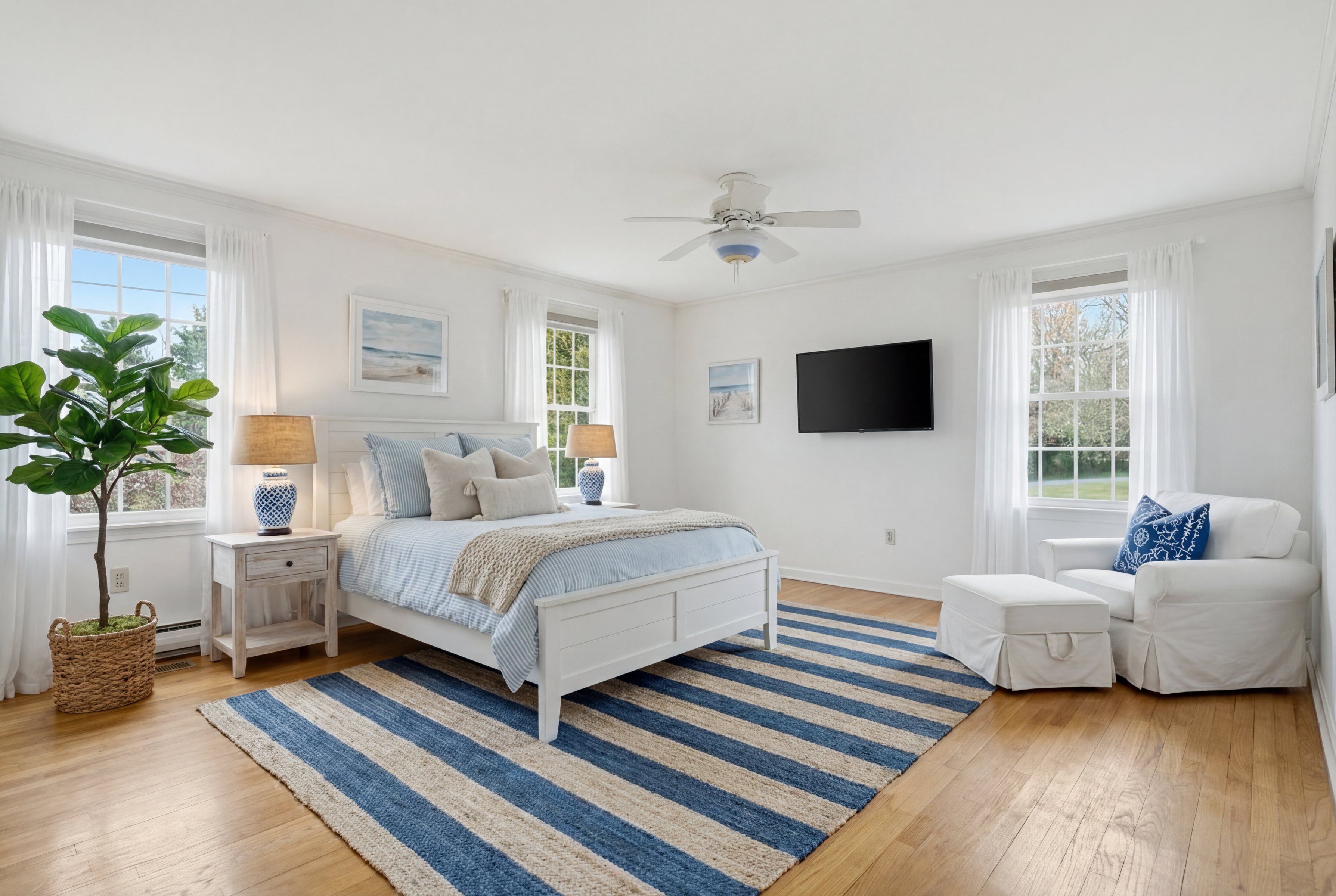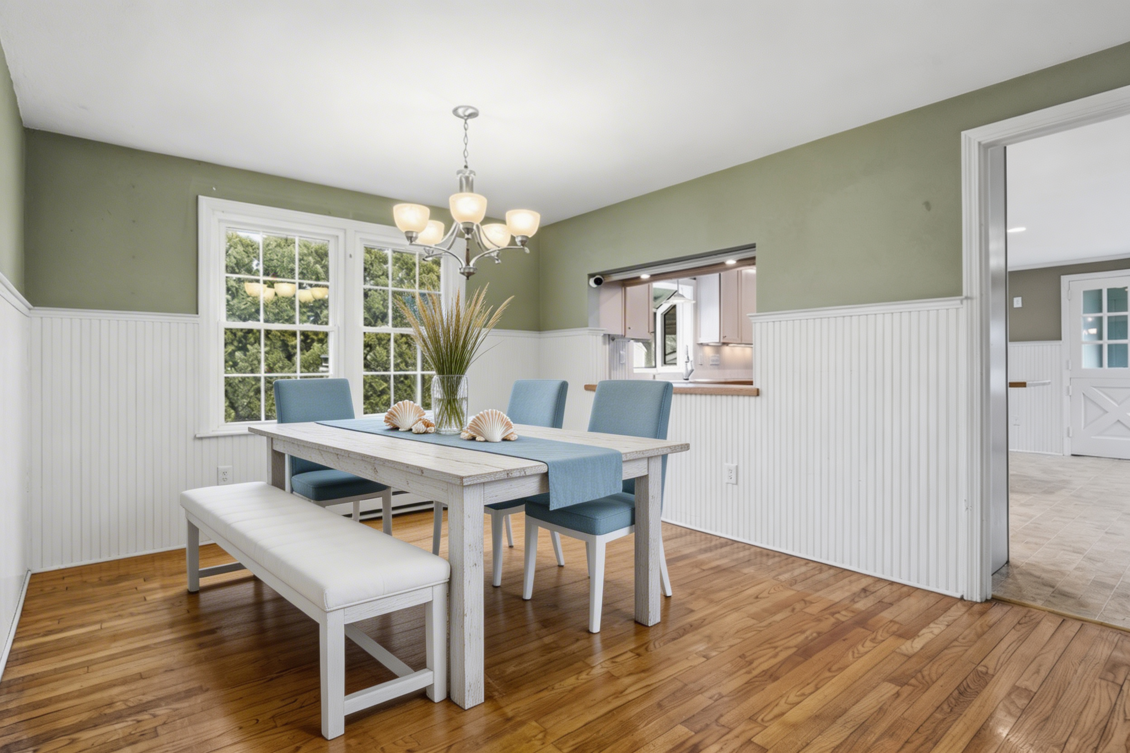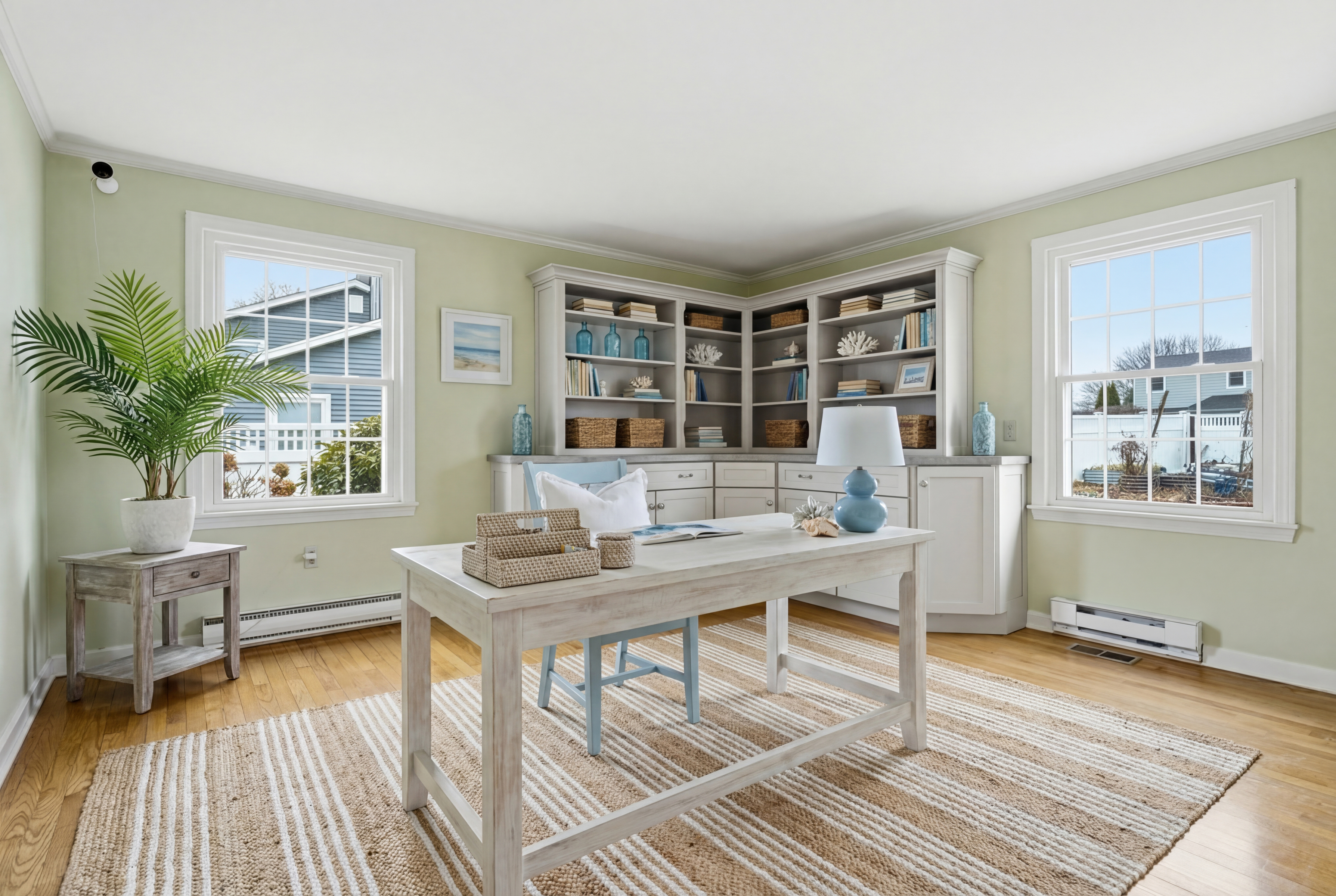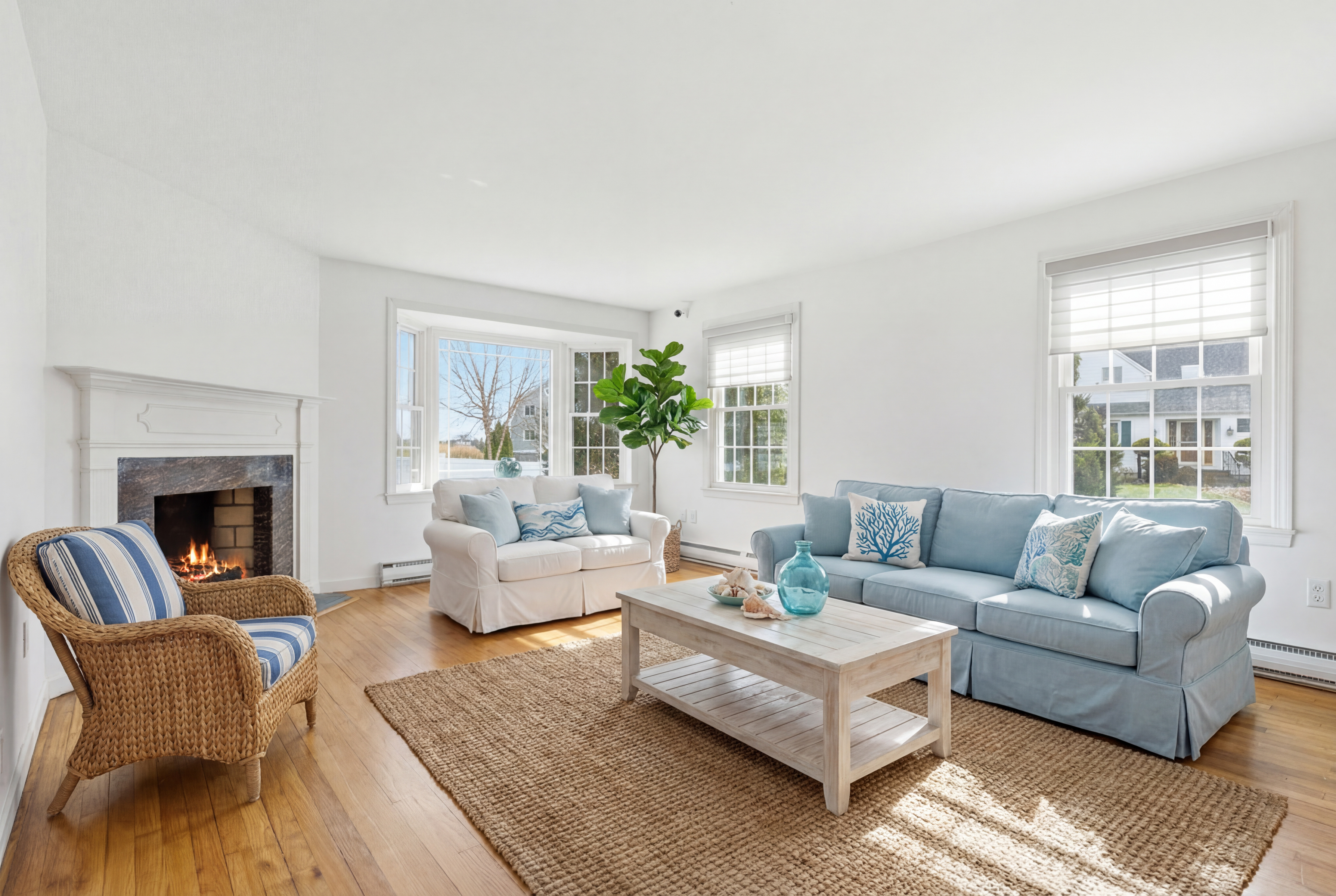 Meticulously maintained 3-4 bedroom Cape in established beach community with deeded association beach access. Freshly painted throughout, this inviting home features a spacious eat-in kitchen with cozy fireplace, stainless steel appliances, and slider access to a private patio-perfect for entertaining. The first floor offers a formal dining room, living room with fireplace, bedroom, and den/office for flexible living. Upstairs, enjoy a primary bedroom and guest bedroom, plus walk-in attic storage. Relax on the covered front porch with beach views, or tend the garden beds ready for your personal touch. Coastal living at its finest.