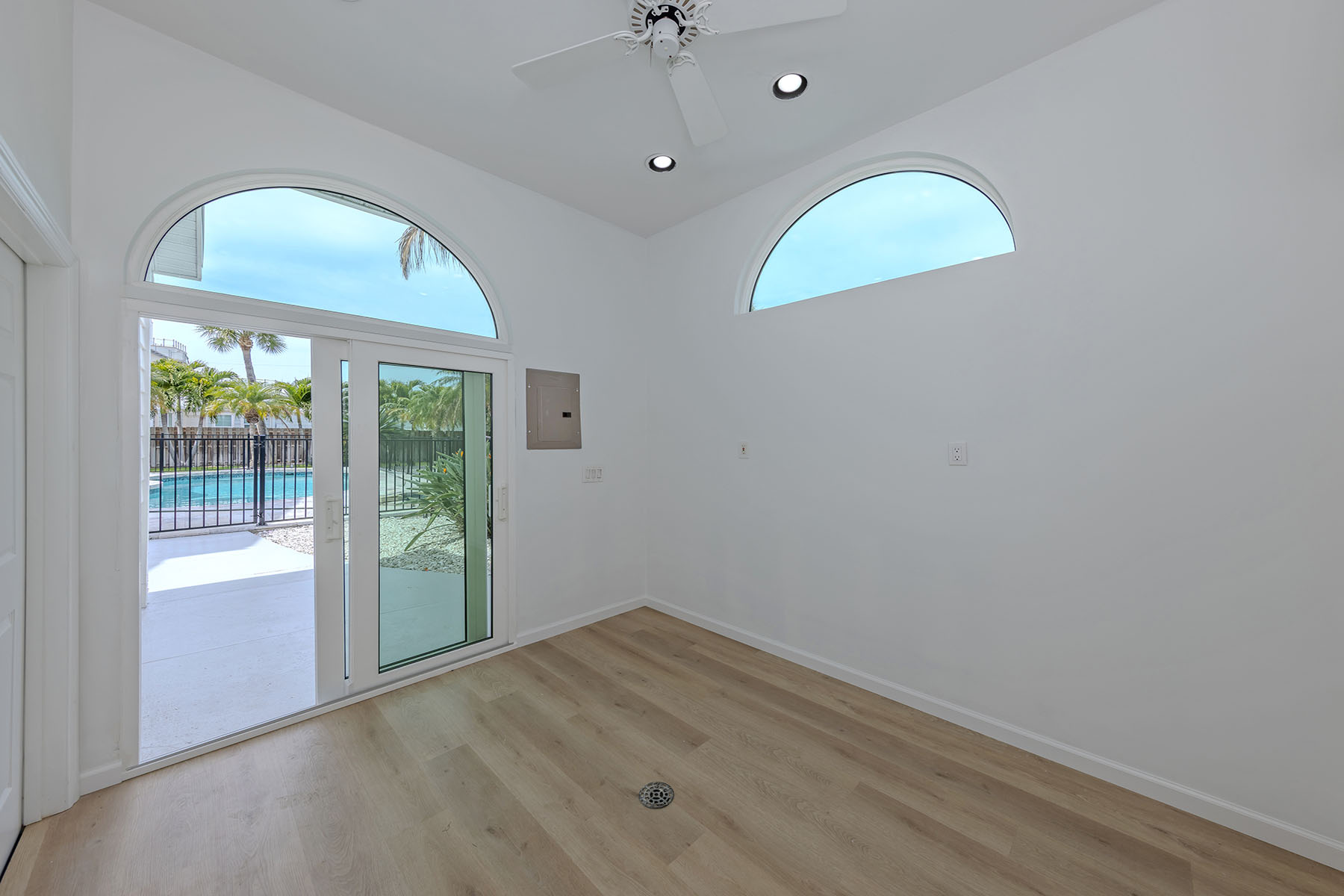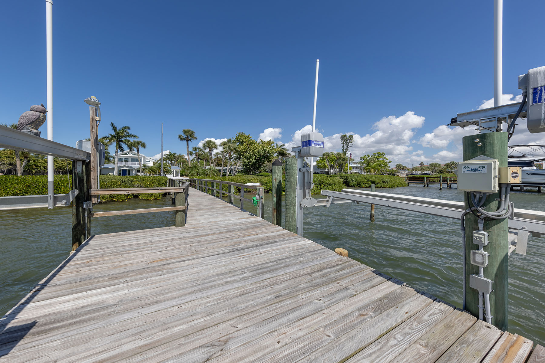 One or more photo(s) has been virtually staged. A boater's paradise, this beautiful, fully renovated waterfront home offers the ultimate Florida lifestyle on the stunning waters of Roberts Bay. Designed for those who love life on the water, the expansive deep-water dock is fully equipped with water and electricity, along with two boat lifts (10,000 pounds and 4,500 pounds) ready to accommodate all your watercraft and toys, making every day an adventure. Inside, the home has been thoughtfully and completely updated with hurricane-impact windows and doors, and a new metal roof providing peace of mind and modern elegance. The new kitchen is a showstopper, featuring wood cabinetry, stainless steel appliances, sleek quartz countertops, abundant prep space, a charming coffee bar and space in the kitchen for casual dining, ideal for entertaining or enjoying quiet mornings at home. Natural light pours through large windows, creating a bright, airy atmosphere throughout. This well-designed three-bedroom, two-bath residence offers a spacious and private primary suite on the second floor, where you'll wake up to breathtaking, panoramic views of Roberts Bay, an ever-changing waterfront backdrop that never gets old. You can enjoy your morning coffee and afternoon cocktail on your private upstairs balcony. Go outside in the backyard to your own private retreat, complete with a large open-air pool and spa, ideal for relaxing or hosting family and friends. The lush, landscaped yard features irrigation and ambient outdoor lighting, adding to the home's inviting ambiance. Additional highlights include a two-car garage and a versatile air-conditioned cabana room, ideal for a home office, gym or guest space. Blending luxury, comfort and an unbeatable waterfront setting, this exceptional property is the place to call home. Conveniently located beaches, shopping and Legacy Trail. Proximity to downtown Venice Island restaurants!