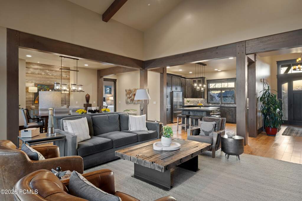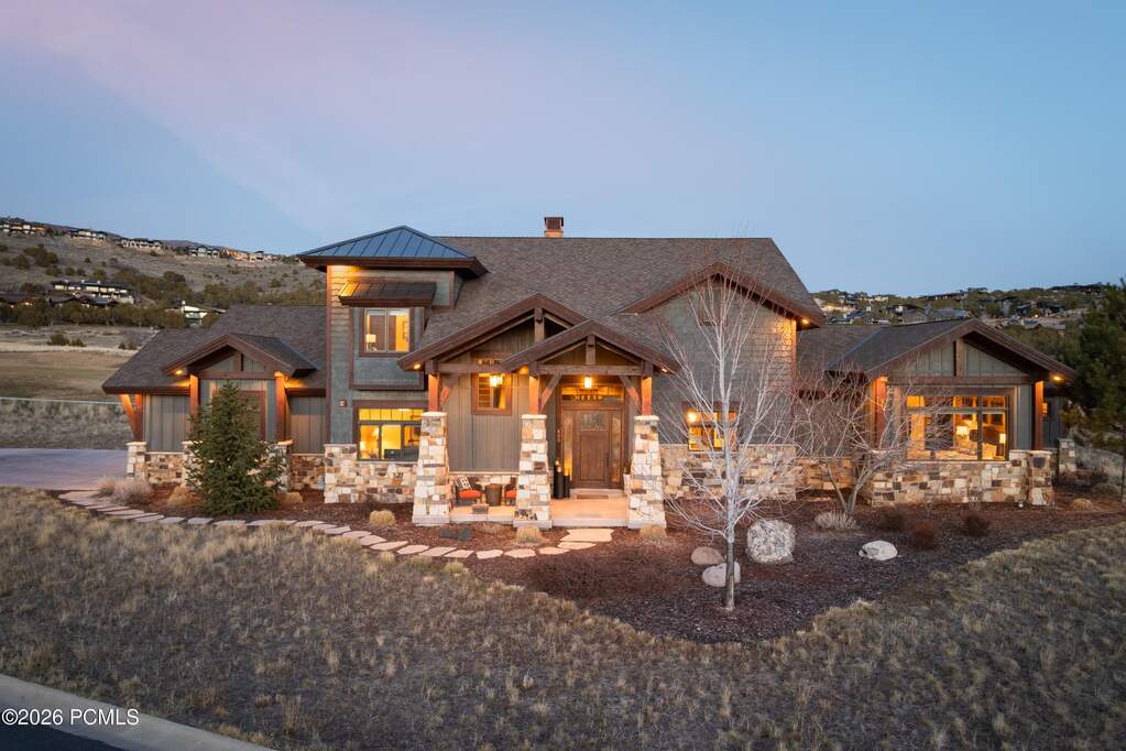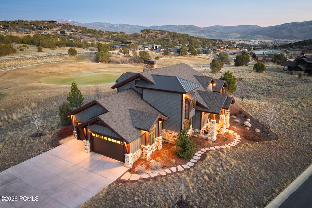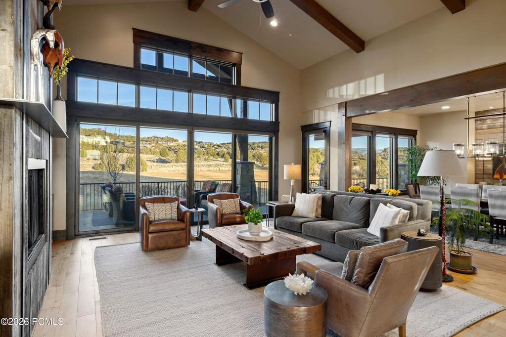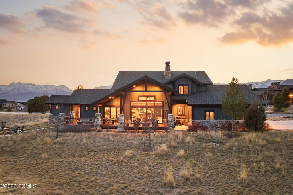 Custom luxury meets four-season adventure at 800 N Chimney Rock Road. Furnished by Robert Kelly Home of Park City, this 3-bedroom, 2.5-bath, 3,400 SF custom masterpiece rests on a pristine .67-acre lot with sweeping views of Hole 2 of the Jack Nicklaus Signature Golf Park. Designed for effortless main-level living, the home features an expansive primary suite, a dedicated study (which easily transforms into a 4th bedroom), and a magnificent great room anchored by rich hardwood floors, rustic barnboard walls, and a cozy barnboard gas fireplace. Entertainers will love the chef-inspired kitchen with a seamlessly hidden pantry and a dining room proportioned for a 10-person table. Upstairs, a versatile loft and two spacious bedrooms offer quiet, private quarters. Outside, a sprawling covered deck transitions seamlessly into a meticulously landscaped yard, where a glowing gas firepit offers front-row seats to panoramic mountain and fairway views. A cavernous 1,121 SF 3-car garage easily accommodates vehicles, a golf cart, and outdoor gear. Crucially, a highly coveted Full Golf Membership is available, unlocking immediate access to the 18-hole Signature Course and 12-hole Golf Park. You are walking distance to the Village Center's resort pool, indoor tennis, pickleball, sauna, and 10,000 SF fitness center, plus the equestrian center and exclusive dining at Juniper Grill. Beyond the 24-hour manned gates, owners enjoy access to three private Deer Valley ski clubs (St. Regis Deer Crest Club, Alpinist, and Stag Lodge), with private shuttles to East Village just 15 minutes away. For ultimate convenience, downtown Heber is 5 minutes away, offering groceries, gas, dining, shops, services, and a full Intermountain Healthcare Hospital. The ultimate mountain retreat, proudly built by Purehaven Homes.
