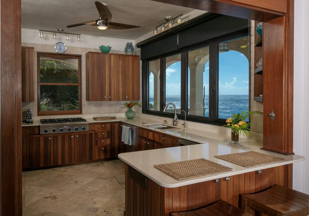 ''Sea View Terrace'' is an elegant Caribbean style villa privately situated on the waterfront in Deever's bay on an over-sized 1.04 acre parcel affording exceptional sunset views, St. Thomas, French Cap and Pillsbury Sound located in the desirable Chocolate Hole neighborhood close to Cruz bay town restaurants, shops and north shore beaches. ''Sea View Terrace'' is perfect for a private family retreat or is currently a popular short-term rental villa with 5 private bedrooms with en-suite baths, fully air-conditioned, equipped with solar and an automatic all-house generator to ensure comfort during your stay. Plenty of space to gather in the large great room with a well-equipped gourmet kitchen and indoor & outdoor dining by the infinity edge pool. Truly a ''must see'' to fully appreciate!