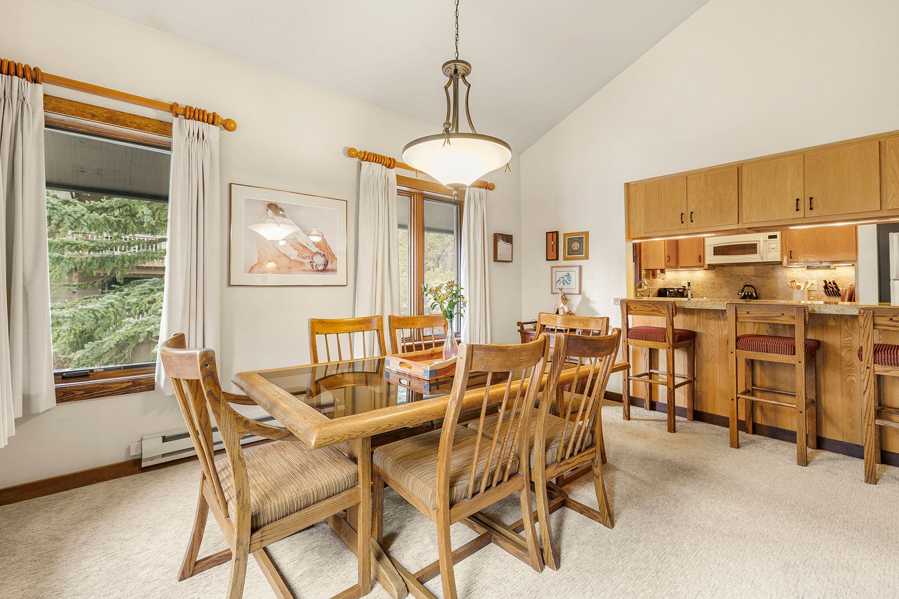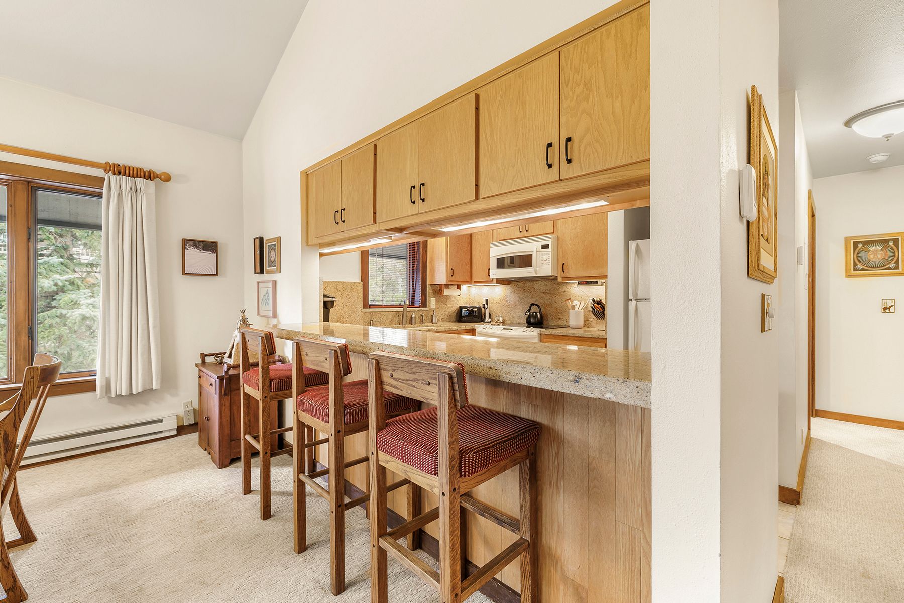 Updated Teton Village classic ski condo on Michael Drive, sunny and bright top-floor unit with vaulted ceilings. Two bedroom, two bath (w loft). Galley kitchen with stone counters. Lavishly remodeled baths with upscale fixtures, one glass-enclosed shower, and one bathtub. Loft space offers a compact area for extra guests or kids. Covered garage, bonus storage, ski locker. Strong HOA. Short-term rentable. Fantastic ski access. Quick walk up to Moose Creek chair or hop on the complimentary ski shuttle. Membership at the nearby Sundance Pool & Tennis Club is available with a transfer fee.