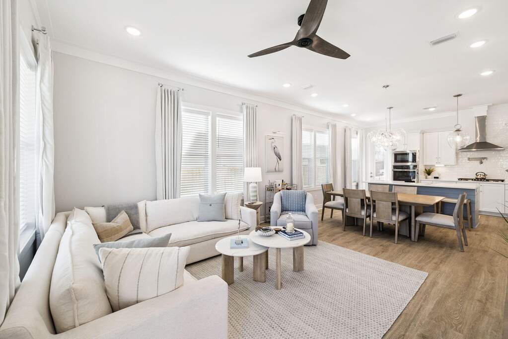If you've been waiting for a home in Inlet Beach that offers space, flexibility, and a highly walkable location near 30A, 95 W Willow Mist checks all the boxes. With a rarely available floor plan, multiple living areas, and thoughtful upgrades throughout, this is the kind of property that stands out the moment you walk through the door. Featuring 5 bedrooms, 3.5 bathrooms, and a second-floor bonus loft, the layout is designed to comfortably accommodate both everyday living and hosting guests. The first-floor primary suite provides privacy and convenience, complete with a large walk-in closet and a well-appointed bathroom. The main living space is open and inviting, highlighted by crown molding, updated light fixtures, and clean coastal finishes. The kitchen is both functional and refined, offering quartz countertops, a gas range with vent hood, stainless steel appliances, a porcelain sink, and updated cabinet hardware, all seamlessly connected to the living and dining areas. Outdoor living is a true highlight, with both front and rear covered porches featuring wood accent ceilings, along with a screened-in back porch that overlooks a beautifully landscaped backyard. Updated pavers, lush landscaping, irrigation, and an outdoor shower create a space designed to enjoy the coastal lifestyle year-round. Additional features include a one-car garage with tall ceilings for extra storage, gas tankless water heater, dedicated laundry room, tiled bathrooms, Hardie board exterior, and a security system. The home has been freshly painted throughout and meticulously maintained, offering a move-in ready opportunity. Located in a highly desirable and walkable community, residents enjoy access to a community pool and a dock on Lake Powell. Just minutes from 30Avenue, with easy access to the pedestrian underpass leading to Alys Beach and Rosemary Beach, and a large regional beach access at the end of the street, this location makes it easy to enjoy everything the 30A lifestyle has to offer. Whether you're searching for a primary residence, second home, or a short-term rental investment opportunity along 30A, this property offers the flexibility and location to support a wide range of ownership goals.