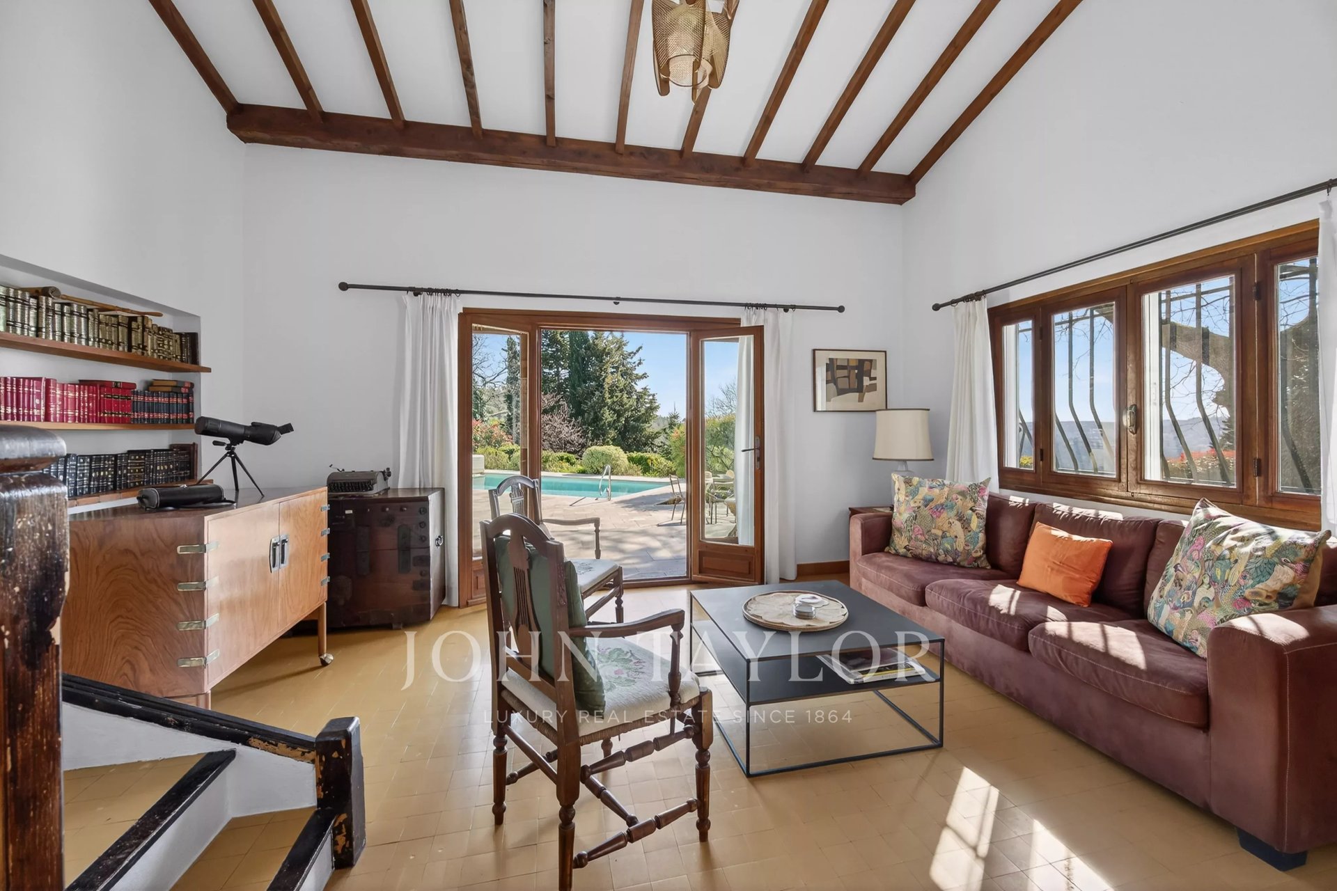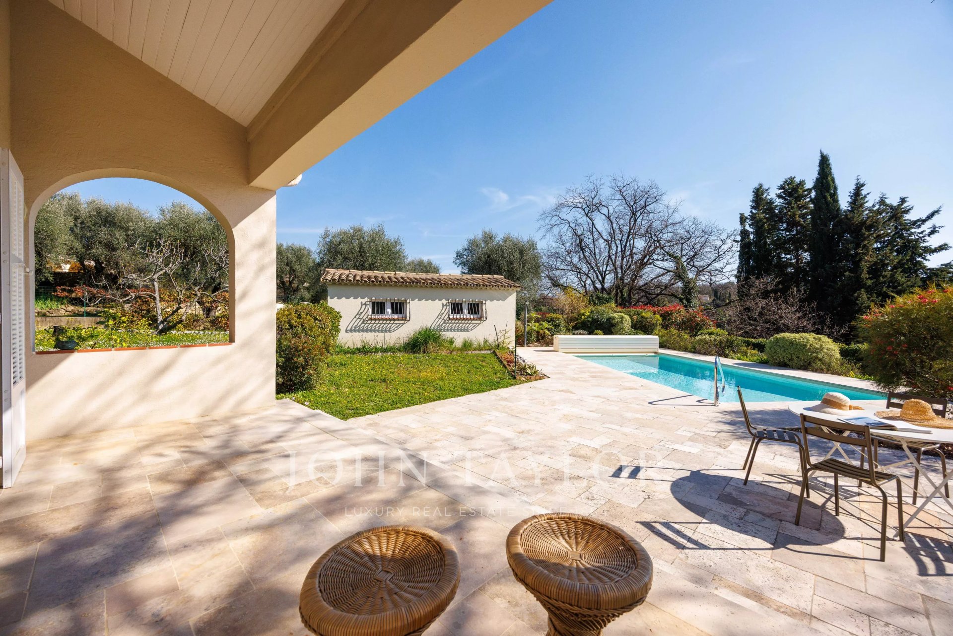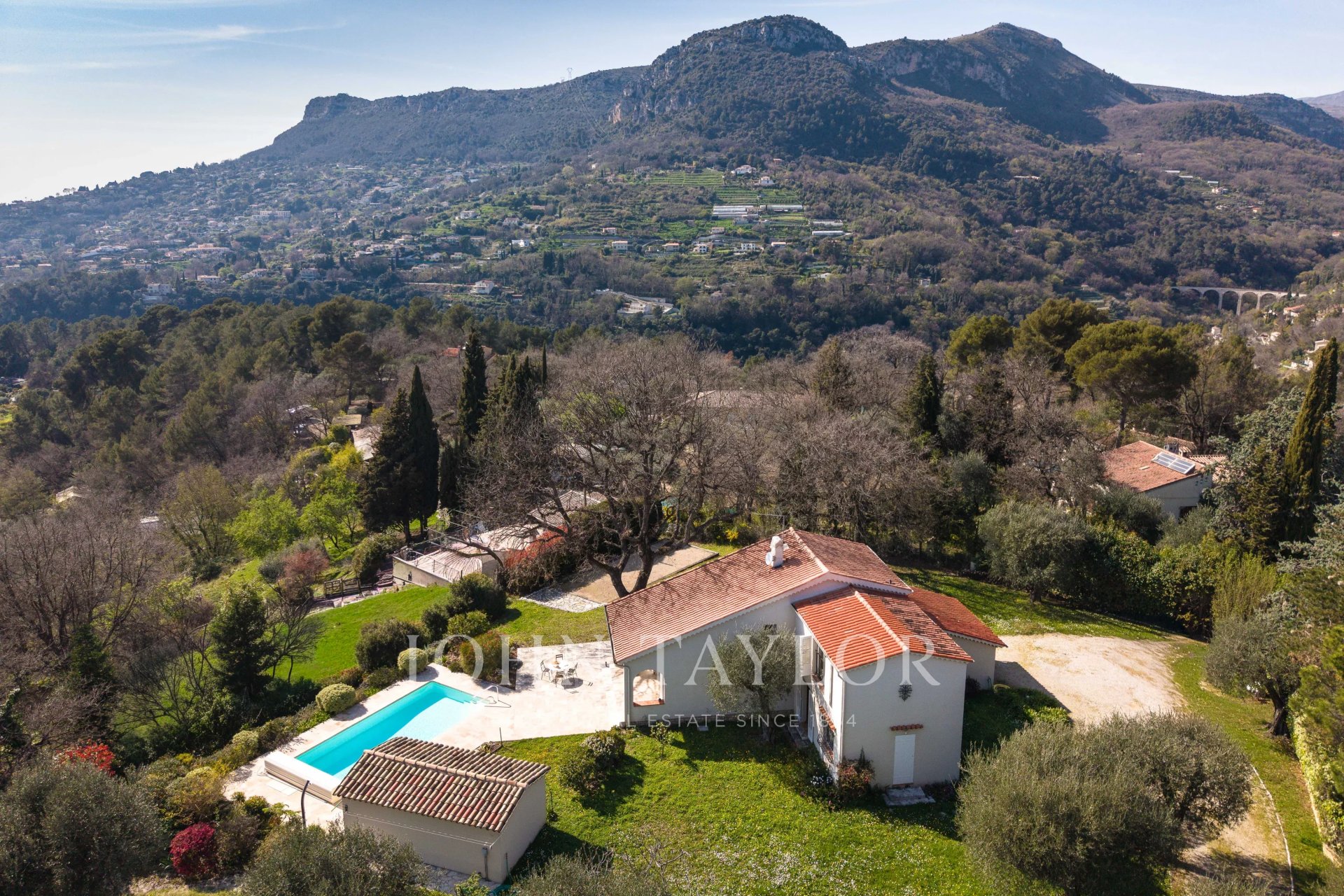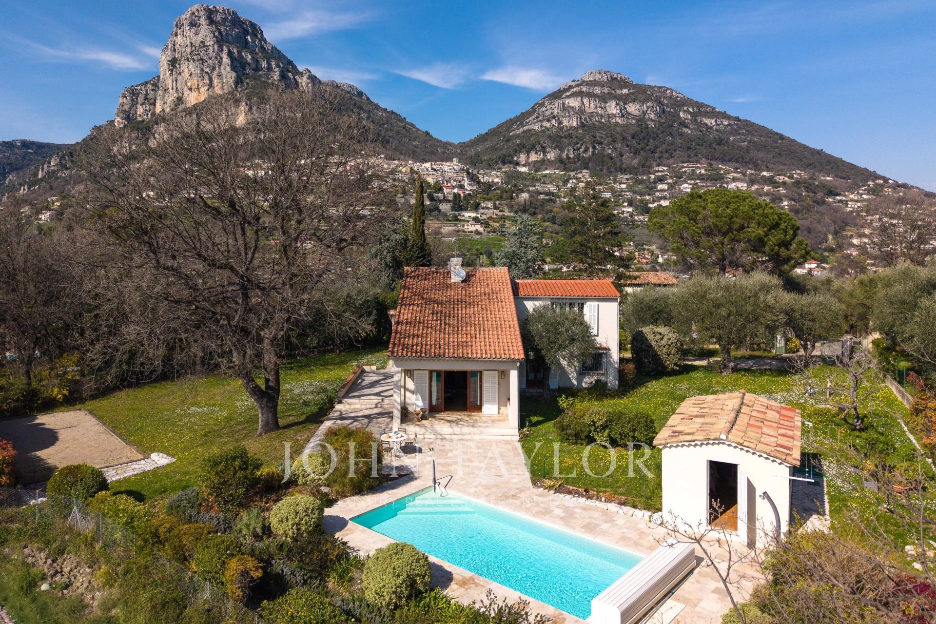 Just a few hundred meters from the shops of Saint-Jeannet and bus stops, in absolute quiet and benefiting from a magnificent view of the surrounding hills, villages, and the famous Baous, this approximately 120 sqm house with swimming pool has a south-west exposure which makes it very bright throughout the day.The house consists of a cathedral living room opening onto the terraces, a kitchen/dining room, as well as 3 bedrooms, 2 shower rooms (possibility of a 3rd), and a sleeping area constituting the 4th bedroom with a small shower room. A garage completes this property.The property benefits from the rare combination of an entirely flat garden and panoramic views of the surrounding hills, the villages of Vence and Saint-Jeannet, as well as the mythical Baous! The covered and heated pool, generous terraces, and pétanque court make this outdoor space a friendly, family, and easy-to-maintain area, all in absolute calm and at the end of a dead-end street!