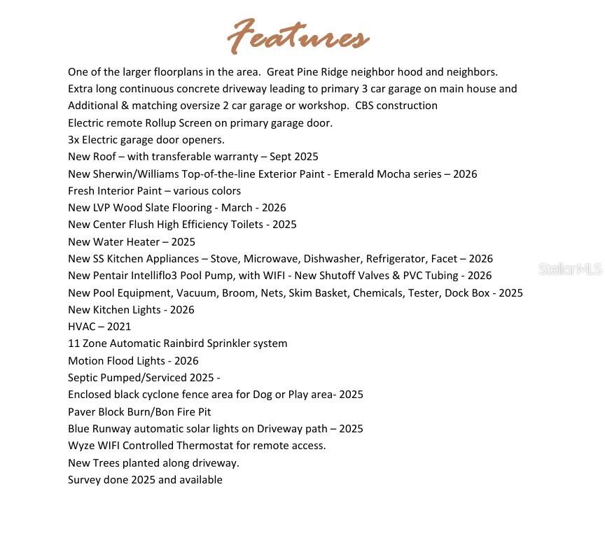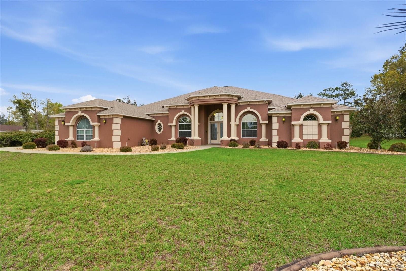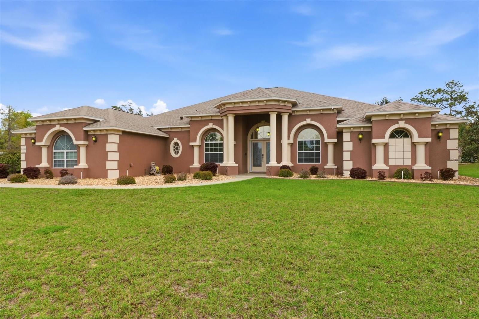 One or more photo(s) has been virtually staged. DREAM BIG AND GO HOME! Make this Beauty Your Reality! Built by Dream Homes, this amazingly unique 4BD/3BA/3CG pool home w/ detached garage/workshop sits comfortably on 1.01 acres, spectacularly showcases 4746sqft under roof & boasts a meticulous attention to detail. Upgrades galore! Extremely welcoming entry greets all who enter the French doors; elegant lighting fixture above, NEW luxury vinyl planking below & double-sided electric fireplace front & center. Extravagance emanates w/ high ceilings, architectural columns/arches, & plant shelves. The huge open floor plan, split bedrooms & 2 flex rms easily meet evolving needs! The living room features a lighted tray ceiling, stacking slider, dry bar w/ granite & built-in entertainment center. Plenty of built-ins: buffet cabinet in dining room, bookshelves in flex area & computer desks in bedrooms. The gourmet kitchen is sure to impress: wood cabinets, uppers w/ glass front accents, crown molding, granite, tiled backsplash, NEW S/S appliances, NEW lighting fixtures, breakfast bar, island & pantry. The breakfast nook w/ fishbowl glass is the room with a view & convenient for afternoon brunch or casual dining. A quiet retreat awaits in the master bedroom w/ lighted tray ceiling, sitting area, 2 closets (one being a walk-in) & ensuite w/ dual sinks, water closet, garden tub & walk-thru shower w/ dual controls & add'l rain shower. Separate guest room & bathroom w/ access to the lanai can be closed off for privacy w/ the pocket door, making it ideal for an in-law suite. Amazing memories await on the screened lanai which boasts an in-ground pool w/ brick coping & waterfall & plenty of space for entertaining. NEW Pentair pool pump & NEW accessory equipment are a plus! The luxuries are endless: NEW center flush high efficiency toilets, NEW Wyze WIFI controlled thermostat, electric rollup garage screen & retractable front entry screens. NEW ROOF w/ WARRANTY 2025! NEW WATER HTR 2025! SEPTIC PUMPED/SERVICED 2025! FRESHLY PAINTED in & out w/ Sherwin Williams top of the line paint 2026. Outdoor space features neat & clean landscaping, newly planted trees along driveway, decorative curbing, an 11-zone irrigation sys, firepit & newly installed chain link fenced area for your furry friend. Wait there's more-NEW outdoor motion flood lights & NEW solar, blue RUNWAY lights to guide you to your new home! A 24'x27' detached, CBS constructed garage/workshop w/ an electric garage door opener & 60amp electric panel would be on any wish list. NO FLOOD ZONE! Located in Pine Ridge Estates, an upscale equestrian community w/ 28 miles of horseback/walking trails & a 94acre complex w/ a community barn. Shopping at Citrus County's BRAND-NEW RETAIL HOTSPOT, The Shoppes at Black Diamond is only 10 min away & all the rave w/ some of your favorite Big Box Stores & many other well-known retailers. Downtown Crystal River & The Gulf are about 10 mi away for boating, fishing, kayaking & the only place to SWIM W/ THE MANATEES! FREE 1 YR HOME WARRANTY FOR PEACE OF MIND IS OFFERED TO THE BUYER!