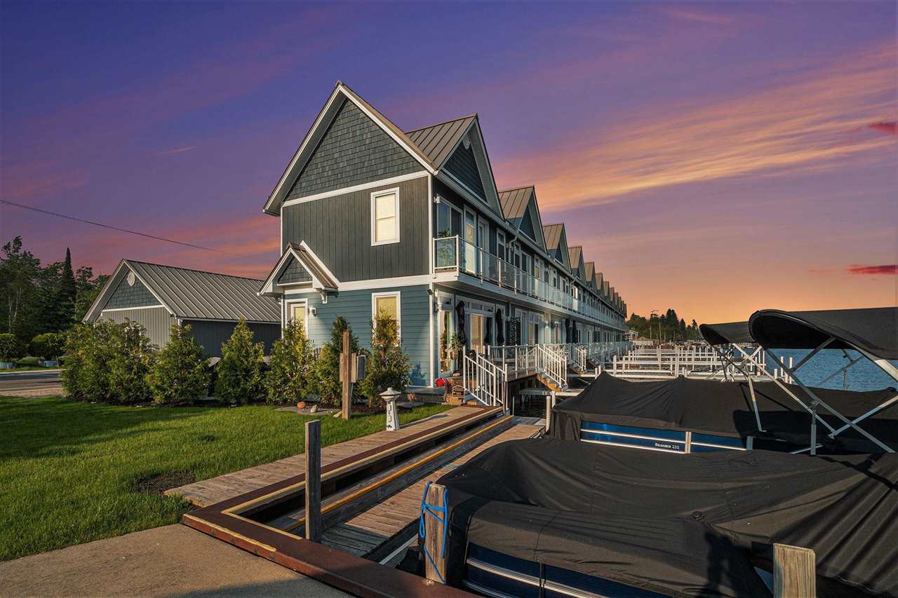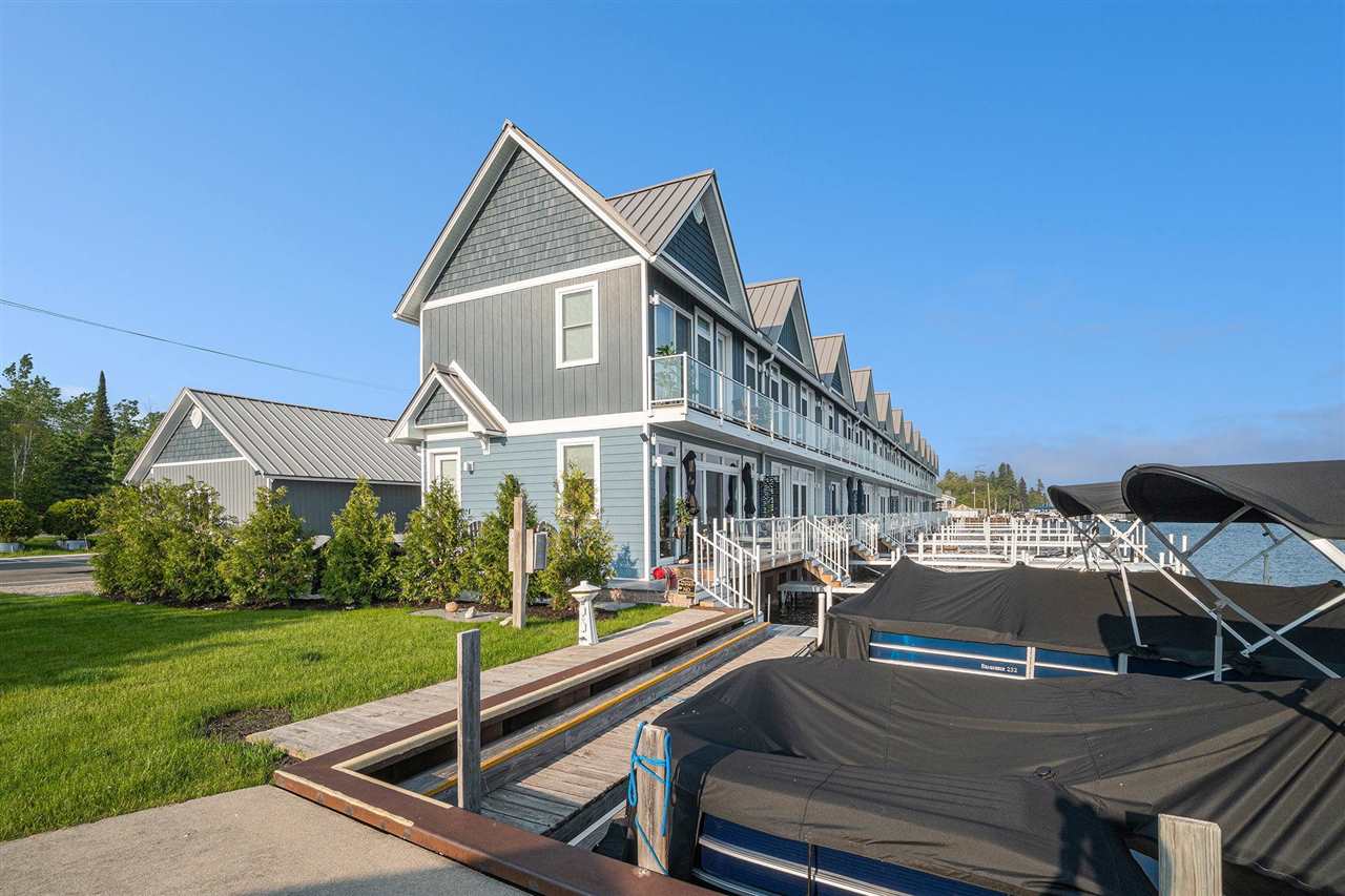 Introducing one of the most exceptional residences in BoatHouse Village, a fully customized waterfront home on Crooked Lake along Northern Michigan's prestigious Inland Waterway. Newly built in 2024 and further renovated and upgraded in 2025, this premier unit offers refined design, luxury finishes, and an unbeatable on-the-water location. Step out from your private first-floor deck to access two deeded boat slips just steps away, making boating and fishing effortless on one of Michigan's most desirable waterways. Inside, the home features high-end finishes, custom upgrades, and a never-lived-in interior that makes this unit stand out within this boutique condominium development. The spacious two-car garage now includes a heated sauna room with a four-person cedar infrared sauna, creating a private wellness retreat after a day on the lake or the ski slopes. Enjoy south-facing views over Crooked Lake and the rolling hills of Emmet County from your second-story balcony. BoatHouse Village is one of the last developments approved to be built directly over the Inland Waterway, offering rare exclusivity and long-term value. The property can be short-term rented and has solid year-round rental history available, making it an excellent investment opportunity. Located just 8 miles from Petoskey and Harbor Springs, with four-season recreation including nearby skiing at Nub's Nob and Boyne Highlands, and only 30 minutes to the Mackinac Bridge, this property offers both convenience and adventure year-round. With two private boat slips, Bulmann dock, infrared sauna, and extensive upgrades, this premier BoatHouse Village residence delivers luxury waterfront living in Northern Michigan. Long-term rental option also available.
