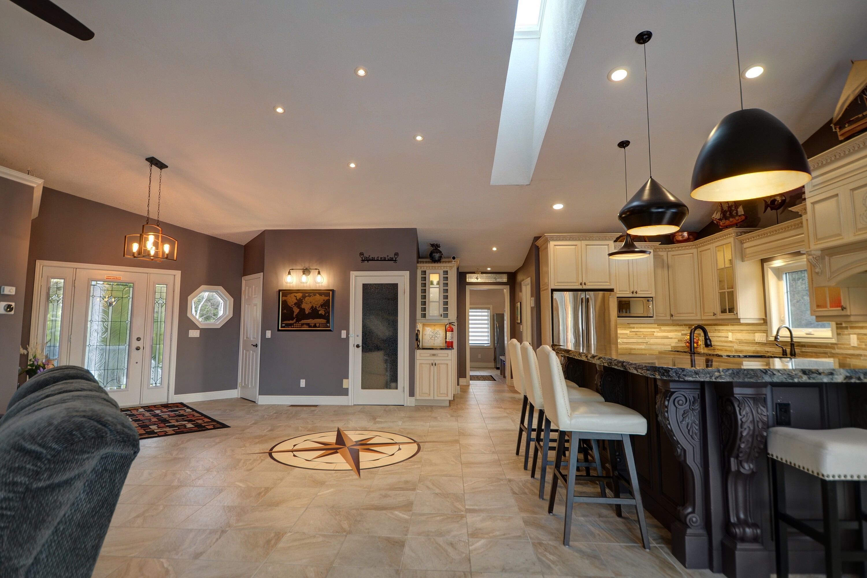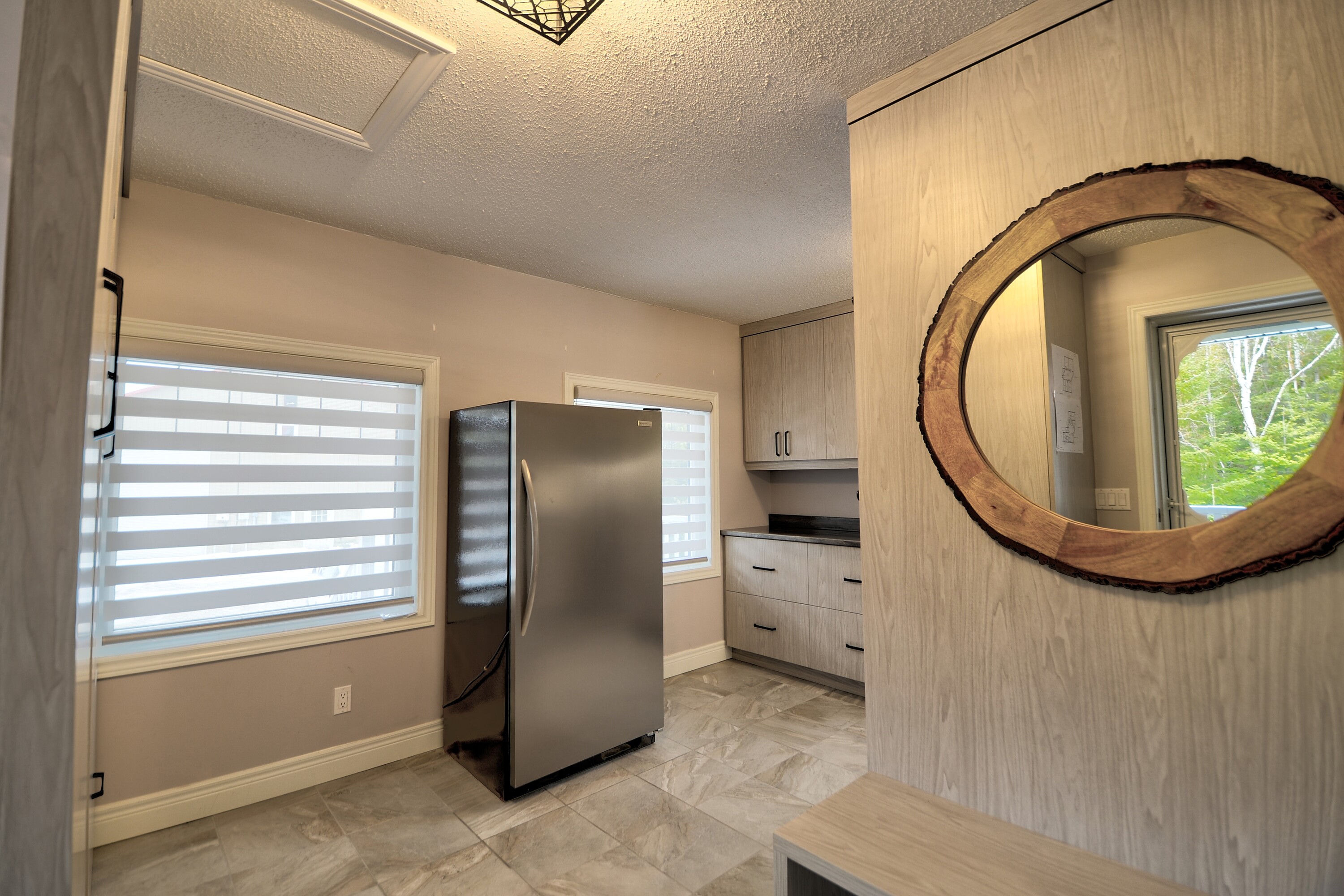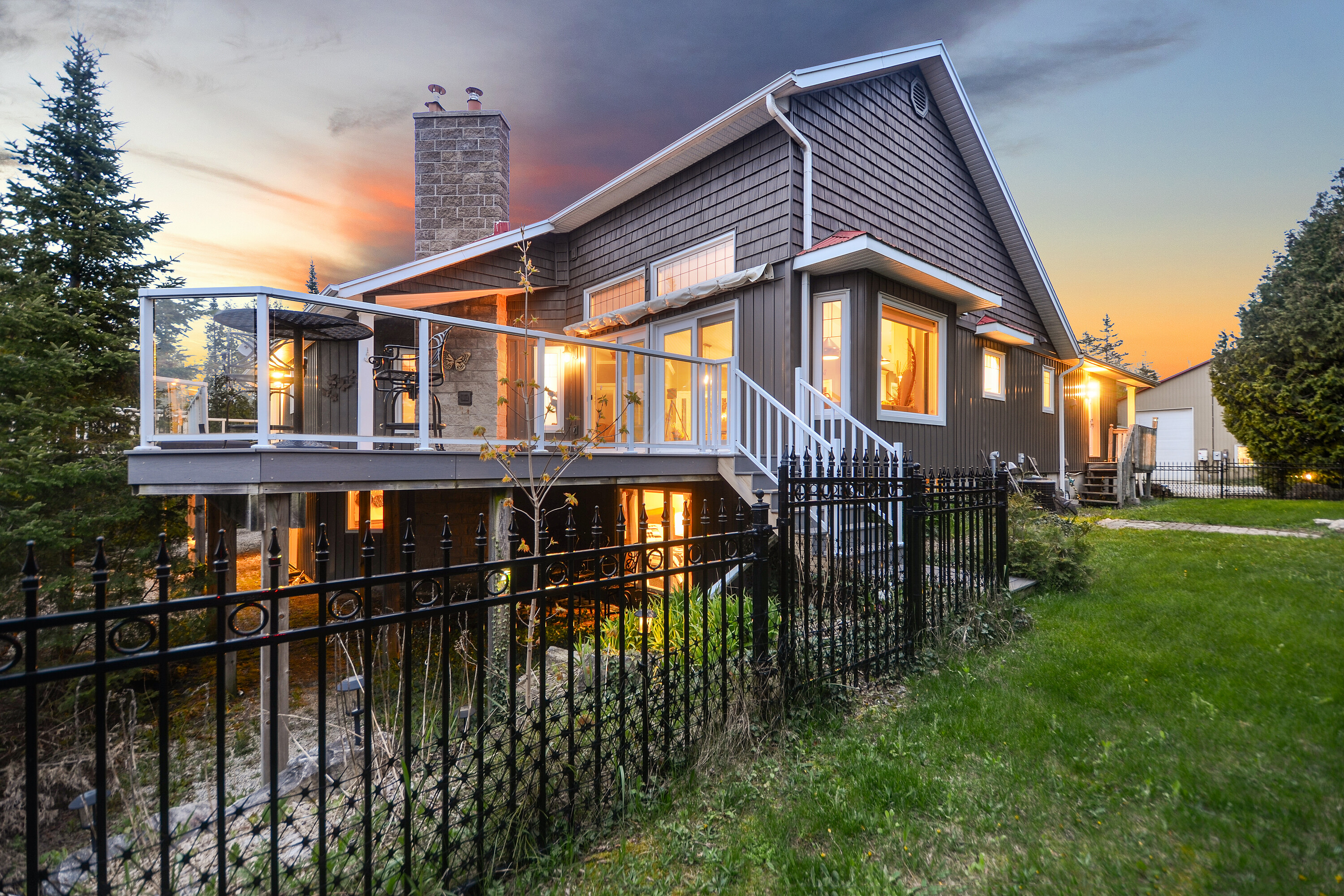 Experience lakeside luxury at this 4,000 square foot cottage on Lake Huron's pristine shores. With sunset views, crystal-clear waters, and a serviced dock for 40 foot vessels, it's a serene escape. The one-acre lot features 110 foot frontage, hosting a fully updated cottage with two plus two bedrooms and two plus one bathrooms. Vaulted ceilings, skylights, and a stone fireplace create warmth. The lower level has two bedrooms, a bath, woodstove, games area, and a walkout to the bay. The chef’s kitchen boasts granite counters, an island, two sinks, a breakfast bar, and a gas stove. Outdoor entertainment thrives on the composite deck with Lake Huron views and an elevated hot tub gazebo. Additional features include a 1,500 square foot outbuilding for a Class C RV (with an EV charger), workshop, and woodstove. A propane generator ensures uninterrupted power. A composite boardwalk leads to a cabana at the water's edge, or take the UTV down the path to the lake. The property is ideally located, a five-minute drive to Tobermory and one and a half hour to Owen Sound. This cottage offers the ultimate lakeside lifestyle, blending elegance, comfort, and natural beauty.