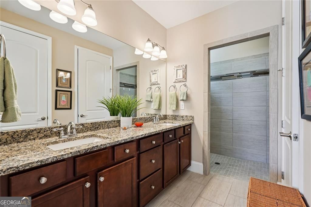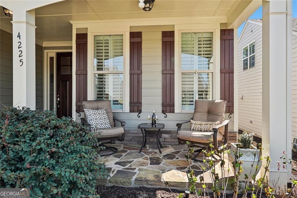 Come live your best life in this well-crafted home offering the perfect blend of comfort, style, and value in a thoughtfully designed active adult community. This inviting home offers a "like-new" feel without the new construction price tag. Meticulously maintained, your new home features an open-concept layout with soaring 9'+ ceilings and a seamless flow between living, dining, and kitchen spaces. The main-level primary suite offers convenience and comfort, complete with a spacious walk-in closet and a large roll-in shower designed for accessibility and ease of use. A secondary bedroom on the main level provides flexibility for guests, a home office, or den. An additional upstairs bedroom or bonus space includes a surprising amount of storage offering even more versatility. The kitchen is both functional and inviting, with a large island, double ovens, gas stove, and featuring a farmhouse sink overlooking the private rear covered patio. Step outside to enjoy custom flagstone patios in both the front and back-perfect for relaxing mornings on the north-facing front porch or unwinding in the peaceful, extended private backyard. Enjoy the flexibility of allowing the HOA to manage the landscaping, or if you have a green thumb and prefer to dig in the dirt, you have a space to create your own masterpiece. Residents enjoy access to beautifully maintained community amenities, including a clubhouse, fitness center, pool, game room, fire pit, dog run, and sidewalks with lighted streets-ideal for an active and connected lifestyle. Conveniently located just minutes from the Bethelview Trailhead of the Big Creek Greenway, approximately 3.5 miles to The Collection at Forsyth for shopping and dining, and with easy access to GA-400. Nearby everyday conveniences include grocery stores, dining, banking, and pharmacy services, with Northside Hospital Forsyth just a short drive away. Downtown Cumming is also within easy reach, offering additional local charm and amenities. This is a rare opportunity to enjoy low-maintenance living in a desirable location with exceptional value.