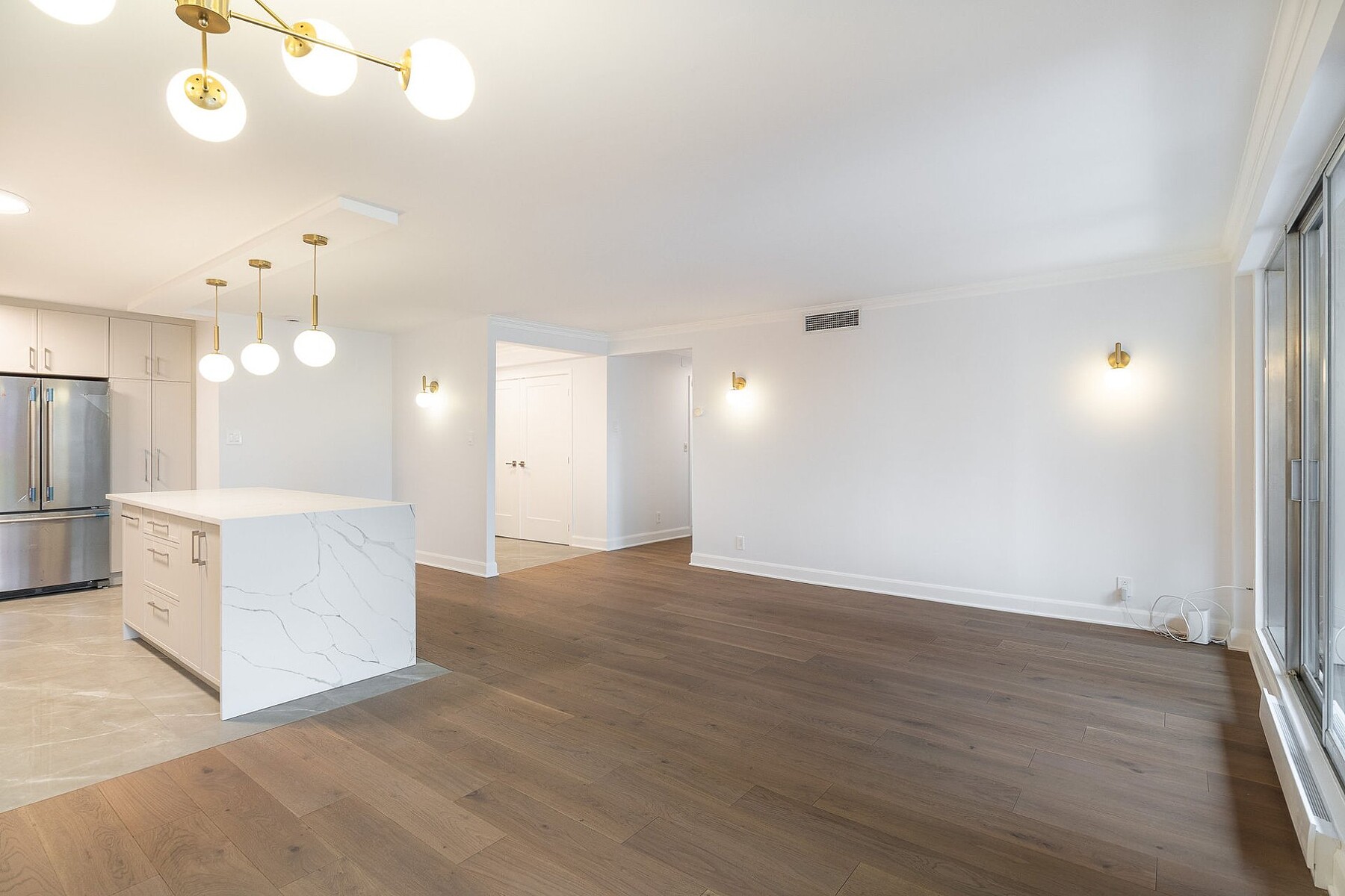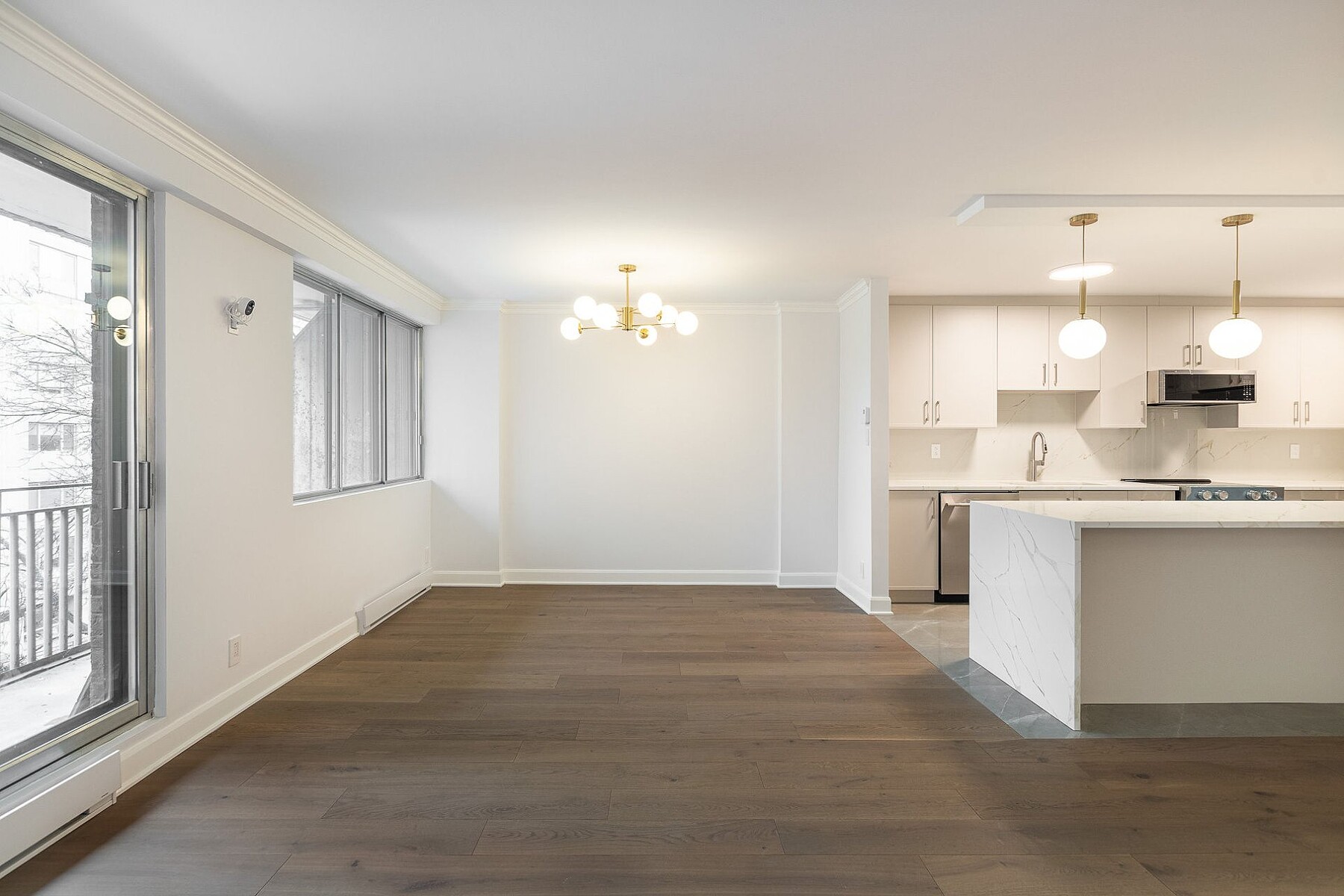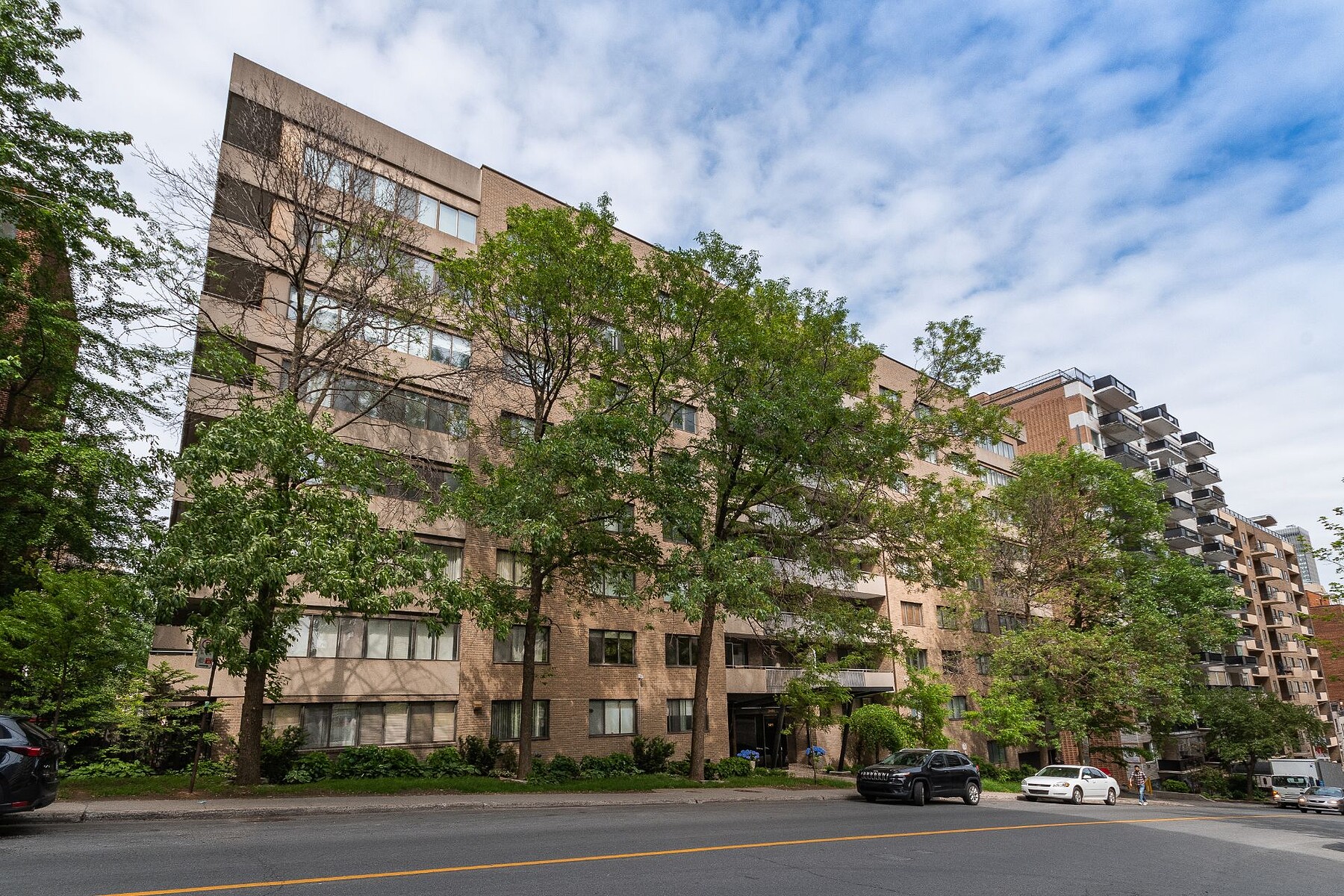 Living in the Golden Square Mile means embracing refined urban luxury. Le Drummond du Haut is ideally located steps from downtown's best dining, shopping, and services. Fully renovated, Suite 508 features six new appliances, a spacious living and dining area, and a gourmet kitchen with quartz countertops and a large island. The primary bedroom includes a walk-in closet and ensuite, complemented by a second bedroom, guest bathroom, and private balcony. Bright southwest exposure. Close to universities, Mount Royal, metro stations, and boutiques. Building amenities include heated garage, security, rooftop pool, and terrace.