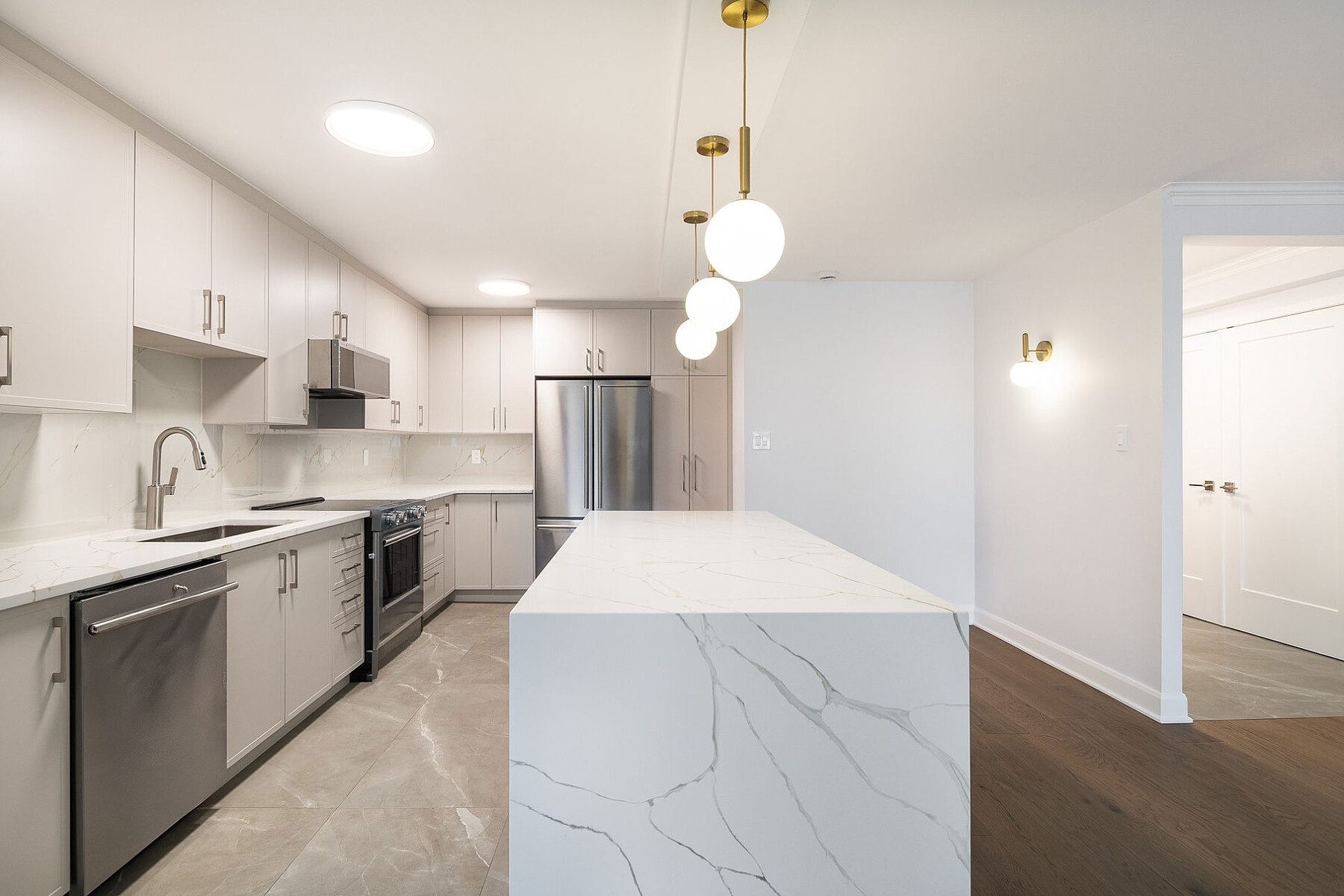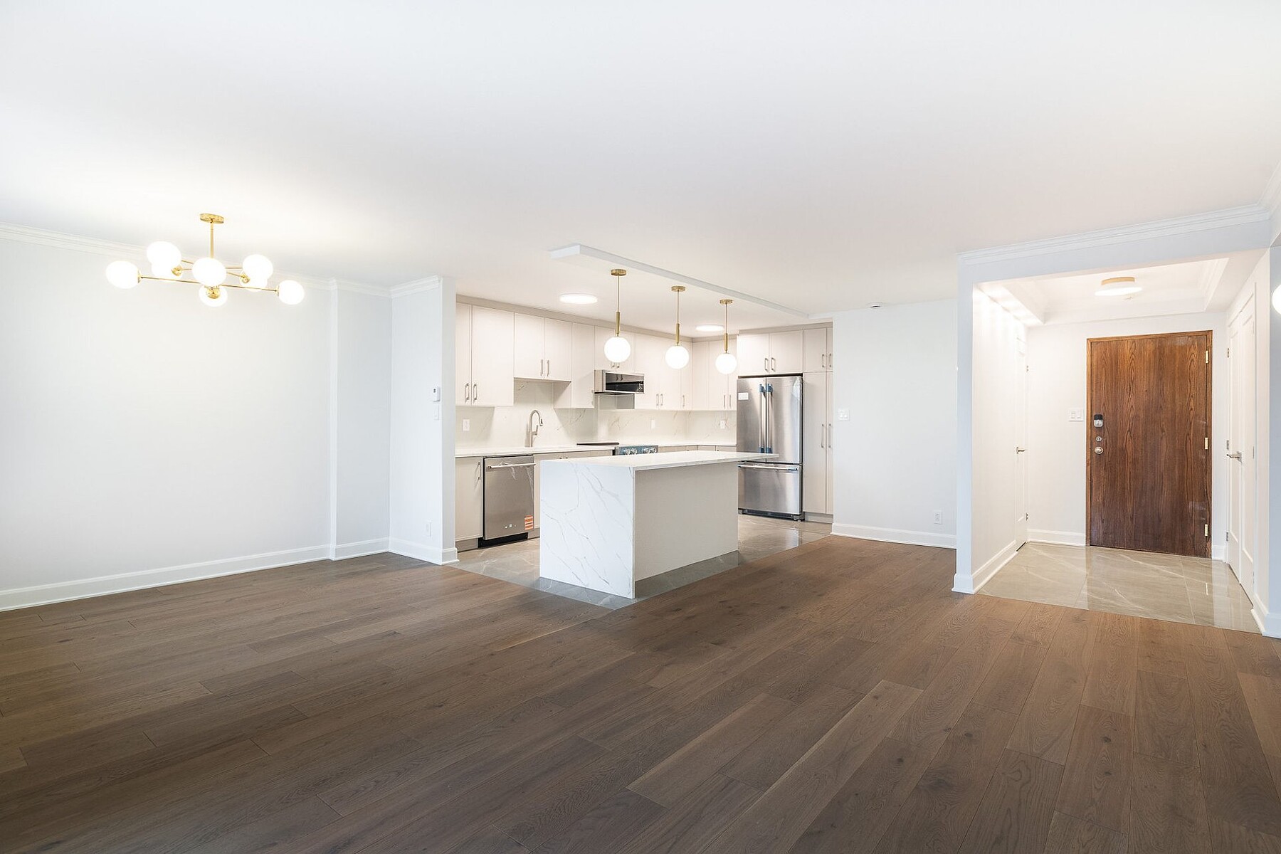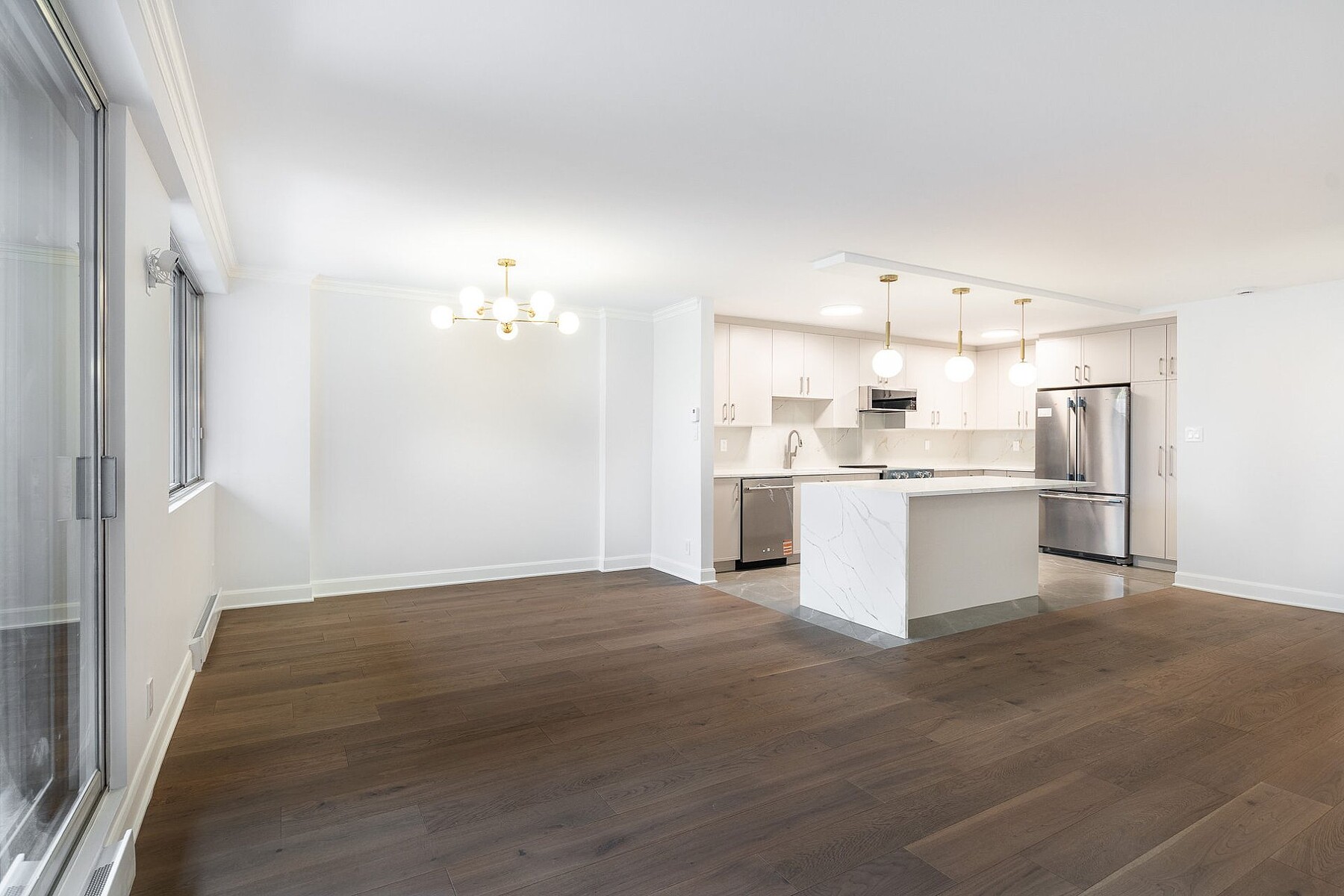 Living in the Golden Square Mile means embracing refined urban luxury. Le Drummond du Haut is ideally located steps from downtown's best dining, shopping, and services. Fully renovated, Suite 508 features six new appliances, a spacious living and dining area, and a gourmet kitchen with quartz countertops and a large island. The primary bedroom includes a walk-in closet and ensuite, complemented by a second bedroom, guest bathroom, and private balcony. Bright southwest exposure. Close to universities, Mount Royal, metro stations, and boutiques. Building amenities include heated garage, security, rooftop pool, and terrace.