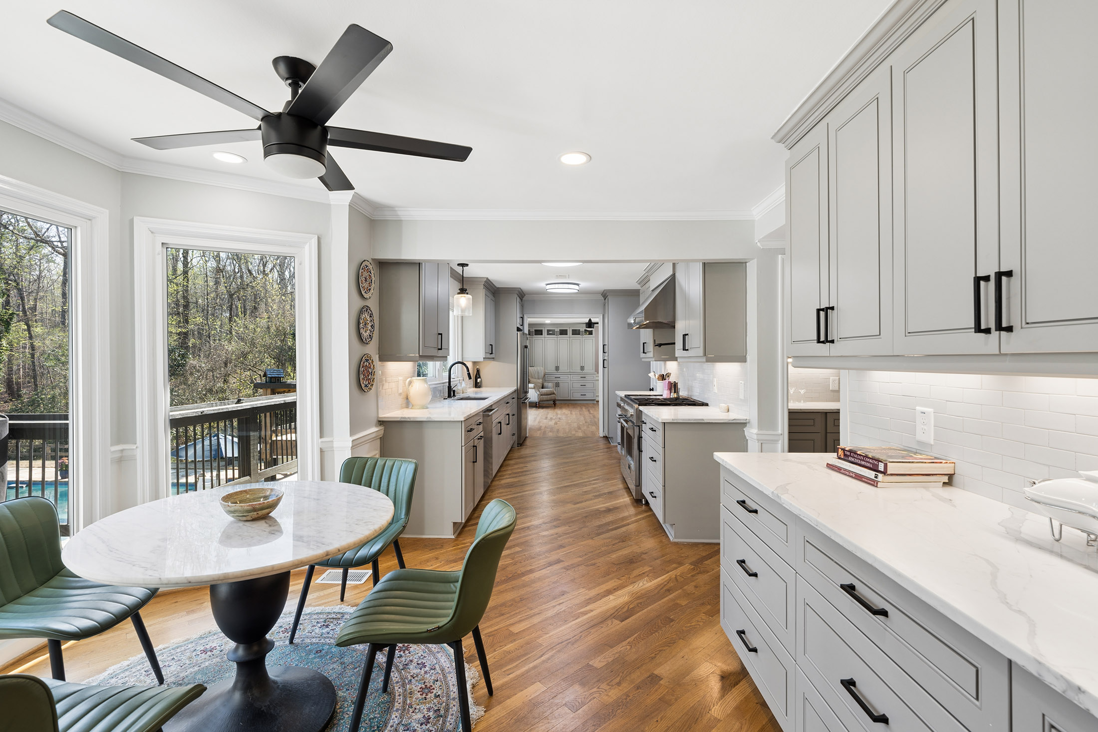 Discover a stunning residence in the sought-after Rivergate community, set on a private 1.5+/- acre lot with a level, resort-style backyard and sparkling pool. Thoughtfully updated, the home features over $100,000 in recent improvements completed within the past month, including fully renovated bathrooms, refinished hardwood floors, new terrace-level flooring, fresh interior paint, a newly added steam room, and extensive pool enhancements. Close to half a million in improvements since 2022 including new roof/gutters, new driveway, new HVAC, new plumbing throughout, and so much more. A full list of upgrades available. The main level offers a warm and inviting layout with multiple living spaces, including a cozy office or flex room and a family room anchored by a classic wood-burning fireplace. The flow continues seamlessly from the living room to a sitting area and into an expansive dining room, all leading to a beautifully reimagined kitchen. Designed for both style and function, the kitchen showcases stainless steel appliances, quartz countertops, and a striking 48-inch Fulgor Italian double oven with six-plus burners as its centerpiece. The fully finished terrace level expands the home’s versatility, featuring three daylight bedrooms, a comfortable living or media room with backyard views, and a separate kitchen and laundry area—ideal for use as a pool house, guest suite, in-law space, or private office. Step outside to covered stone patios and outdoor dining areas that enhance the indoor-outdoor lifestyle. The backyard serves as a true private retreat, complete with a PebbleTec pool and attached spa, highlighted by a new gas water heater and updated tile surround. A spacious, grassy lawn provides ample room for entertaining, while the screened porch and large deck offer a seamless transition from indoor living to outdoor enjoyment. Three additional outbuildings at the rear of the property provide endless possibilities, whether as a cabana, gym, or creative space. Additional features include a side-entry, two-car garage for convenience and functionality. Ideally located, the home offers easy access to shopping, dining, top-rated schools, Dunwoody Country Club, and major highways—all just minutes away.