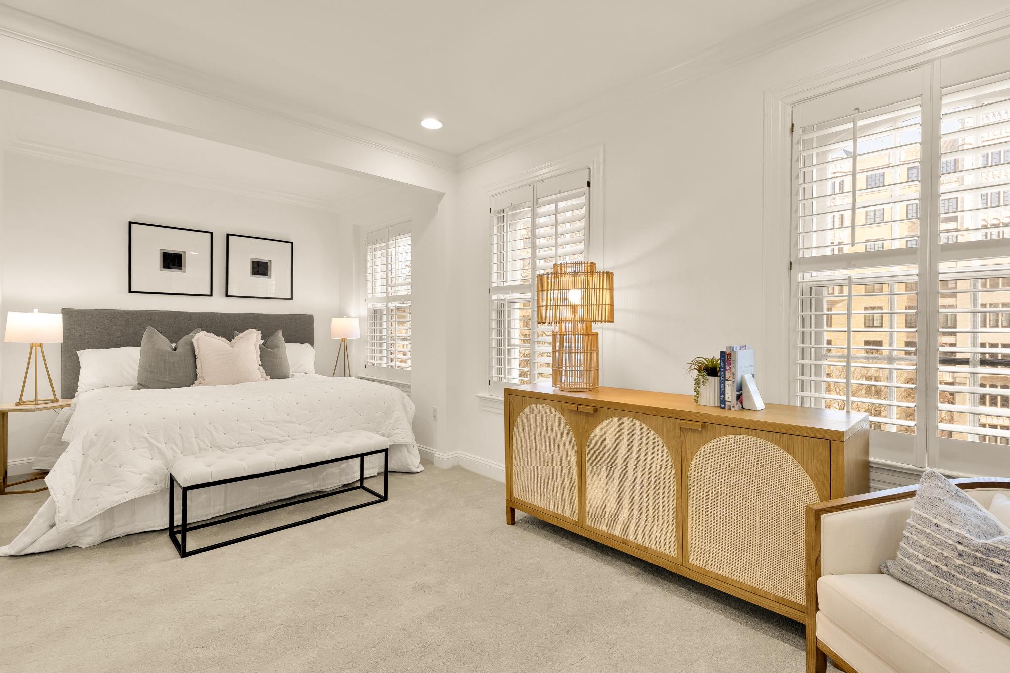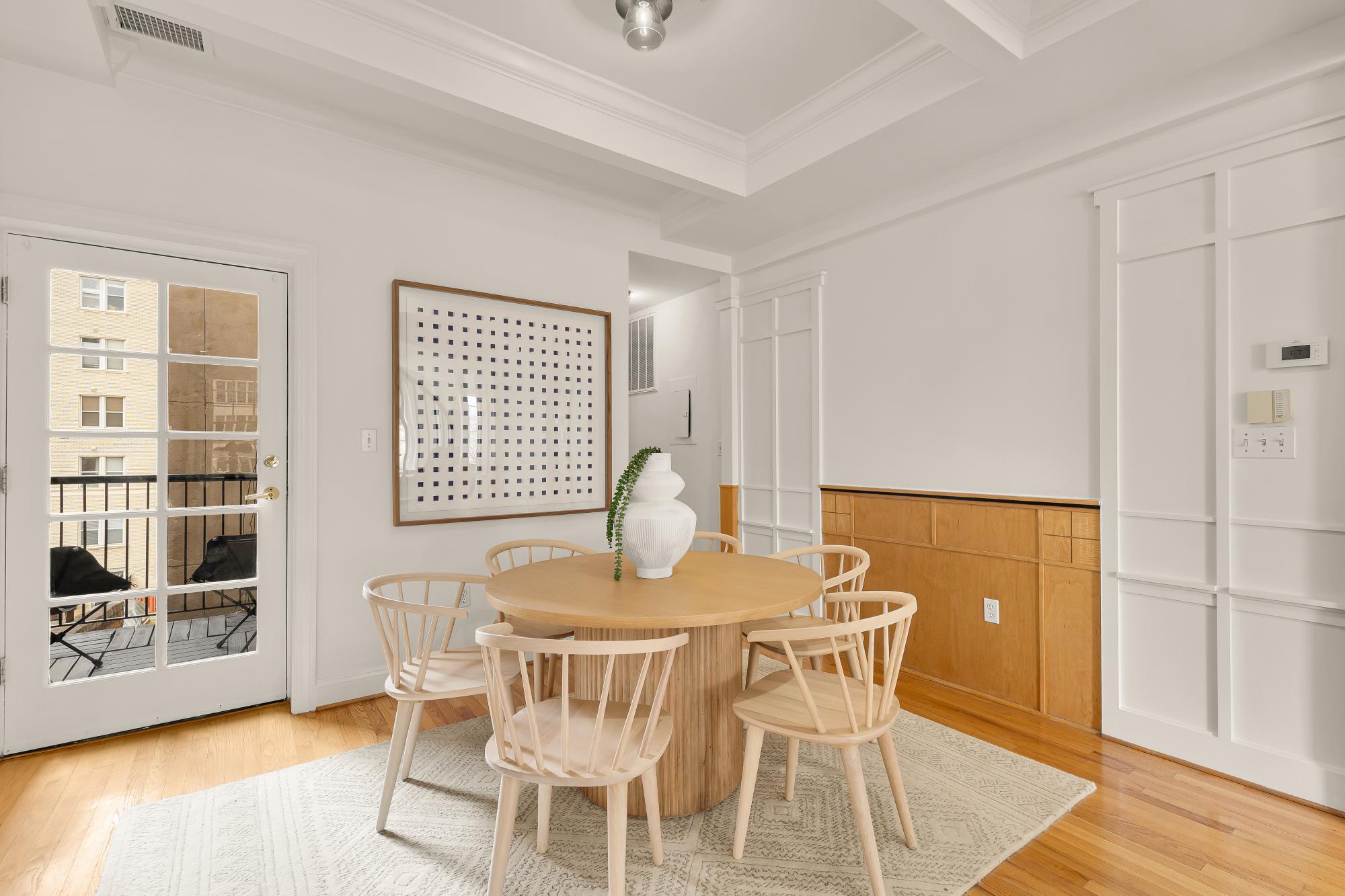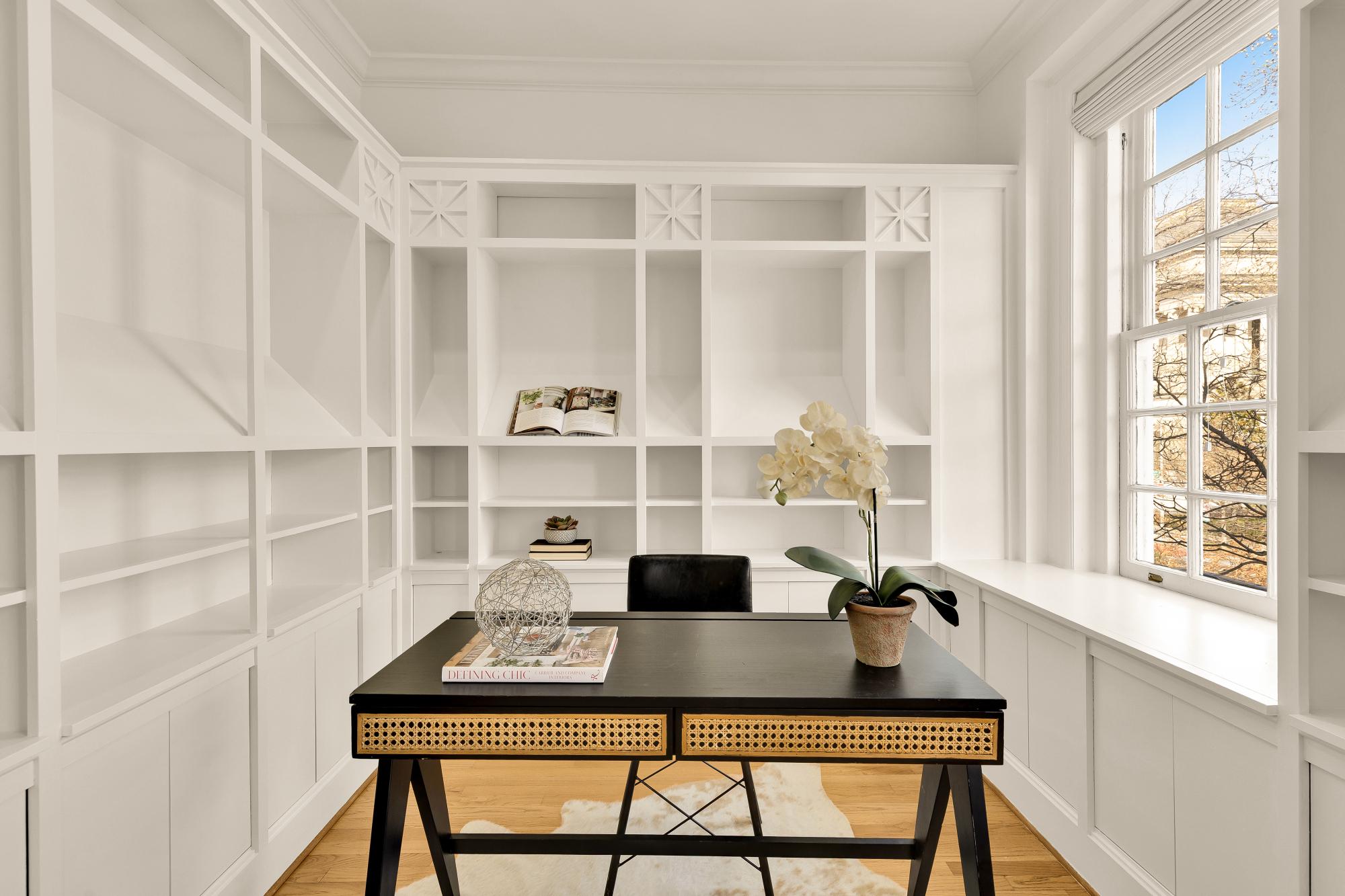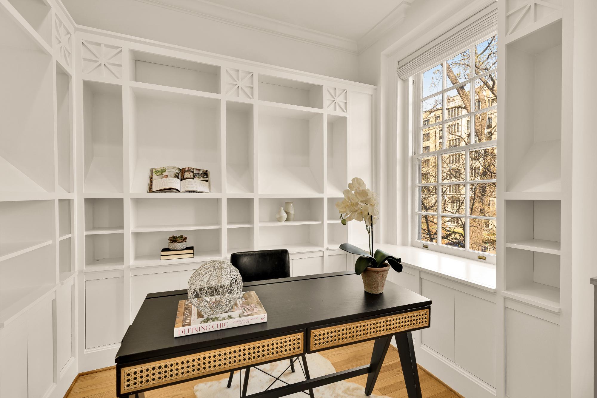 Elegant in scale and rich in volume! An impressive two-level residence at The Madeleine blends historic character with thoughtful modern updates in the heart of Dupont Circle. Originally part of the distinguished O’Donohue House, this boutique Victorian building offers timeless architecture with refined contemporary living and spectacular views. Unit 5 spans almost 1,400 square feet across two levels, with 2 bedrooms, 2.5 bathrooms, and a beautifully flowing layout ideal for both daily living and entertaining. The main level offers dramatic ceilings, expansive living and dining spaces, abundant natural light, and a kitchen with quartz countertops, under-cabinet lighting, and newer appliances. A versatile office off the living room with built-ins around. A stylish powder room and balcony complete the main level. Upstairs, both bedrooms offer ensuite bath access, including a spacious primary suite with generous closet space. The second bedroom is well-sized and positioned for privacy, while the upper level also includes in-unit laundry. Architectural details including fireplaces, original trim, and oversized windows add warmth and distinction throughout. Recent improvements include new flooring, a new banister, fresh paint, updated recessed lighting. The roof was replaced in 2023, and a newer HVAC system. The building is set behind a landscaped front garden, creating a welcoming approach, adding to its overall charm. Perfectly positioned between Dupont Circle and Logan Circle, this exceptional location is just moments from Meridian Hill Park, Mitchell Park, Rock Creek Park, Whole Foods, Trader Joe’s, Le Diplomate, Barcelona, Hank’s Oyster Bar, and the Dupont Circle Metro. Monthly garage parking is available nearby at Colonial Garage.