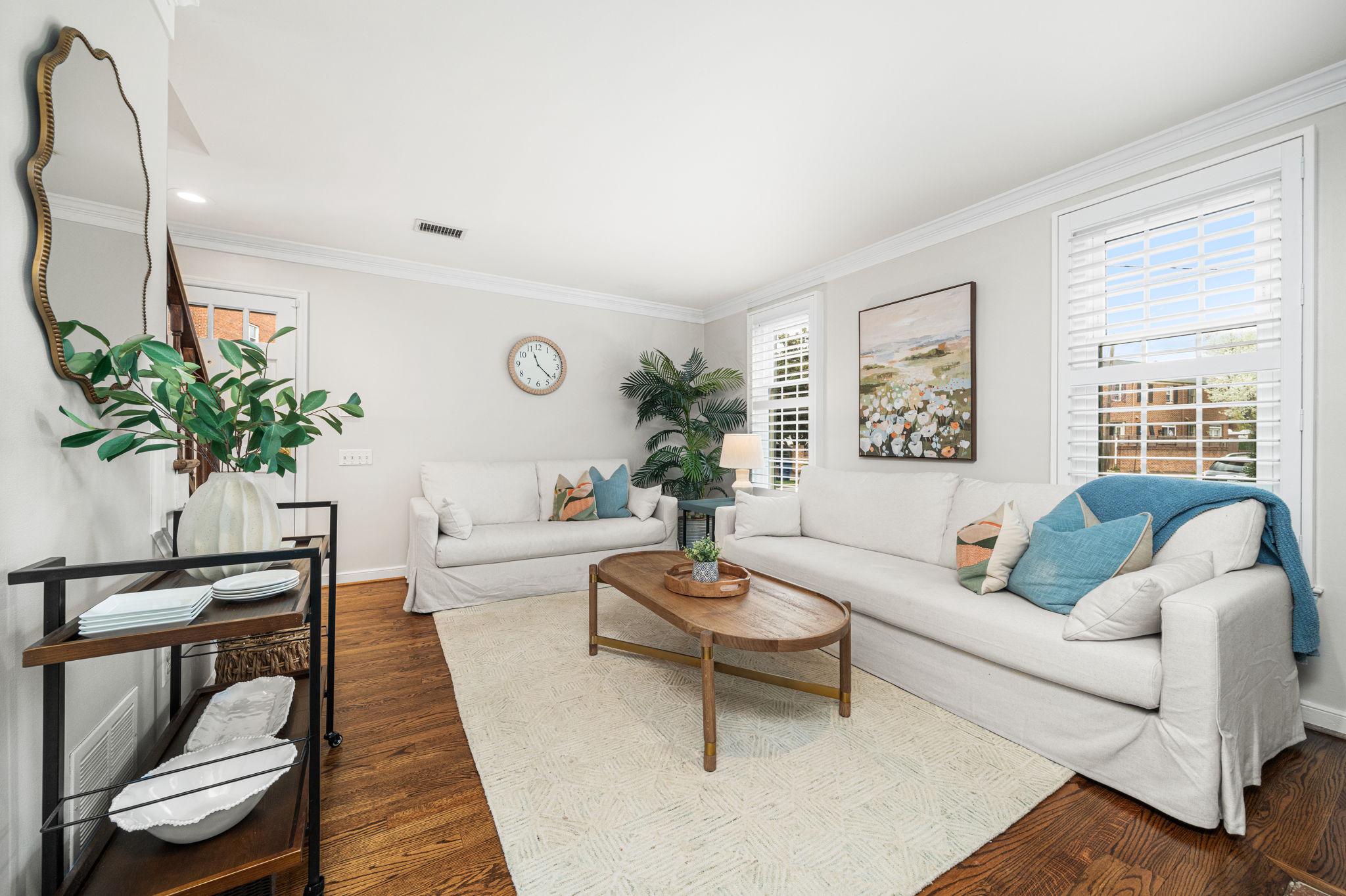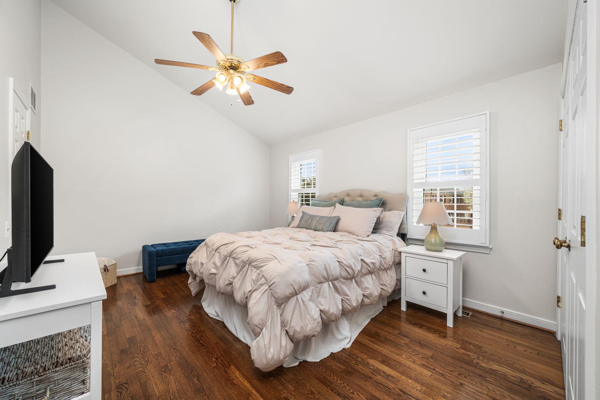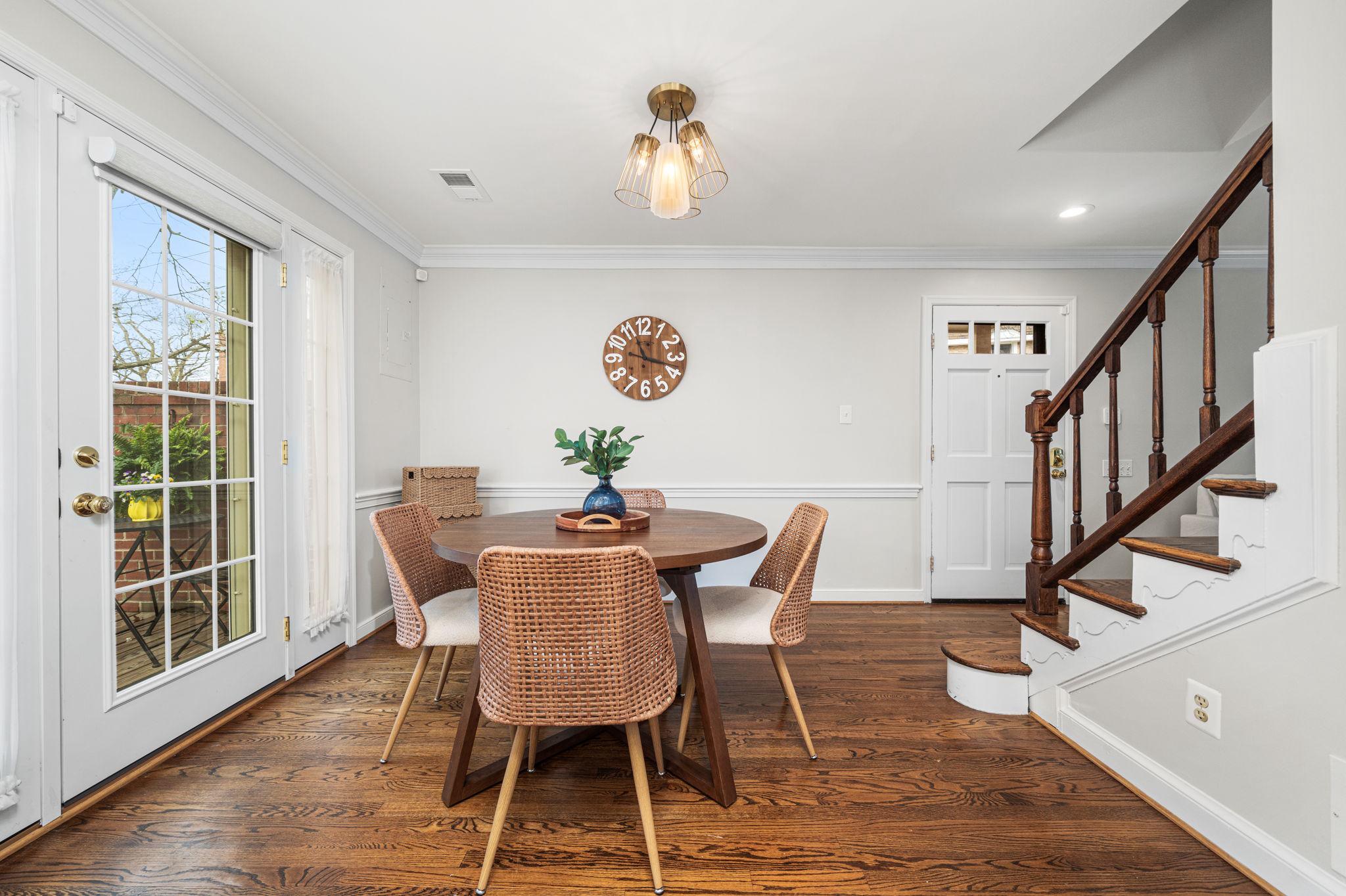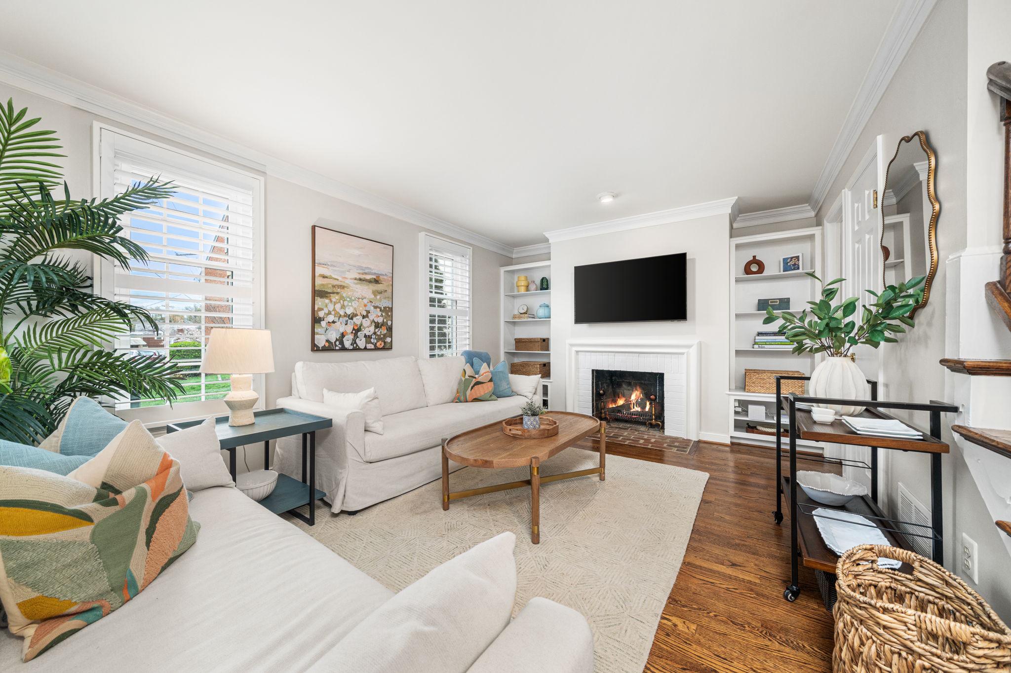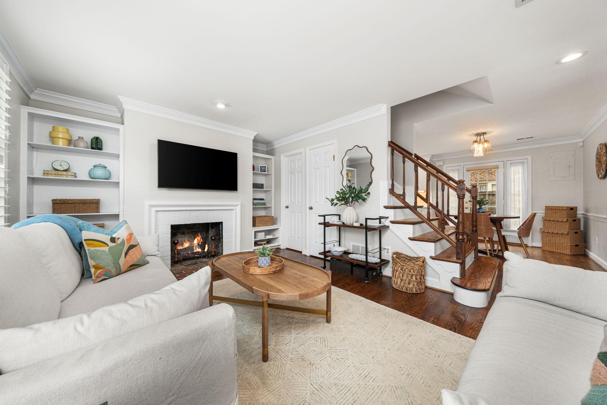 Classic all-brick end-unit townhome in North Old Town blending timeless charm with modern updates, featuring windows on three sides that fill this rare home with abundant natural light!! A private, fully fenced outdoor living space with rear gate access creates an inviting outdoor retreat, while two off-street parking spaces in the community lot add everyday convenience. Inside, hardwood floors run throughout a beautifully updated interior featuring crown molding, detailed trim, plantation shutters, and all-new light fixtures. The living room is both stylish and functional, anchored by custom built-in shelving and a cozy wood burning fireplace. The fully renovated and opened kitchen (2024) is a standout, designed for both everyday living and entertaining. It showcases white shaker cabinetry with updated hardware, quartz countertops, a subway tile backsplash, and stainless steel appliances. An under mount sink with a gooseneck faucet completes the space with a clean, modern touch. A main level powder room and coat closet complete the main level. Upstairs, the spacious primary suite features a vaulted ceiling and custom built-out closets by Capitol Closet Design, thoughtfully connected to the secondary bedroom—ideal for use as a dressing room, nursery, or home office. A washer and dryer on the upper level add to the home’s convenience. Additional highlights include double-pane windows throughout and a pull-down attic with floored storage. Roof (estimated age is 3 years), Hot water heater (2020), HVAC system (2012). Take advantage of this unbeatable location: walk or bike to the Potomac River and Bike Trail, or access the Braddock Road Metro with ease (less than 1 mile away). Just a short stroll away, you’ll find Old Town’s vibrant dining, shops, nightlife, and neighborhood favorites like Rustico, Buzz Bakery, Pupatella and Slater’s Market. Easy commuting to Arlington & DC and just 2.3 miles to National Airport. Low HOA fee = $836/quarter (or $279/month). With timeless character, thoughtful upgrades, and an unbeatable Old Town location, this light-filled end-unit is a rare opportunity to enjoy both comfort and convenience!