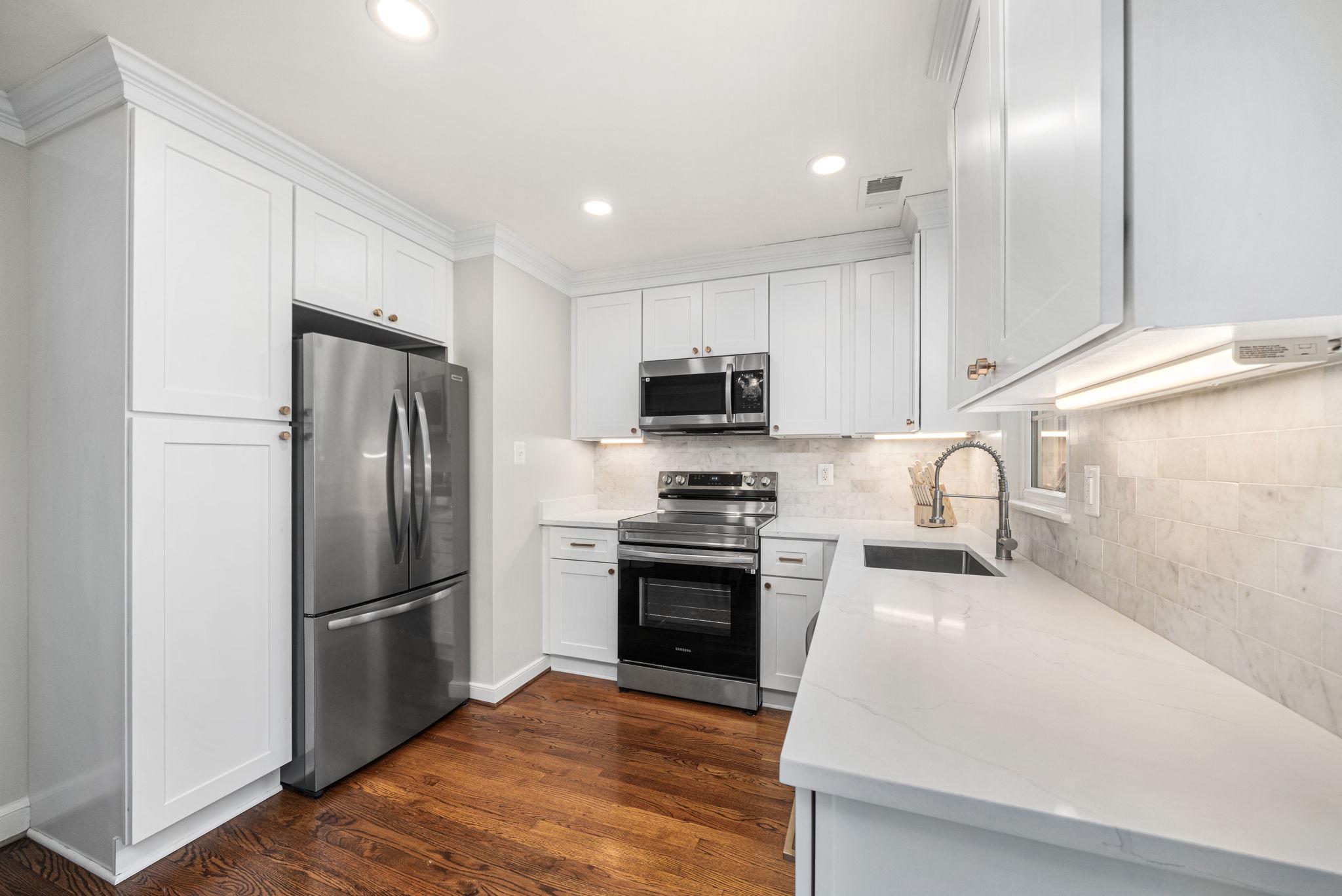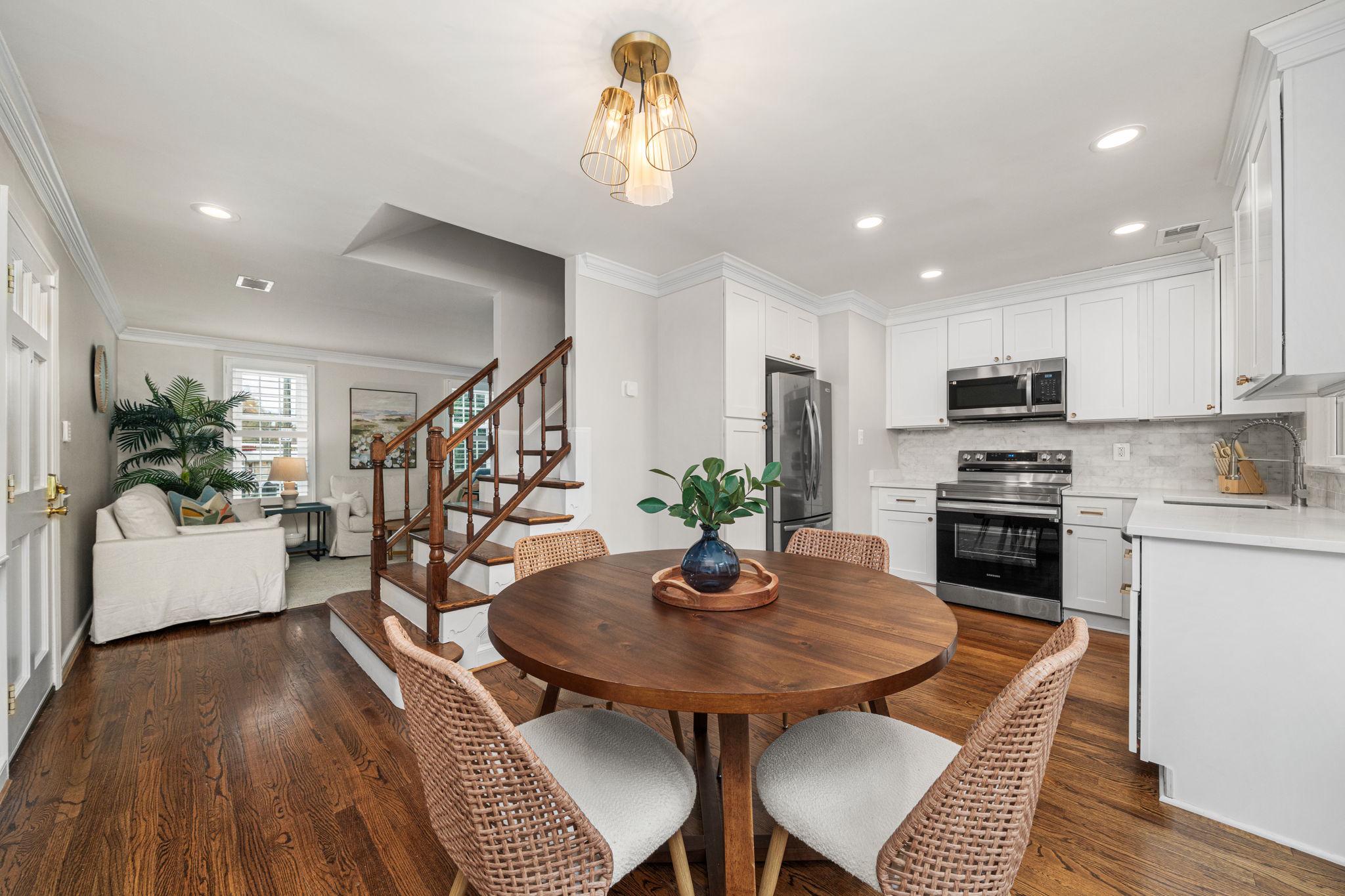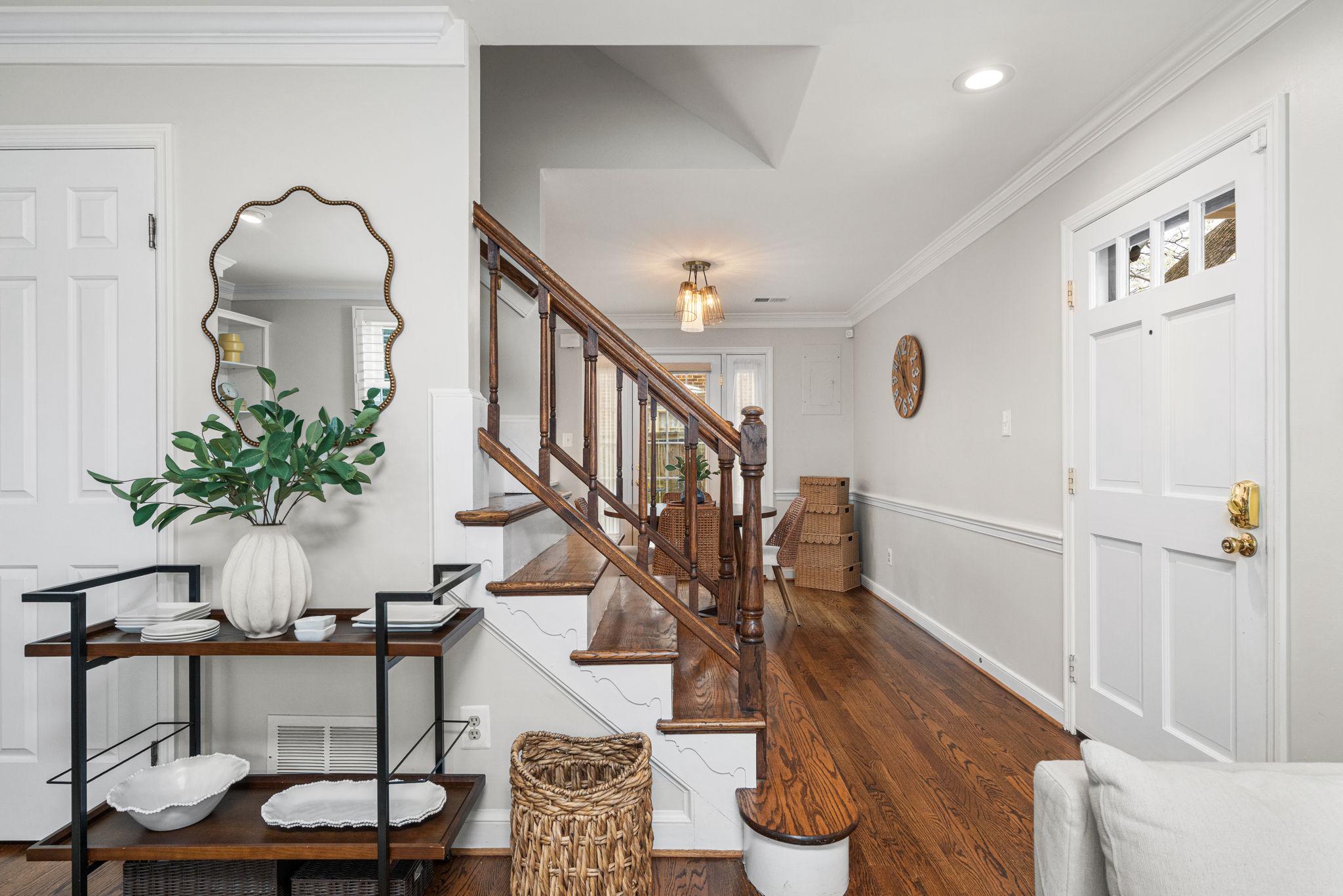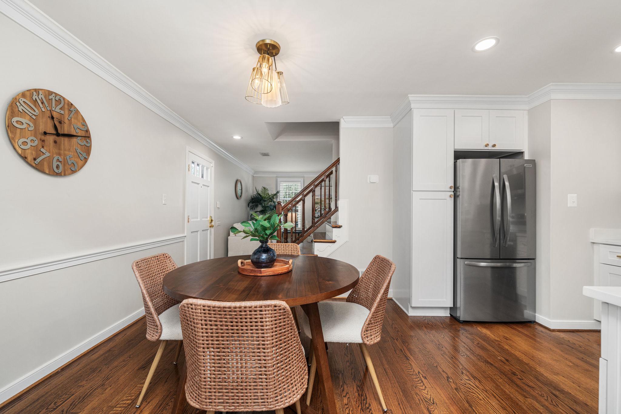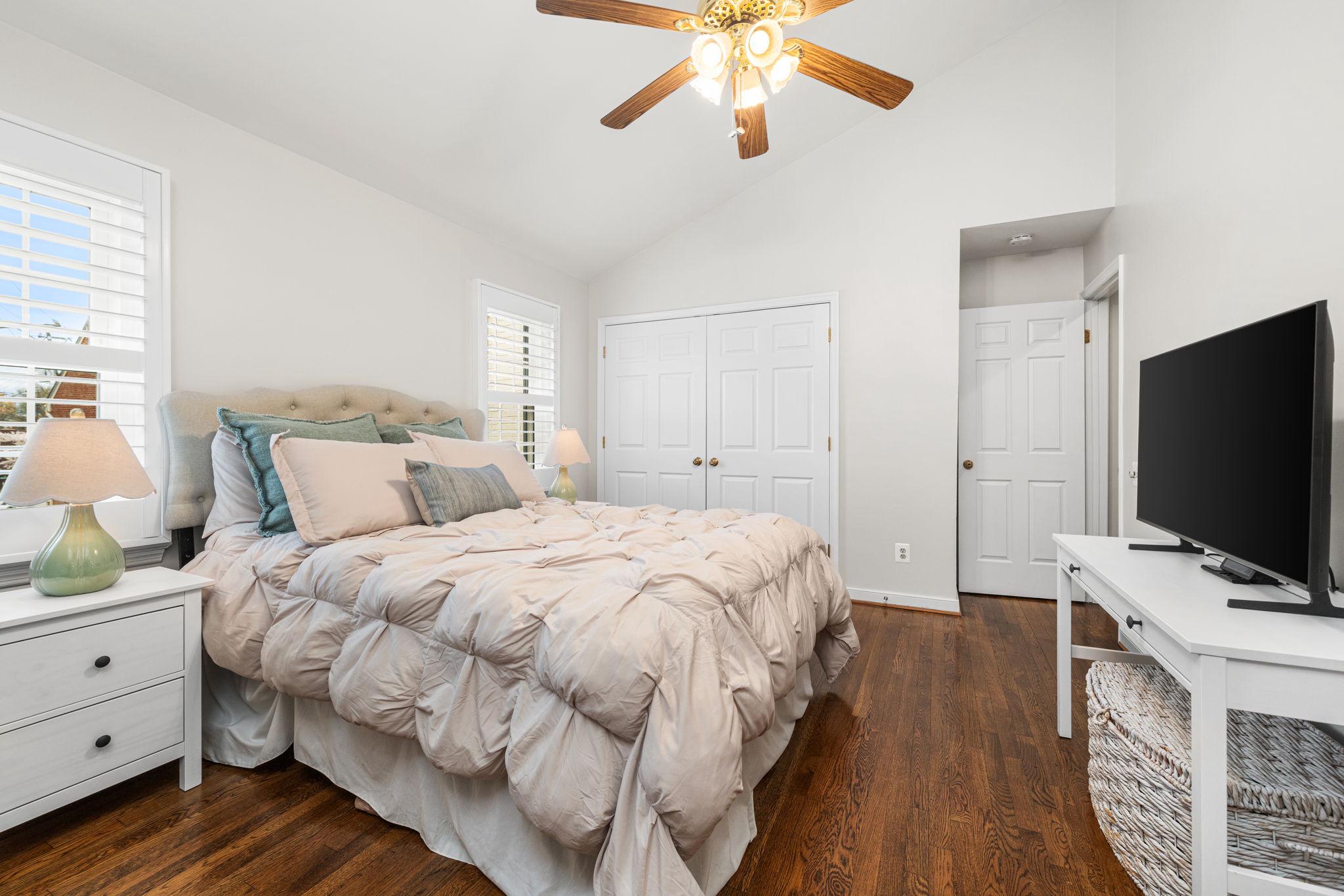 Classic all-brick end-unit townhome in North Old Town blending timeless charm with modern updates, featuring windows on three sides that fill this rare home with abundant natural light!! A private, fully fenced outdoor living space with rear gate access creates an inviting outdoor retreat, while two off-street parking spaces in the community lot add everyday convenience. Inside, hardwood floors run throughout a beautifully updated interior featuring crown molding, detailed trim, plantation shutters, and all-new light fixtures. The living room is both stylish and functional, anchored by custom built-in shelving and a cozy wood burning fireplace. The fully renovated and opened kitchen (2024) is a standout, designed for both everyday living and entertaining. It showcases white shaker cabinetry with updated hardware, quartz countertops, a subway tile backsplash, and stainless steel appliances. An under mount sink with a gooseneck faucet completes the space with a clean, modern touch. A main level powder room and coat closet complete the main level. Upstairs, the spacious primary suite features a vaulted ceiling and custom built-out closets by Capitol Closet Design, thoughtfully connected to the secondary bedroom—ideal for use as a dressing room, nursery, or home office. A washer and dryer on the upper level add to the home’s convenience. Additional highlights include double-pane windows throughout and a pull-down attic with floored storage. Roof (estimated age is 3 years), Hot water heater (2020), HVAC system (2012). Take advantage of this unbeatable location: walk or bike to the Potomac River and Bike Trail, or access the Braddock Road Metro with ease (less than 1 mile away). Just a short stroll away, you’ll find Old Town’s vibrant dining, shops, nightlife, and neighborhood favorites like Rustico, Buzz Bakery, Pupatella and Slater’s Market. Easy commuting to Arlington & DC and just 2.3 miles to National Airport. Low HOA fee = $836/quarter (or $279/month). With timeless character, thoughtful upgrades, and an unbeatable Old Town location, this light-filled end-unit is a rare opportunity to enjoy both comfort and convenience!