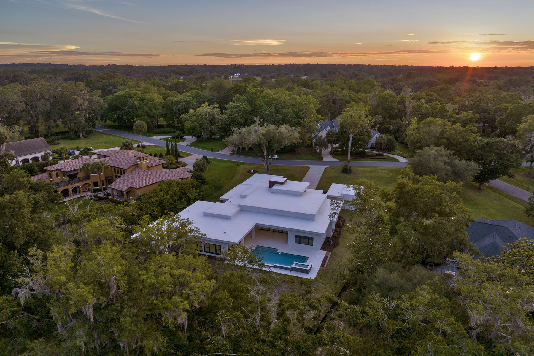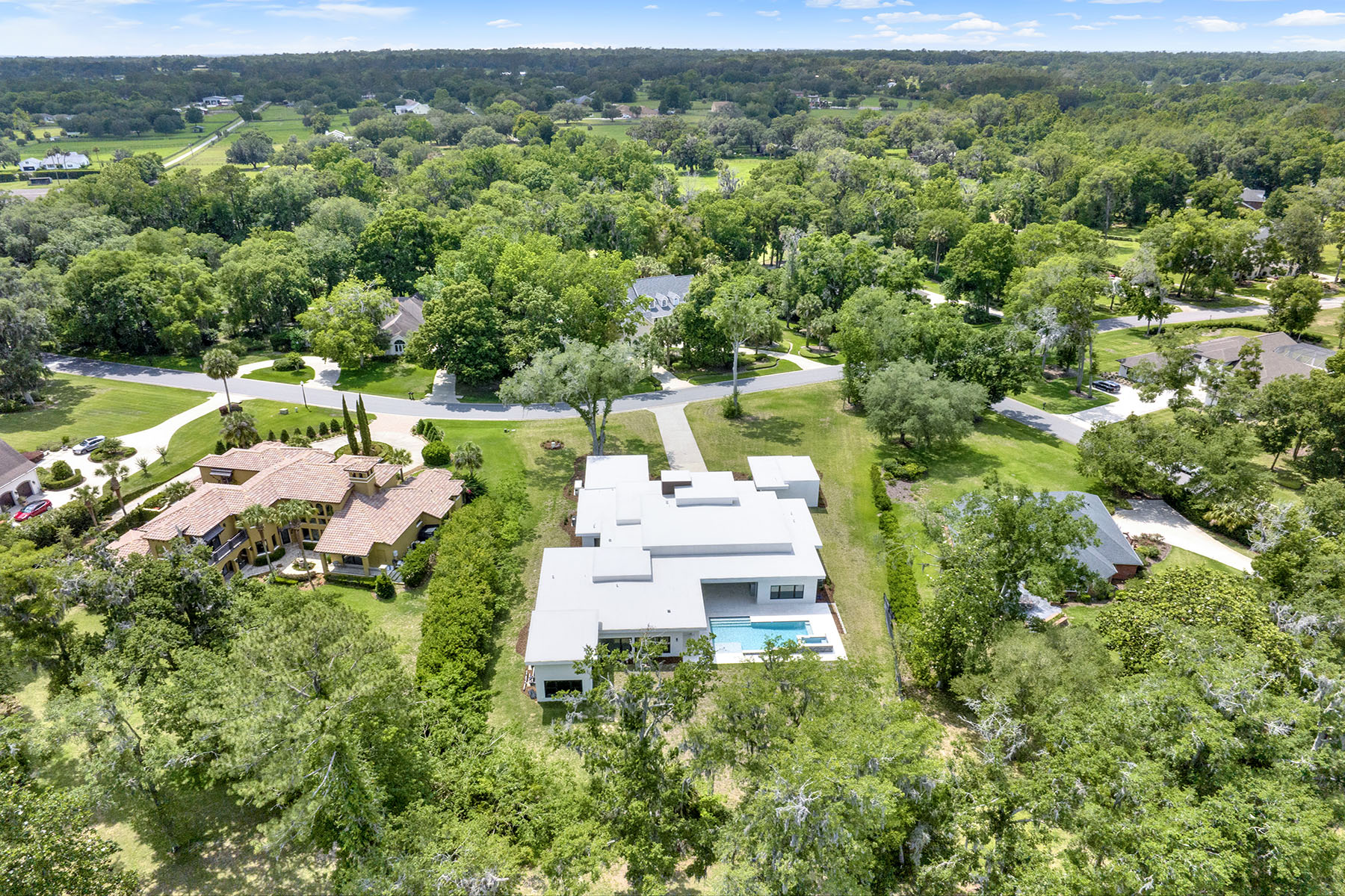 Experience the pinnacle of modern luxury in this extraordinary estate within the prestigious gated community of the Country Club of Ocala. Built in 2024 and never occupied, this architectural masterpiece offers the rare opportunity to own a new luxury residence in one of Ocala's desired golf course communities. Designed with sophistication and comfort in mind, this contemporary five-bedroom, 4.5-bath home showcases sleek architectural lines, expansive living spaces and high-end finishes throughout. A spacious club room provides a setting for entertaining or unwinding in style, while a private home gym supports your wellness routine and a dedicated office offers an ideal space for remote work or quiet study. Over $200,000 was spent on custom Ornare closets that you had to see to believe. The home is thoughtfully equipped with premium upgrades, including a whole-house Generac generator and advanced water treatment system, providing comfort and peace of mind year-round. Beyond the home, residents enjoy the exceptional lifestyle offered by the Country Club of Ocala, featuring a championship 18-hole golf course, resort-style pool, tennis courts and a state-of-the-art fitness center, all within a beautifully maintained gated setting. This masterpiece is move-in ready, a remarkable residence representing a rare blend of modern design, luxury amenities and tranquil Florida living.
