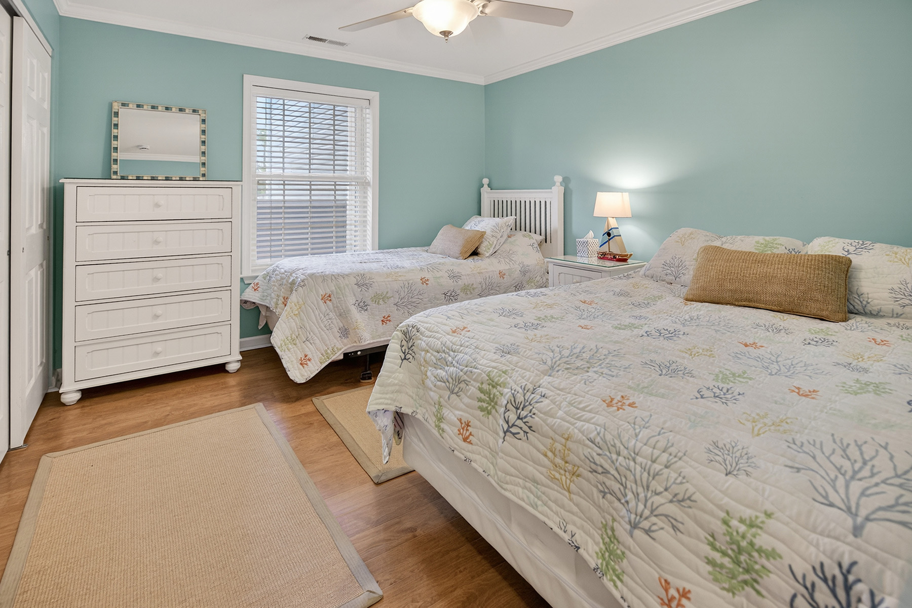 Generously sized bedrooms and well-kept bathrooms create a relaxed beachside atmosphere. Soft coastal tones and natural light throughout the condo enhance the ambiance.
