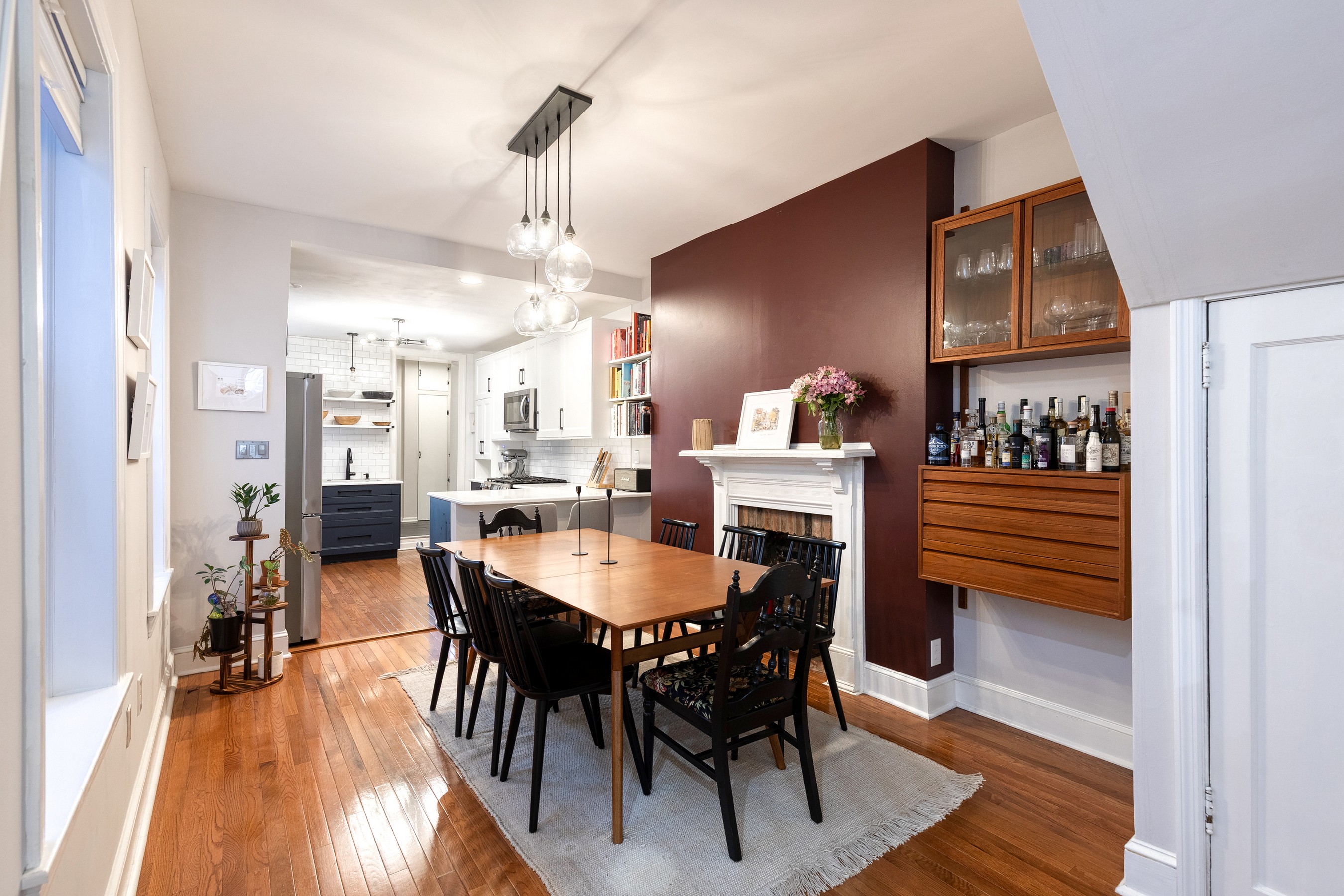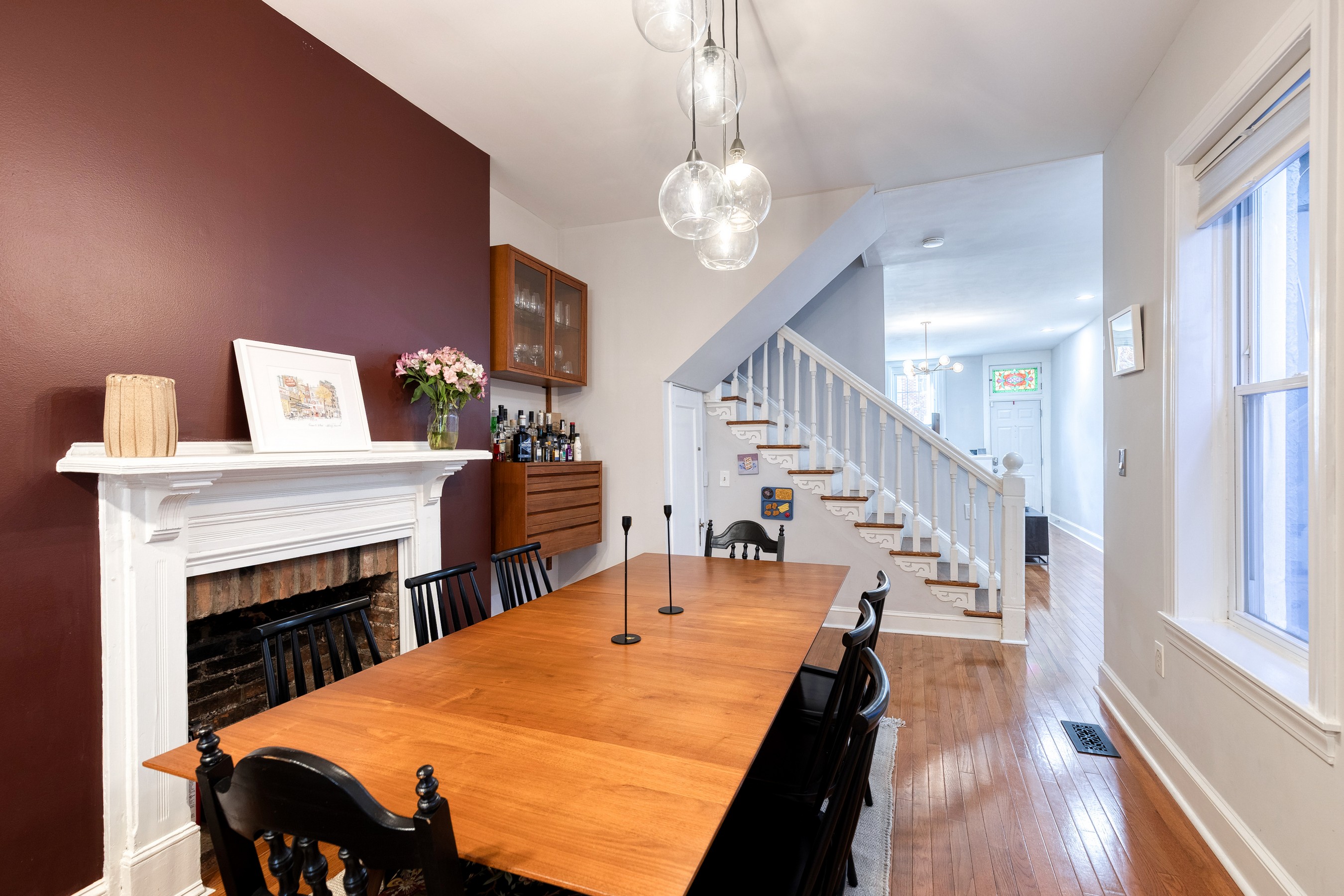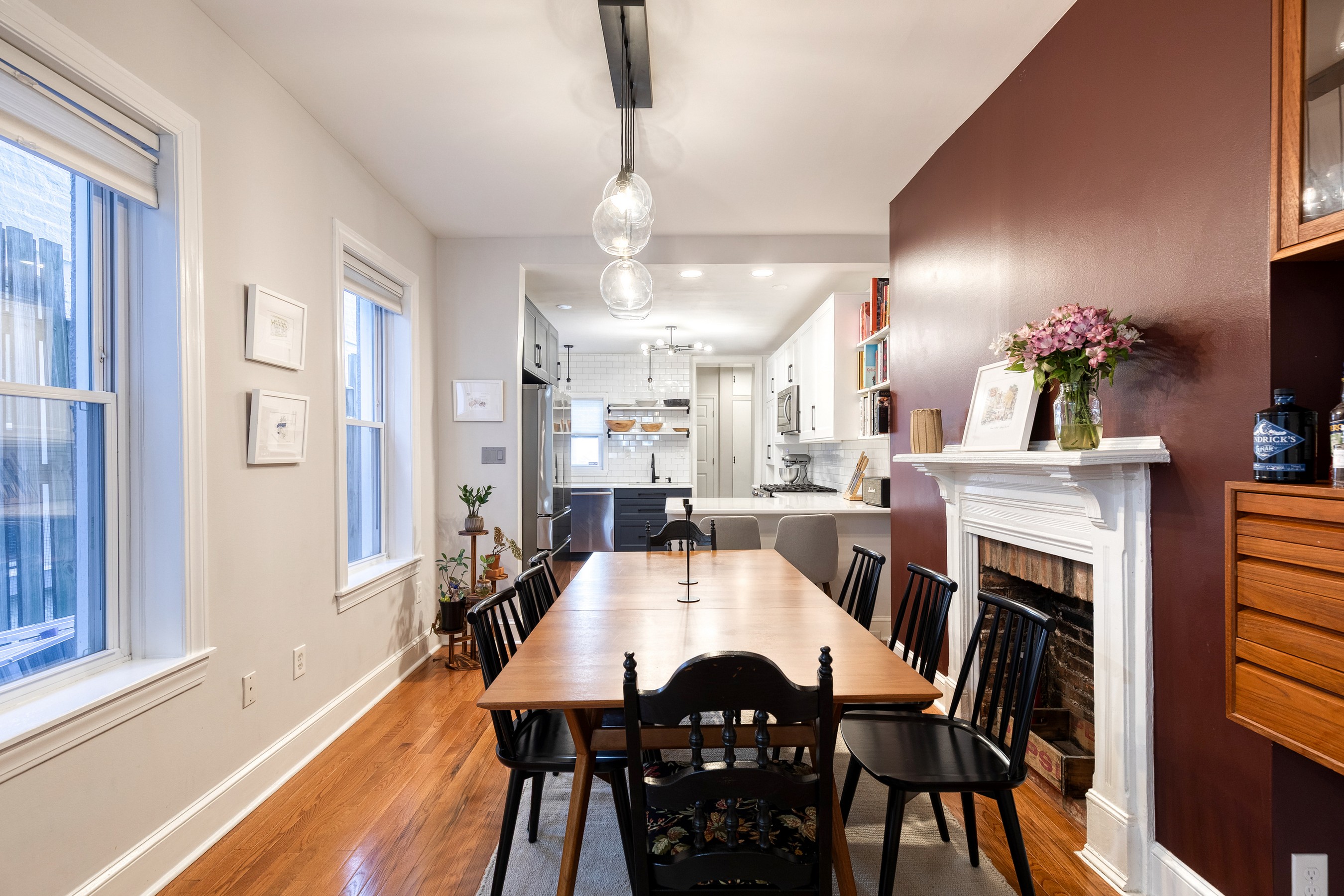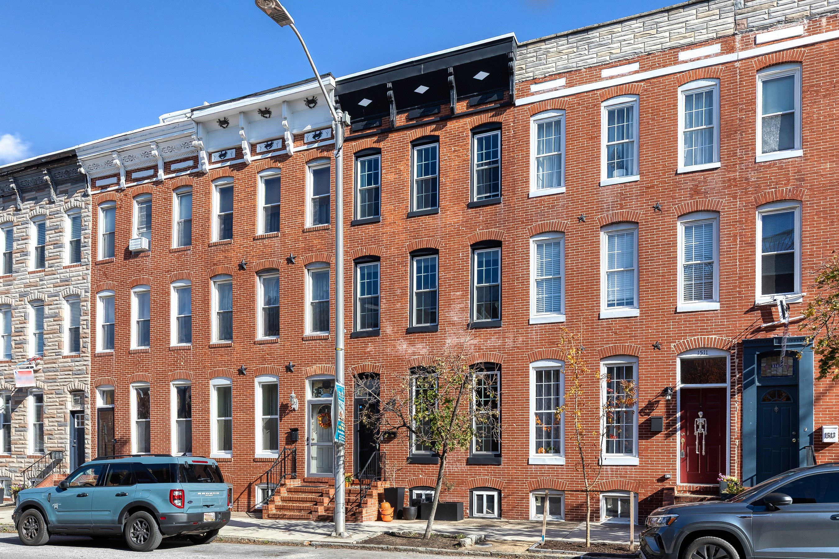 Live your best Federal Hill life in this beautifully updated 3 bedroom, 2.5 bath, almost 2000 square foot home with a private roof deck and an oversized parking pad. Historic charm meets modern style with exposed brick, refinished hardwoods, restored fireplaces, original stained glass, and custom millwork throughout. The main level offers effortless flow, from a bright living room with a working wood fireplace to a spacious dining room and a fully renovated eat-in kitchen with new stainless-steel appliances and ample storage. A chic powder room and new washer/dryer complete the space. Upstairs, you'll find original wide-plank floors, a renovated bath with a gorgeous clawfoot tub, and two generous bedrooms, including a dreamy primary suite with a sitting room and oversized closet. The third-floor suite delivers even more flexibility, plus direct access to the 12' x 20' roof deck with sweeping city views. Major systems have been thoughtfully updated — HVAC, electrical, plumbing, roof, masonry, and cornice work are all complete, along with a new security system already in place. Flooded with natural light and full of stylish touches, this home is just steps from parks, restaurants, shops, and the waterfront - refined, historic, and perfectly located!