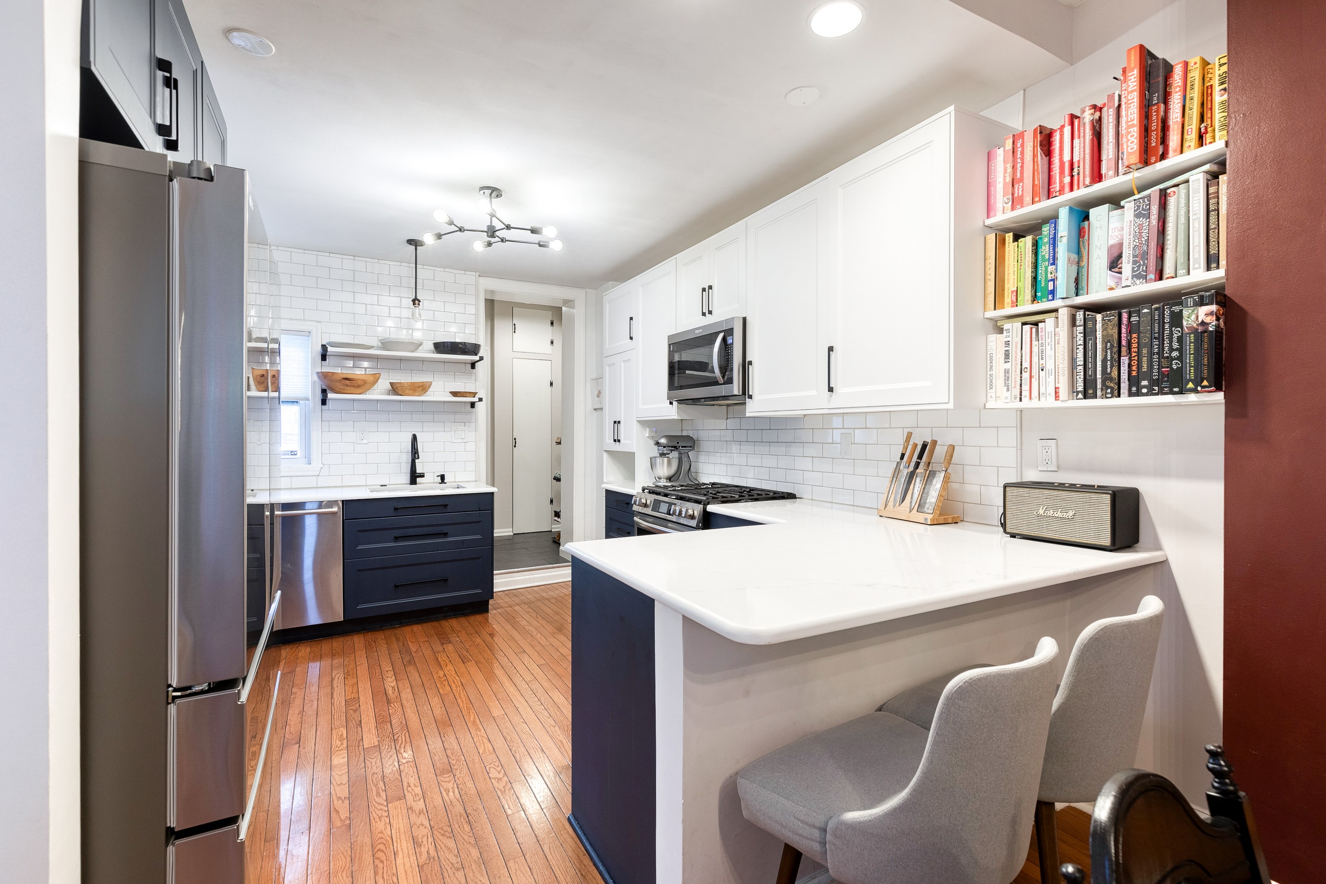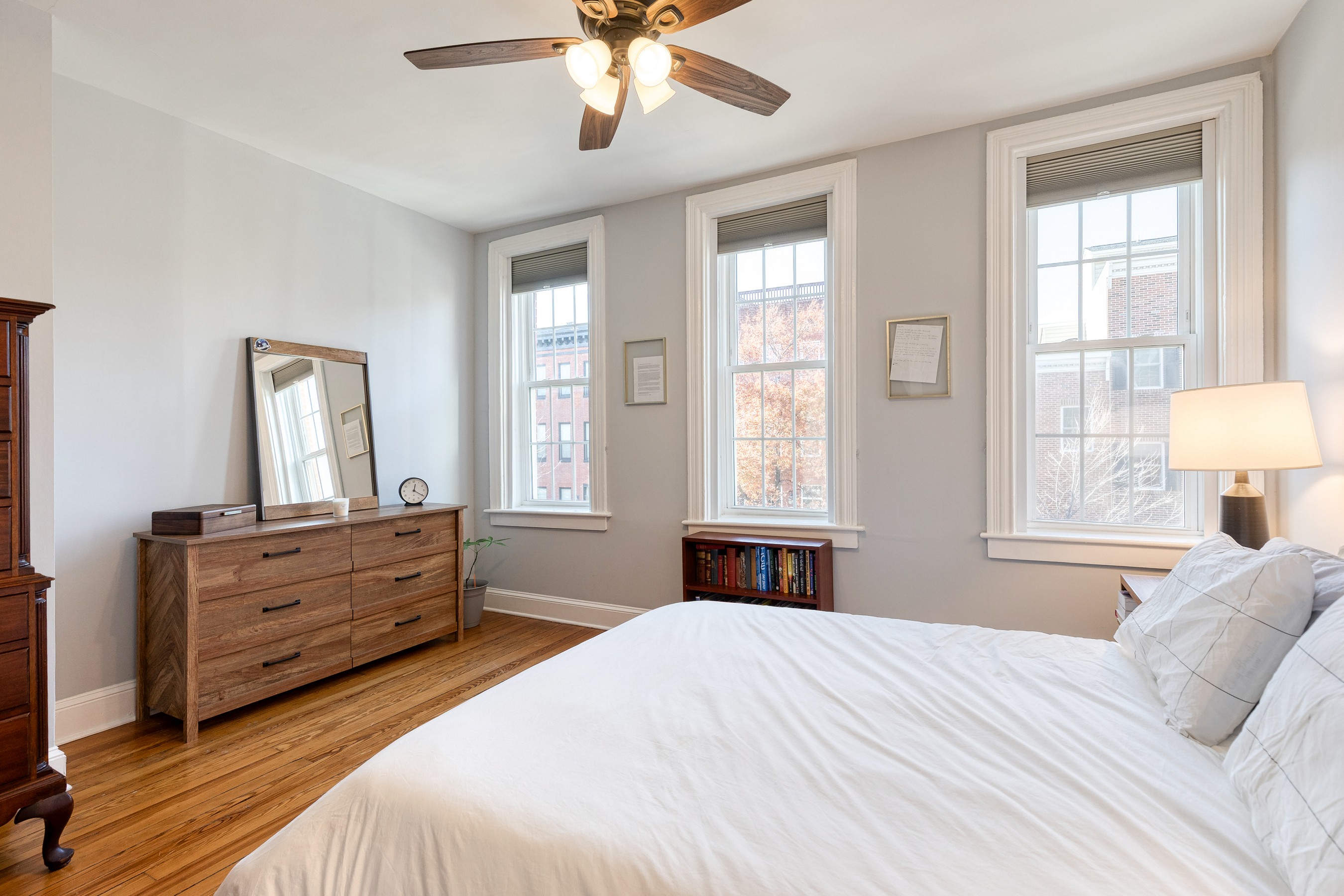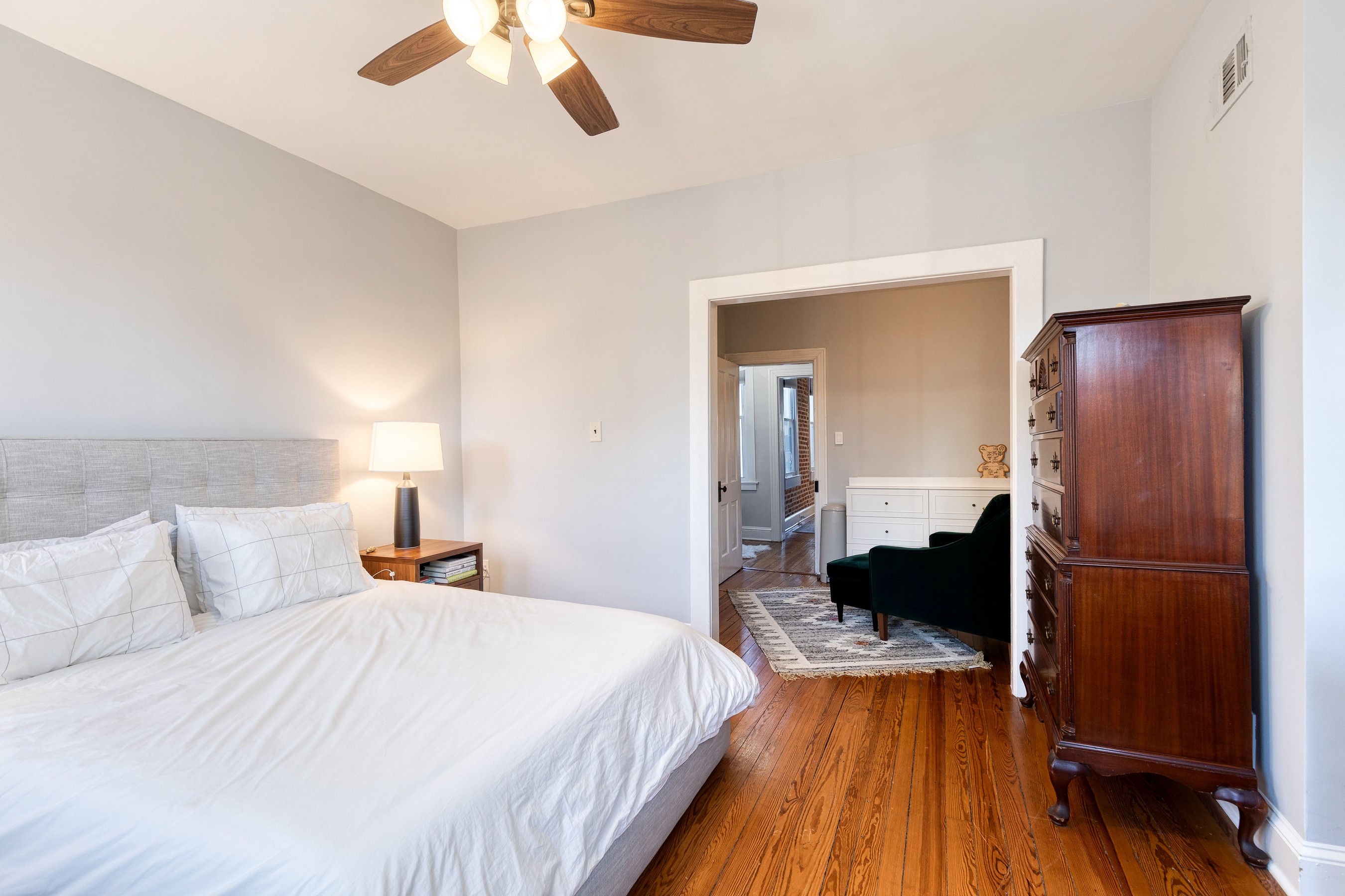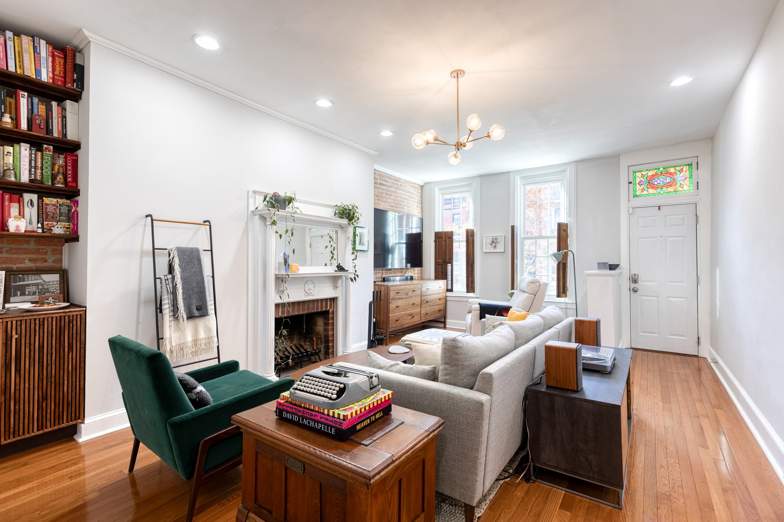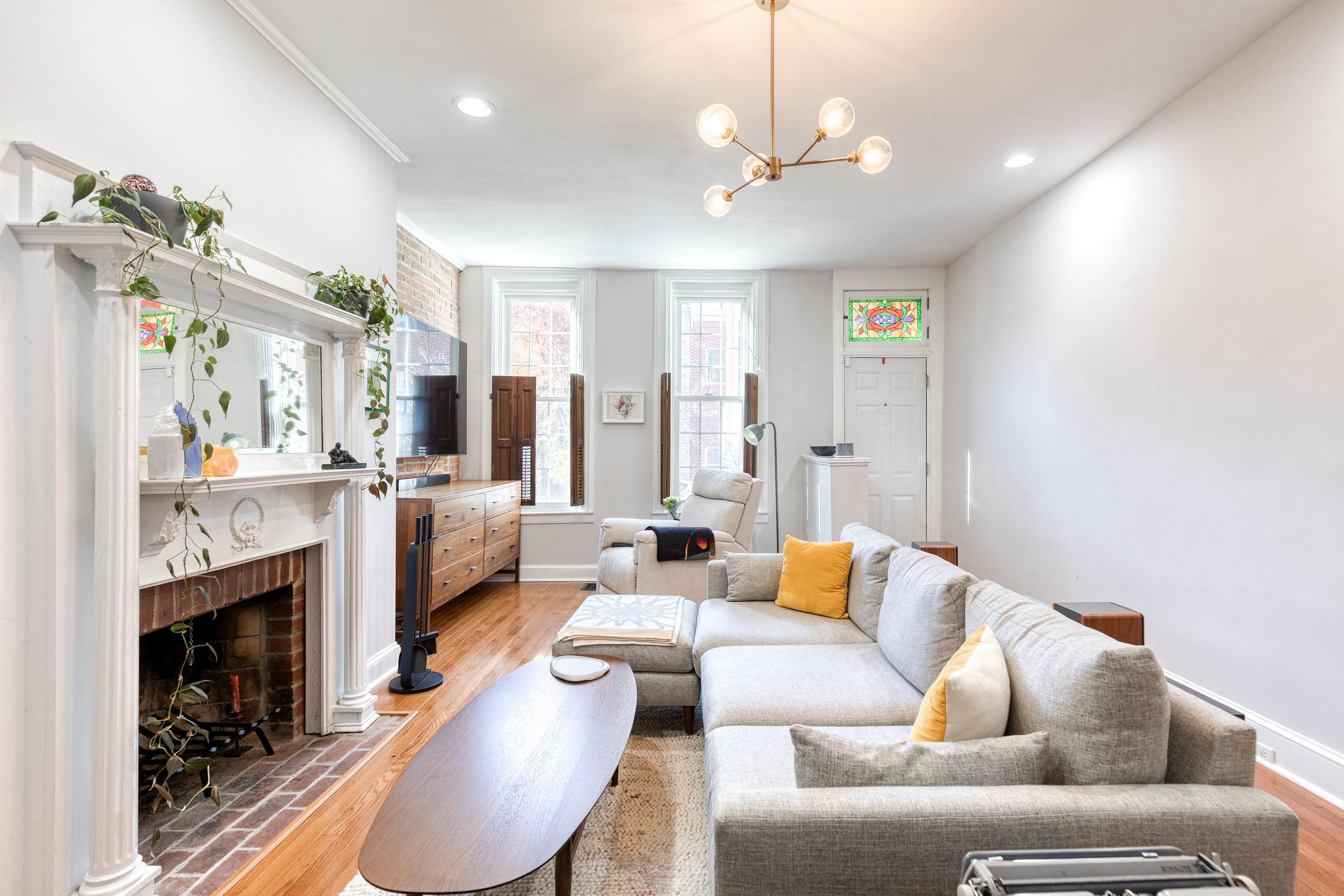 Live your best Federal Hill life in this beautifully updated 3 bedroom, 2.5 bath, almost 2000 square foot home with a private roof deck and an oversized parking pad. Historic charm meets modern style with exposed brick, refinished hardwoods, restored fireplaces, original stained glass, and custom millwork throughout. The main level offers effortless flow, from a bright living room with a working wood fireplace to a spacious dining room and a fully renovated eat-in kitchen with new stainless-steel appliances and ample storage. A chic powder room and new washer/dryer complete the space. Upstairs, you'll find original wide-plank floors, a renovated bath with a gorgeous clawfoot tub, and two generous bedrooms, including a dreamy primary suite with a sitting room and oversized closet. The third-floor suite delivers even more flexibility, plus direct access to the 12' x 20' roof deck with sweeping city views. Major systems have been thoughtfully updated — HVAC, electrical, plumbing, roof, masonry, and cornice work are all complete, along with a new security system already in place. Flooded with natural light and full of stylish touches, this home is just steps from parks, restaurants, shops, and the waterfront - refined, historic, and perfectly located!