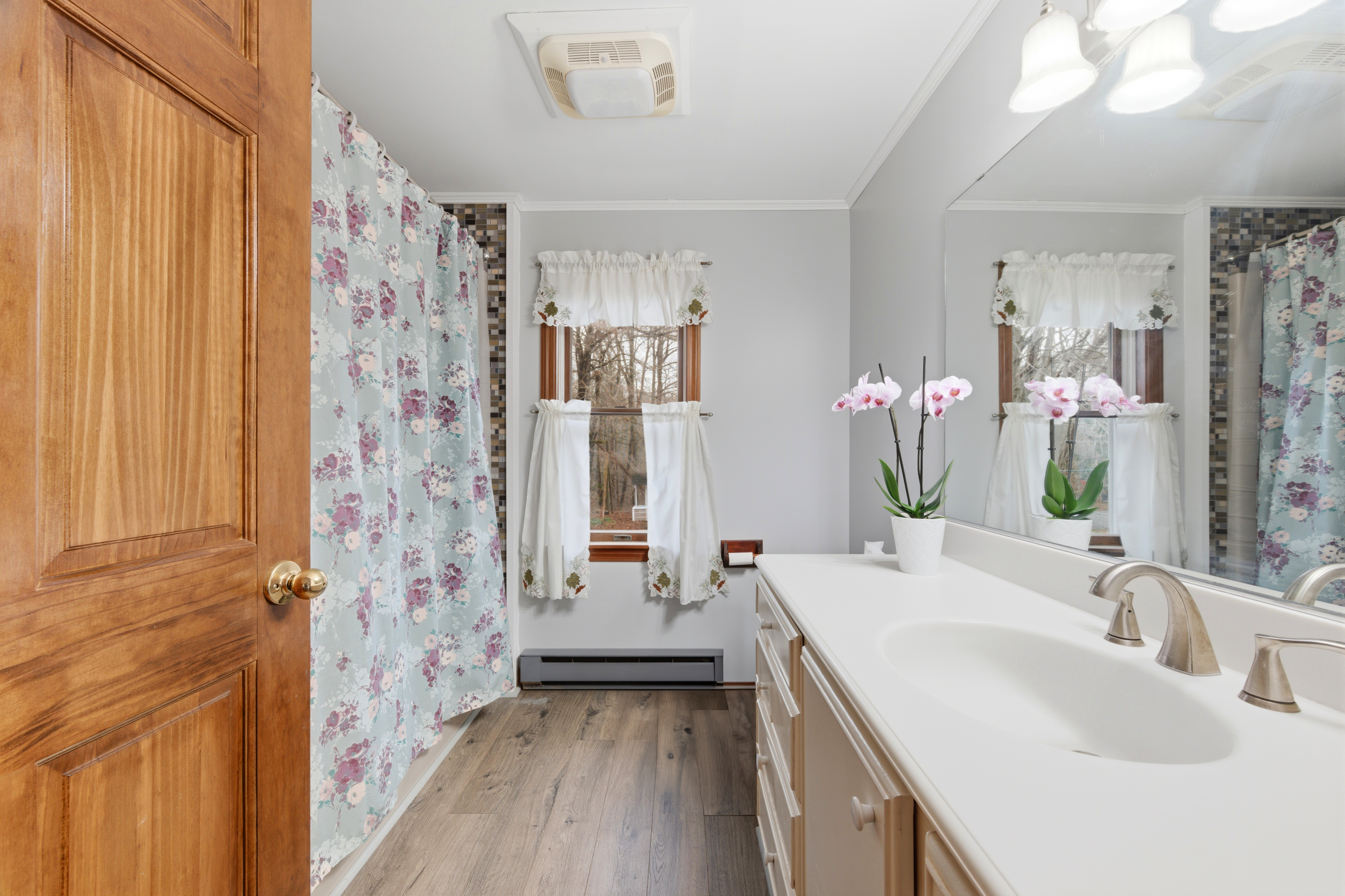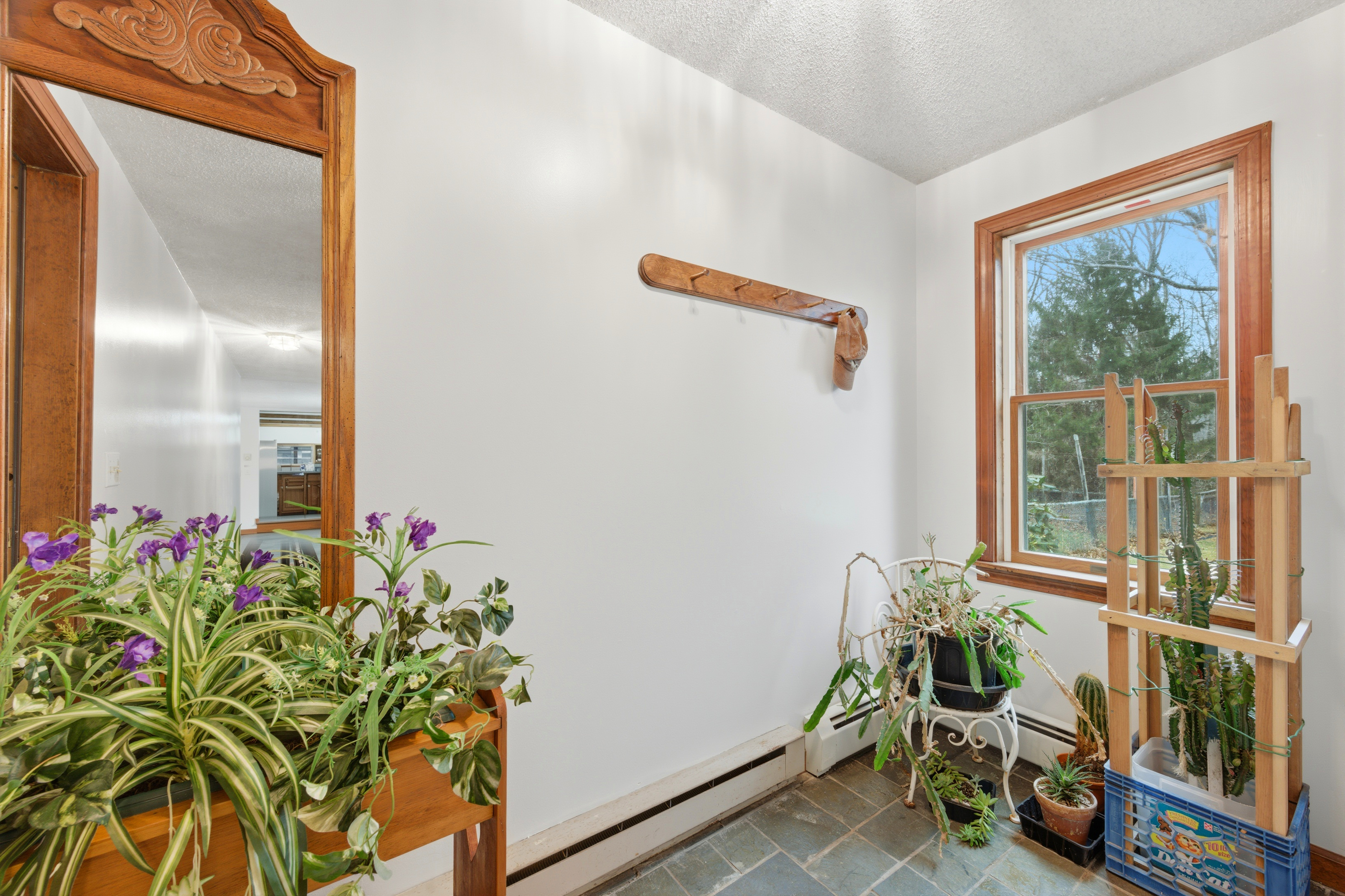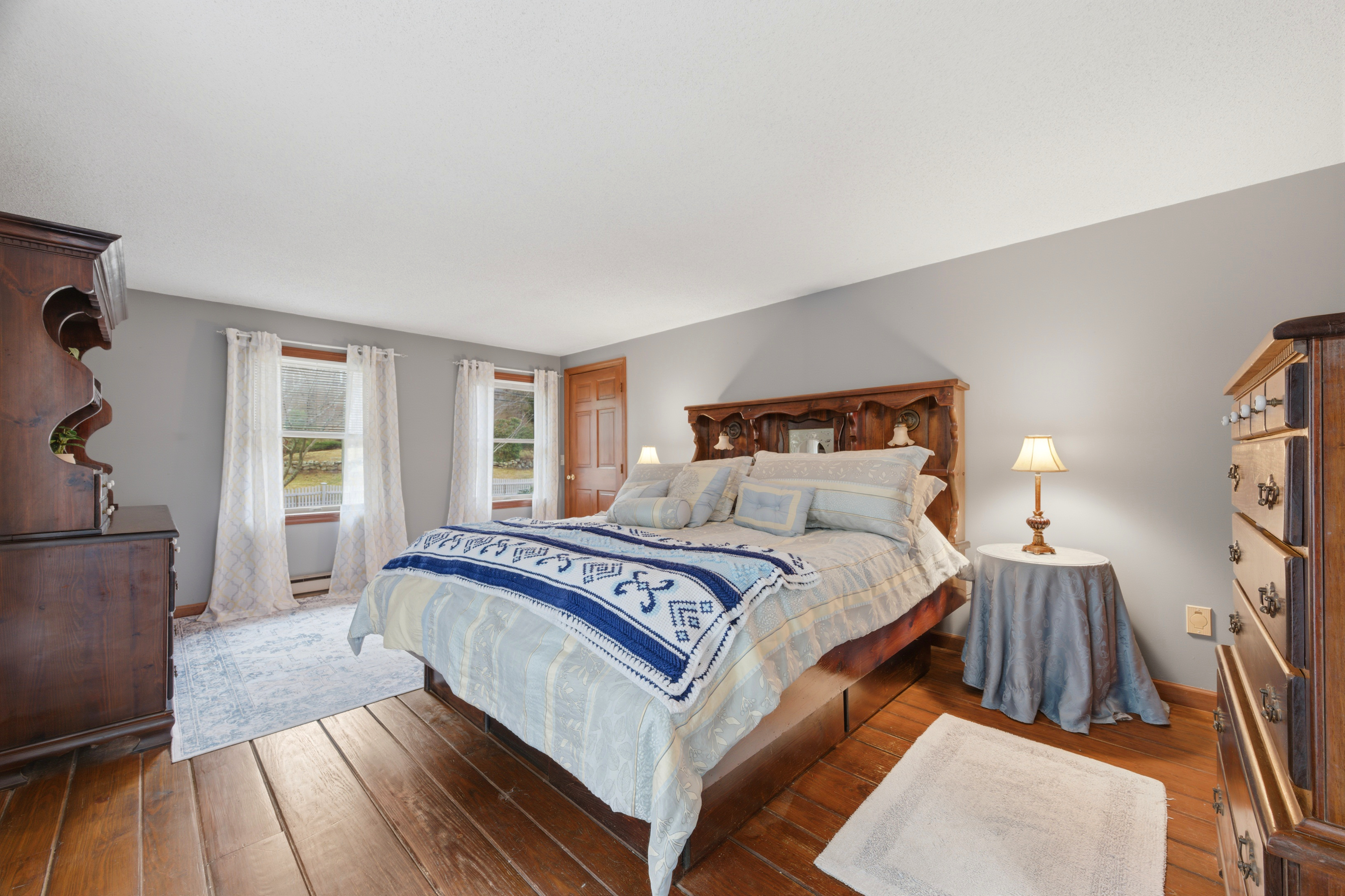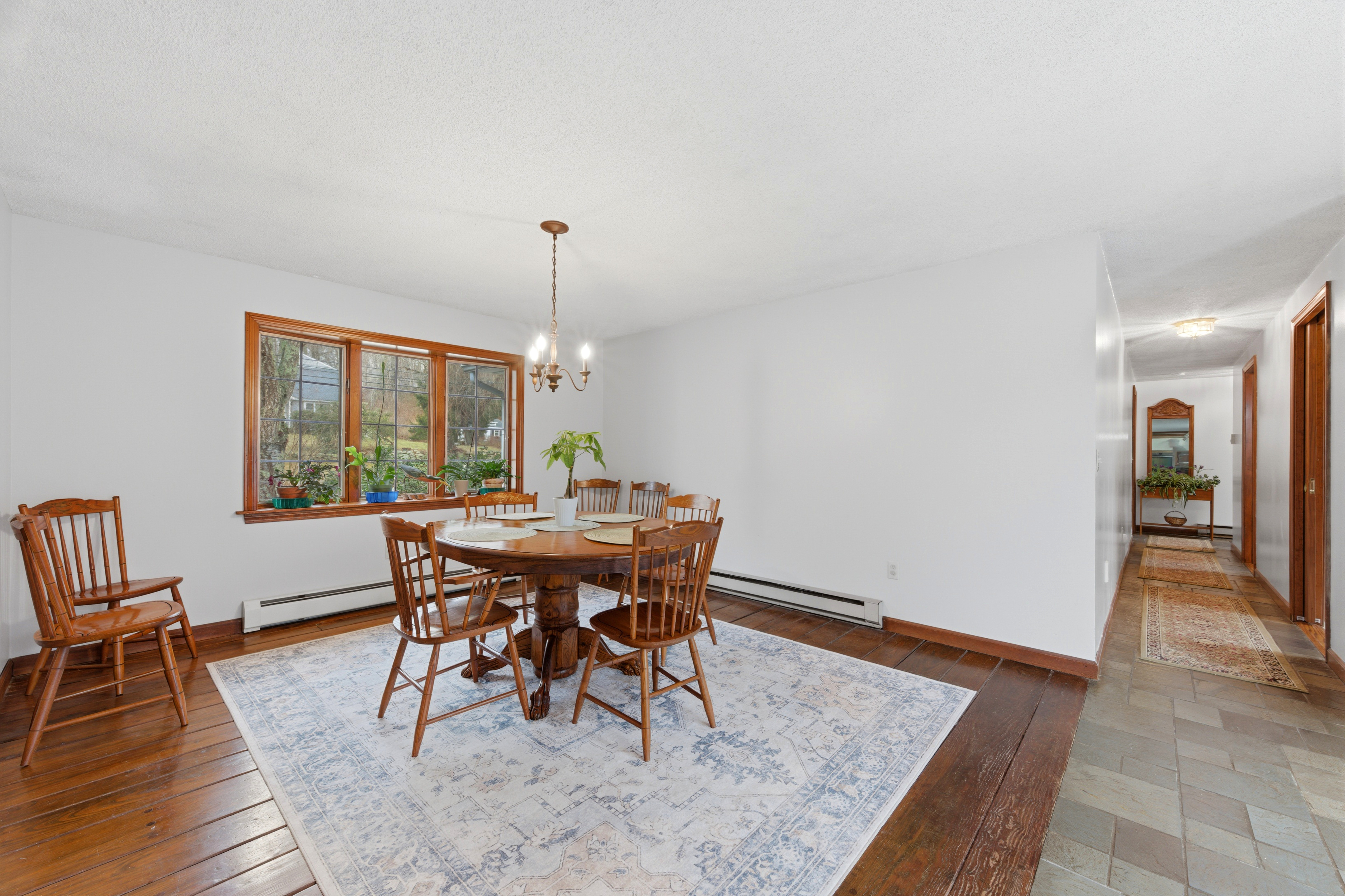 Charming clapboard sided one owner home with a first floor primary bedroom. This warmly maintained 3-bedroom, 2.5-bath residence blends warmth, character, and a true connection to nature. The main level features a spacious primary suite with direct access to a private covered porch-perfect for quiet mornings or relaxing evenings. Throughout the home, well-preserved wood details and framing add a sense of craftsmanship and enduring quality. A two-car garage provides added convenience and ample storage. Set on 1.36 acres of lightly wooded land, the property provides exceptional privacy. Enjoy a generous backyard, established vegetable garden beds, and a private trail leading directly to the Four Mile River-an ideal setting for outdoor enthusiasts. Conveniently located just minutes from Rocky Neck State Park and Samuel M. Peretz Park, this home offers easy access to beaches, trails, and the natural beauty of Connecticut's shoreline.