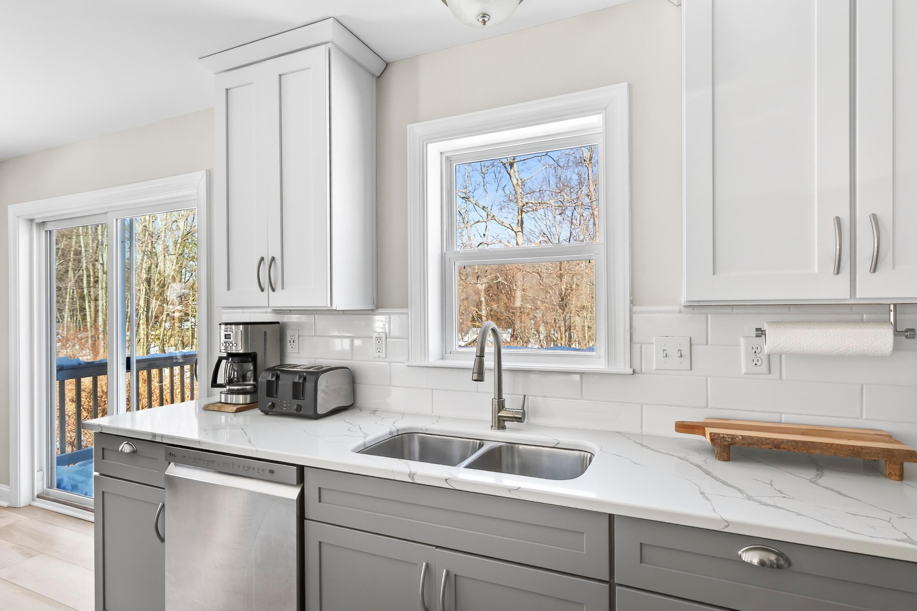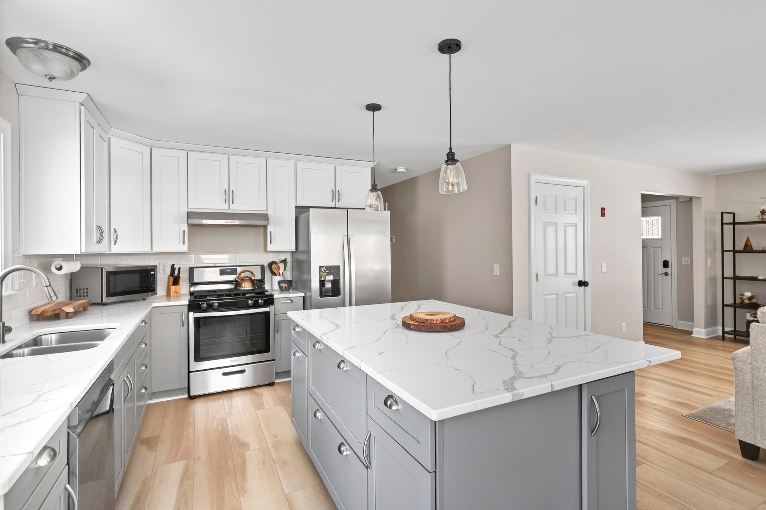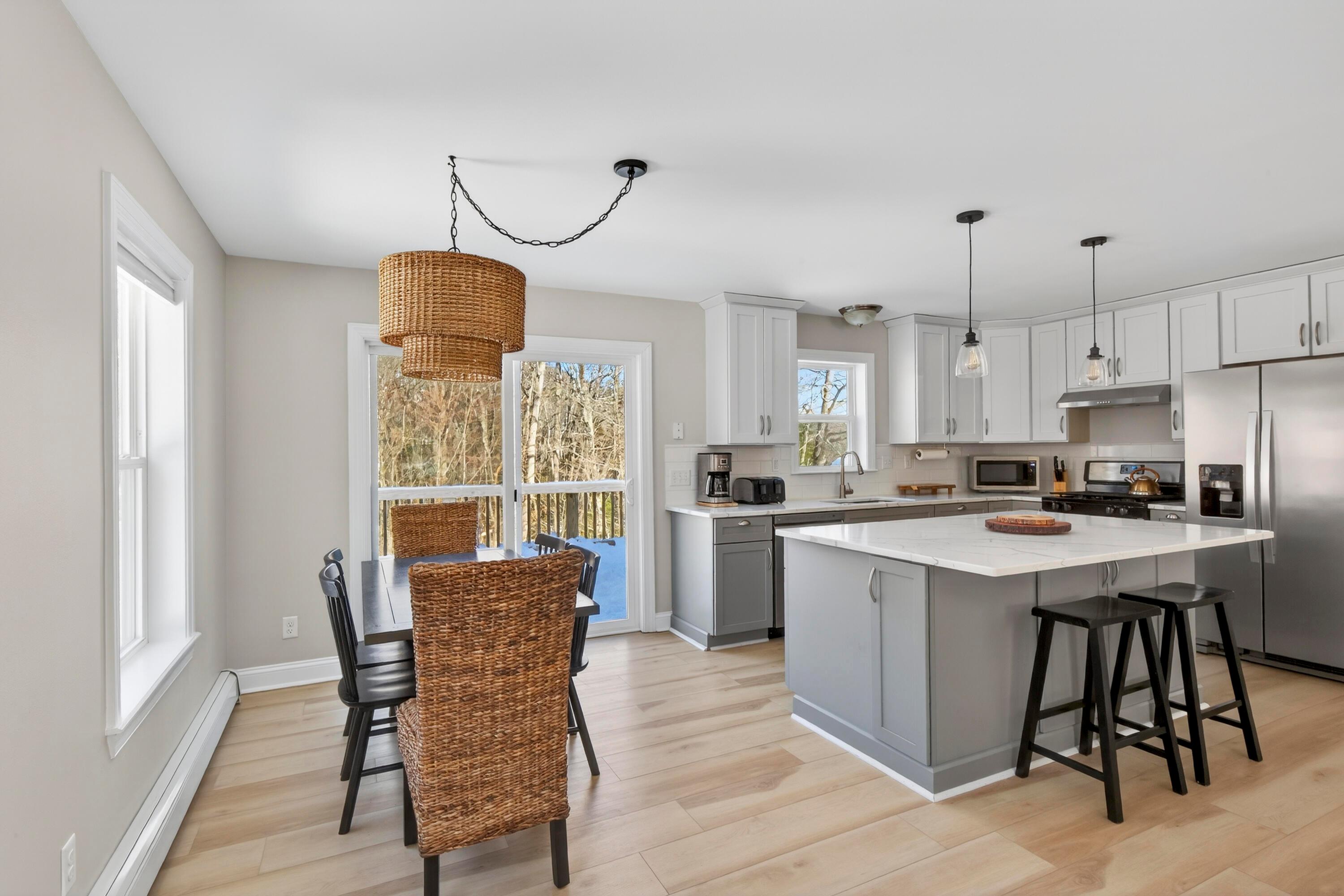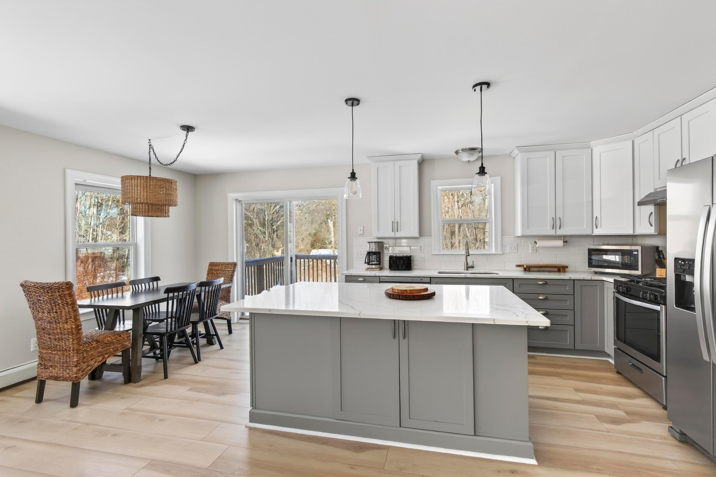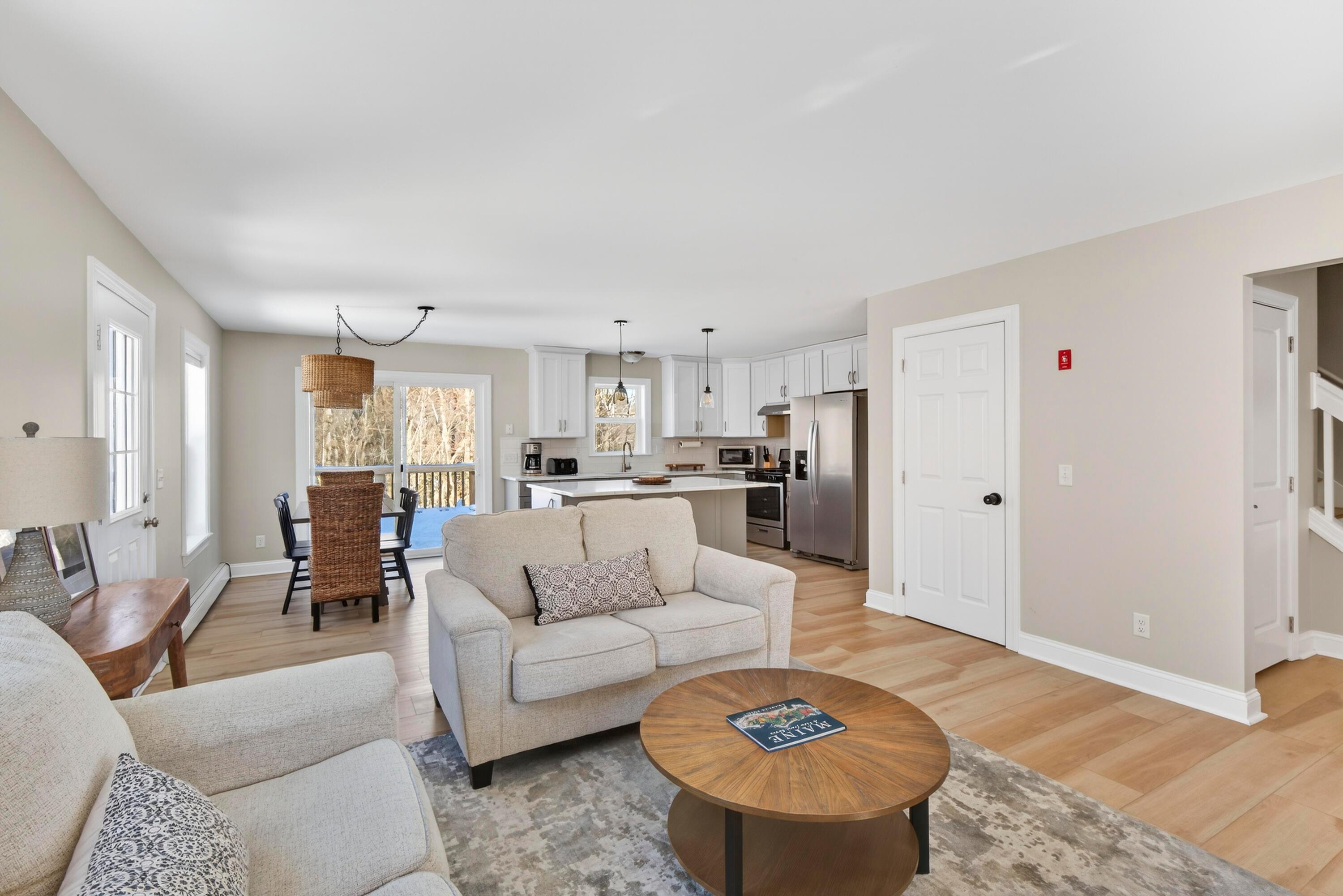 This colonial style home is conveniently located in a lovely neighborhood just a mile to downtown Camden and close to all area amenities. The first floor offers an open concept kitchen, dining, and living room which open up to the front porch and back deck. There is a first floor primary bedroom with walk in closet and full bathroom, and a half bath laundry room, the second floor has four bedrooms and a full bathroom. The daylight lower level may be accessed internally and has its own external entrance. There is finished living space including a kitchenette and full bathroom. This space offers an excellent opportunity for private guest space, or a variety of uses. There is also a utility and storage room.