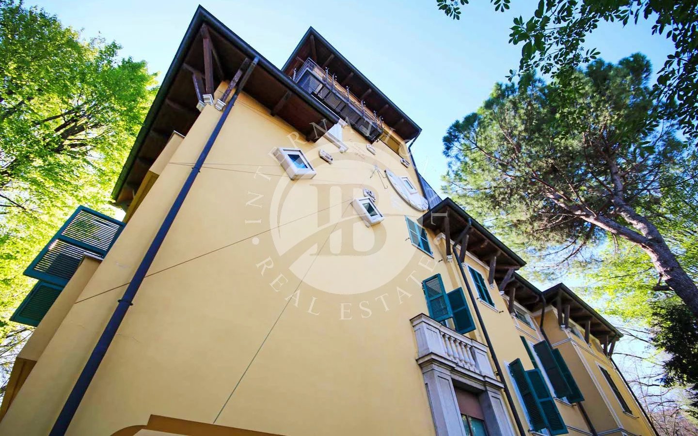 In Parma, on Viale Campanini, we present an exclusive independent Liberty-style villa, set amidst greenery and surrounded by a private park of approximately 900 sqm. The villa, with a total area of 750 sqm, is arranged over three floors plus a panoramic tower, featuring architectural details and furnishings that make it a true home of art and charm.Basement (225 sqm, H 2.30 m): large 65 sqm tavern with direct garden access, eat-in kitchen, bathroom, laundry, cellar, and a two-level studio apartment. The floor also includes the central heating room and additional auxiliary spaces.Raised ground floor (175 sqm, H 3.40 m): main entrance, spacious living room with terrace, eat-in kitchen, guest bathroom. The villa is surrounded by the park, ensuring privacy and seclusion. An external 50 sqm outbuilding serves as a children’s play area, heated and paved, with an adjacent 32 sqm garage.First floor (157 sqm): sleeping area featuring a master bedroom with en-suite bathroom, two double bedrooms, one twin bedroom, a gym, and two bathrooms.Second attic floor (144 sqm): generous living area, large study, bedroom with private bathroom, and a mini-apartment with living room, sleeping area, and bathroom. A 12 sqm terrace completes this floor.Tower (15 sqm): connected to a 25 sqm lower room and a 15 sqm small terrace, offering a magnificent panoramic view of the city.The villa stands out for the charm of its interiors and meticulous attention to detail: Venetian stuccos, Vicenza stone floors, Verona red marble, and precious woods, perfectly harmonized with luxury furnishings, antiques, and Venetian artisanal pieces. Every room tells a story, with artistic and cultural references from around the world.The landscaped and scenic park further enriches the property with riverstone paths, Vicenza stone paving, and elements inspired by ancient Greece. Exotic trees and shrubs create an elegant and private environment, ideal for relaxation or entertaining guests in complete privacy.A truly unique residence, perfect for those seeking a luxurious, elegant, and refined villa where art, history, and nature blend in an exclusive setting.