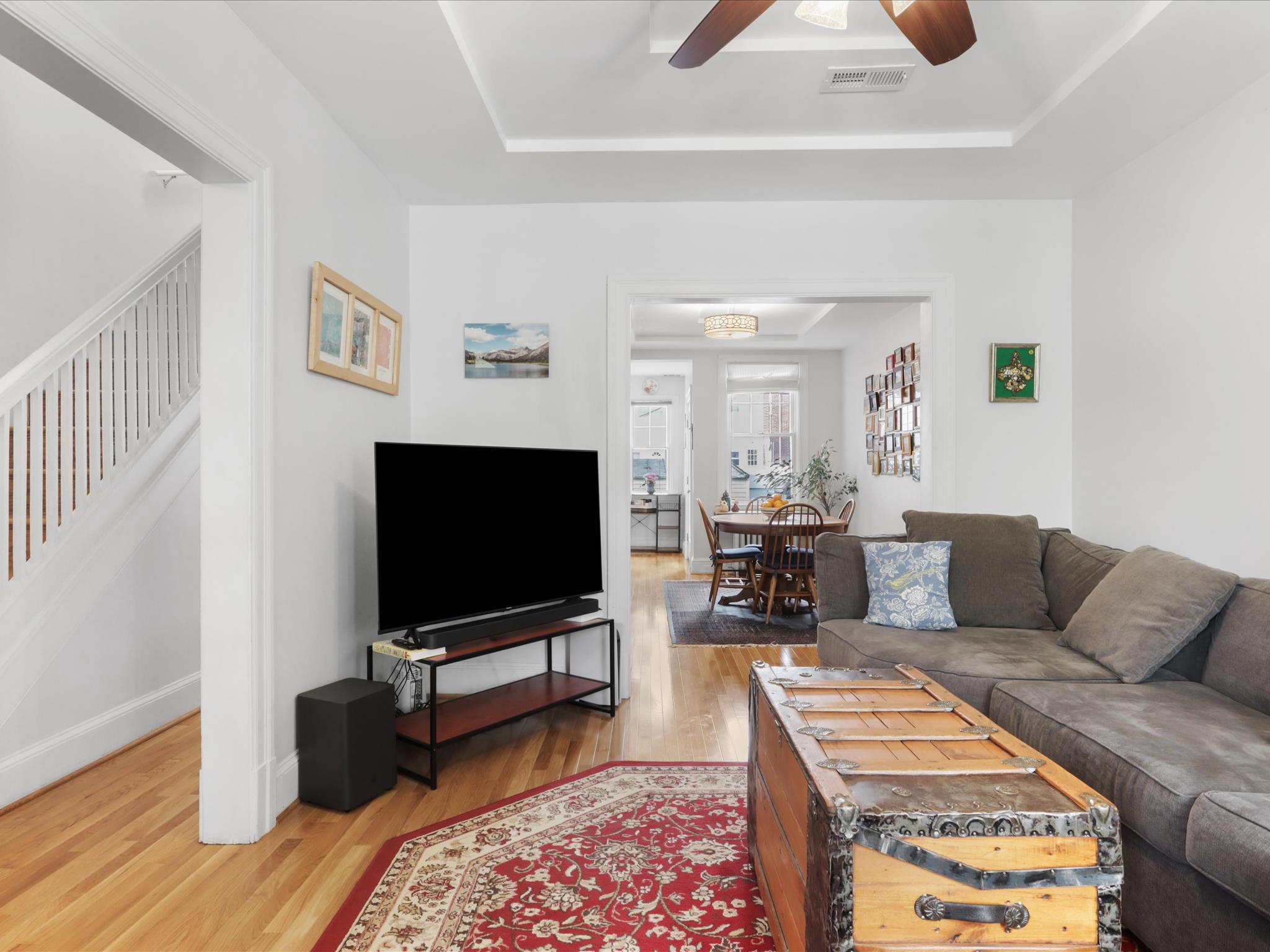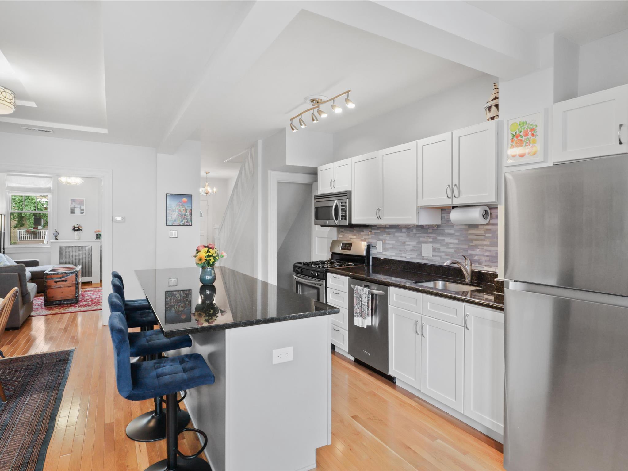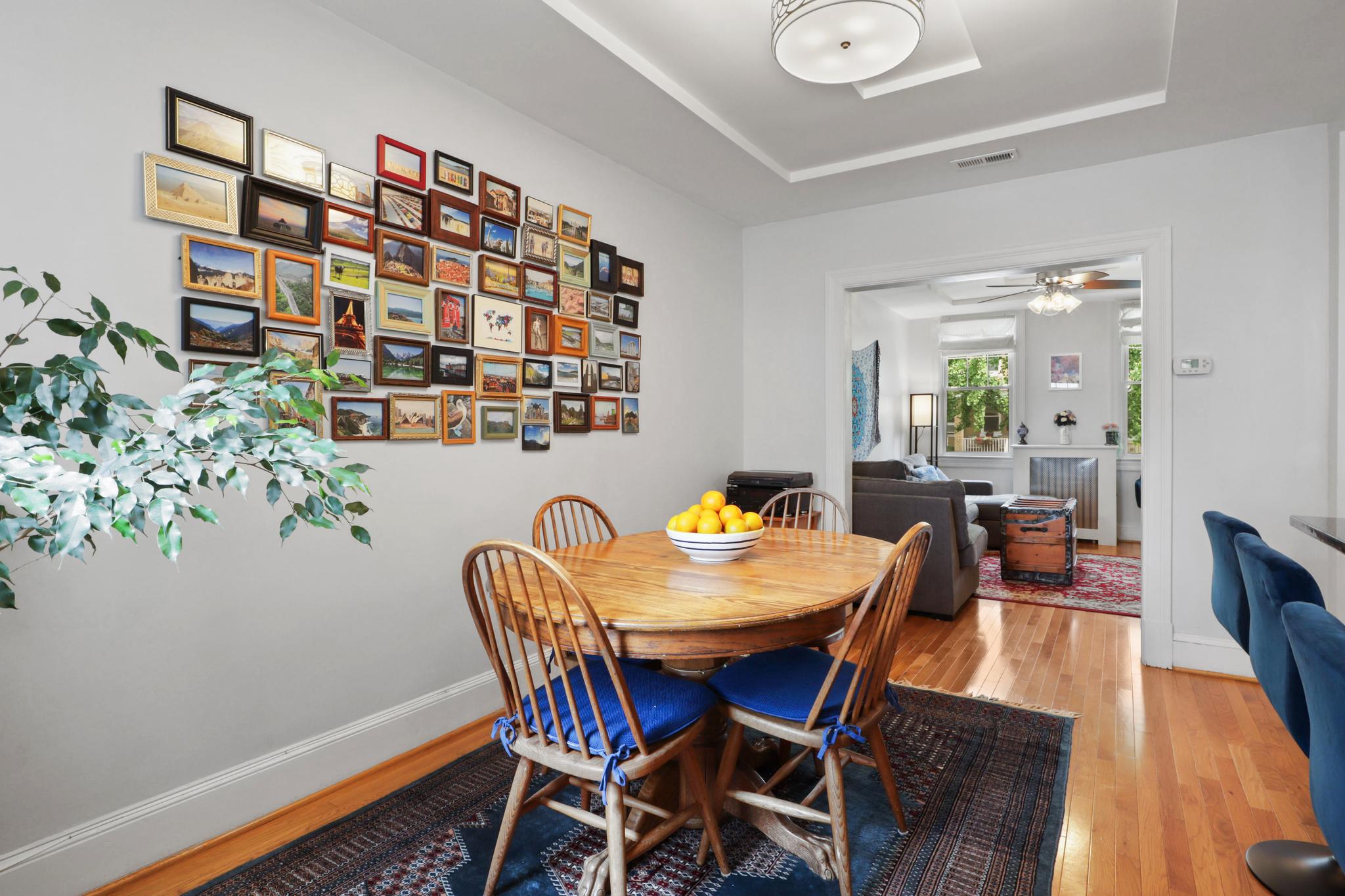 Welcome to this gorgeous 3 bed, 3.5 bathroom Wardman row home in the Hill East neighborhood in Washington DC. This home features hardwood floors on the main level and upper level, crown moulding, and updated windows. The formal living room features a gorgeous tray ceiling and is filled with natural light. The main level has a very nice open floor plan and flows so beautifully. The kitchen was renovated in 2022 and includes a large island with seating for four and is open to the dining room. The tray ceiling detail continues in the dining room. There are white cabinets, granite counters, gas cooking, stainless-steel appliances, and a beautiful tile backsplash. There is also a breakfast nook off the back of the kitchen and a new half bathroom. Head from the breakfast nook to the rear deck and step down to your private, fully-fenced yard. Enjoy the hardscaping and a one-car garage with both alley and yard access.Head upstairs to find 3 bedrooms and two full bathrooms renovated in 2019. The owner’s suite features a private en-suite bathroom with a large, walk-in shower. Each bedroom has a closet, blinds, and a ceiling fan. The hall bathroom features a bath/shower combo and a skylight with leaded, stained glass skylight. The finished lower level includes a family room/rec room/office, a full bath, and a large laundry and storage room. The full bath features a bath/shower combination. The owners updated the space with a new mini-split system for custom temperature control. The storage room features built-in shelving, additional shelving, and a full-size washer and dryer. There is also a door that heads to the back yard for easy access, which makes the storage room a perfect mud room.Hill East is a wonderful neighborhood close to shopping and everything Capitol Hill has to offer. You are walking distance from one of the highest rated burger spots in DC, Hill East Burger, and just a block away from Sala Thai and Duffy's Irish Pub. Be sure to stop by The Roost, the local culinary clubhouse/food hall or the local favorite Pretzel Bakery. The house is very conveniently located only 0.1 miles to the Stadium Armory metro station (a 3 min walk) and has easy access to bike paths, the RFK rec fields, a local library, rec center, and Lincoln Park. You will love living here!