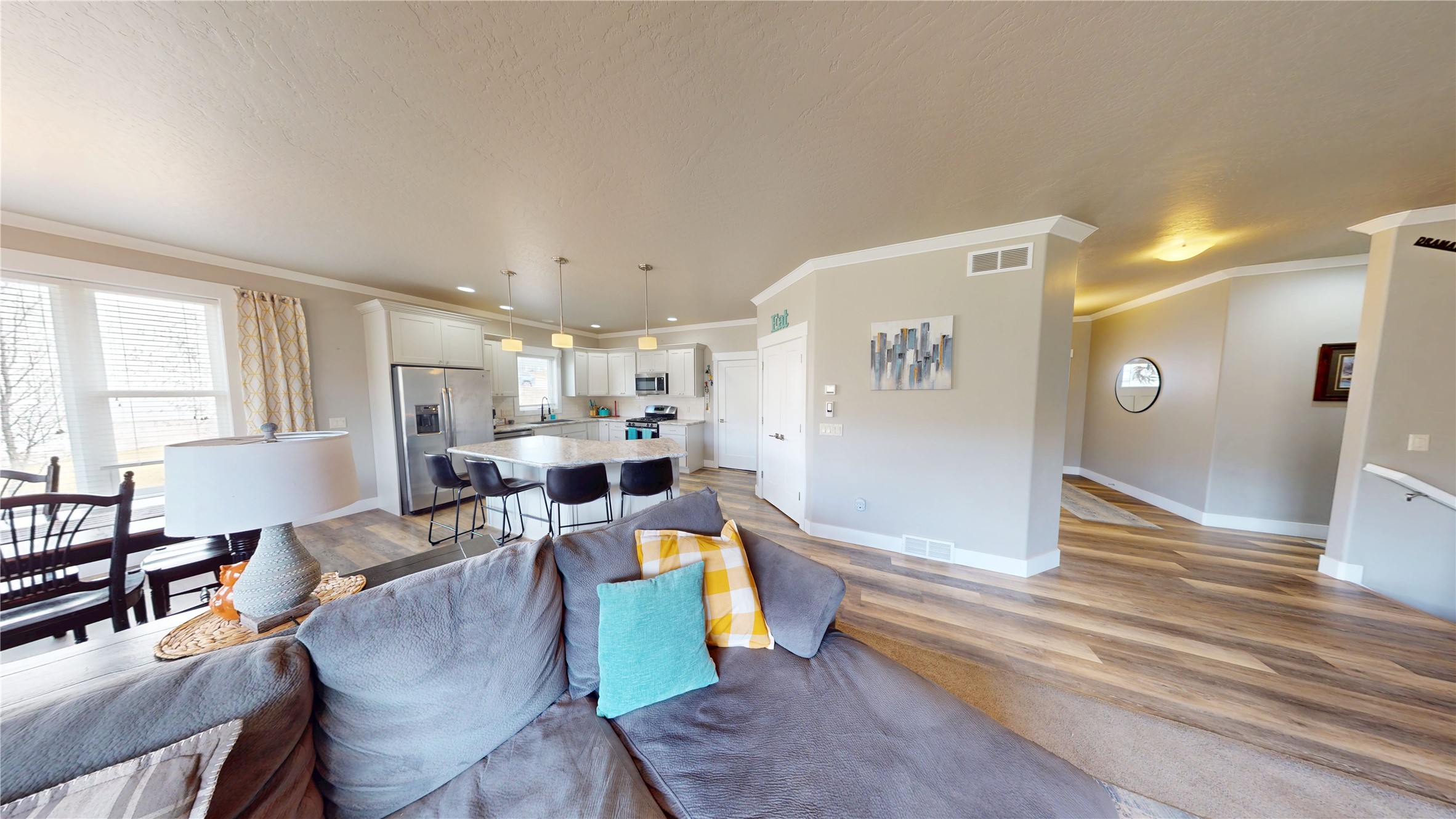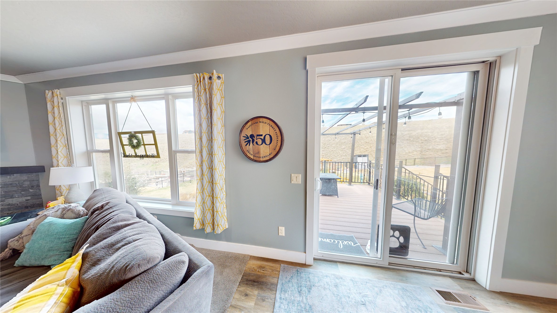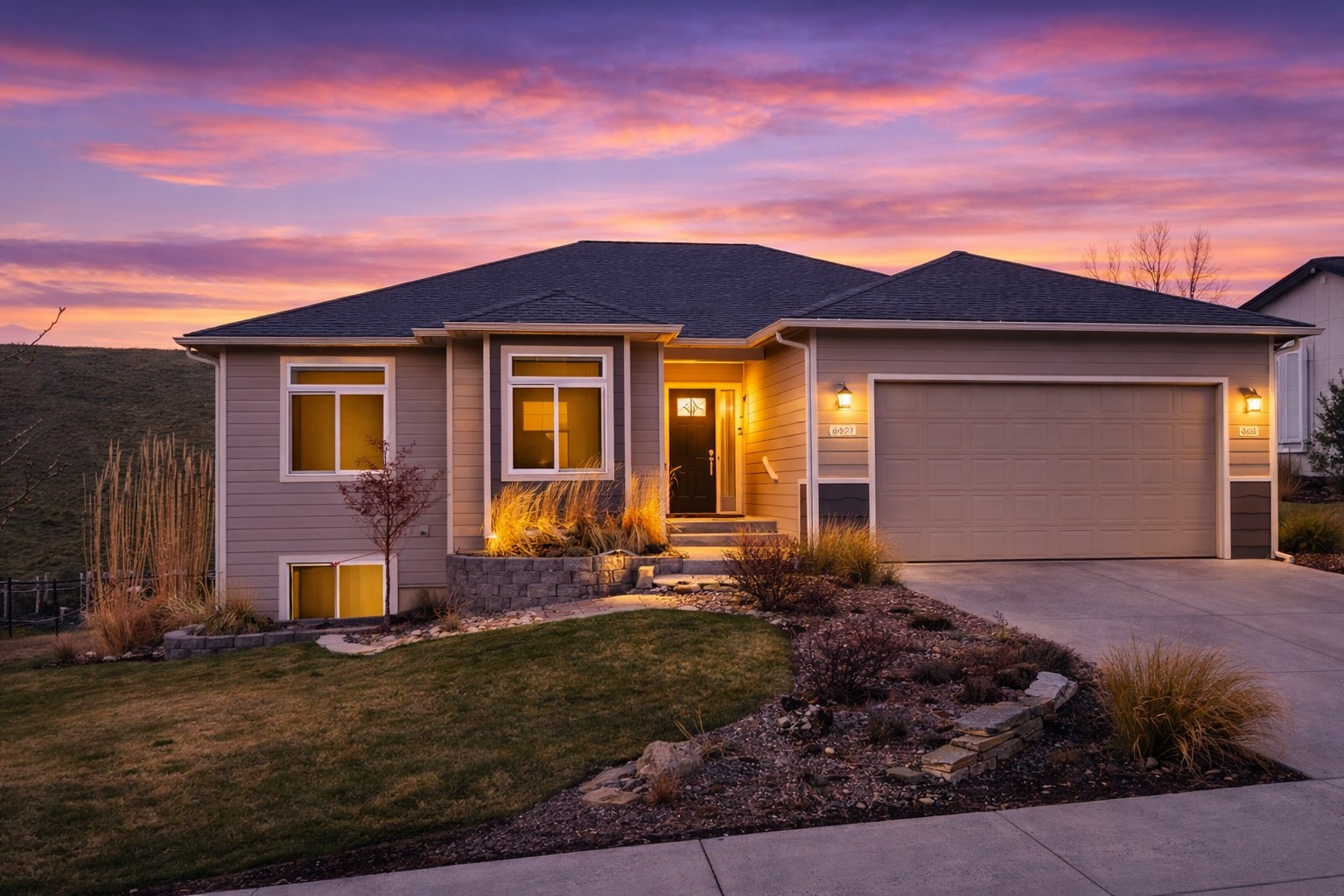 Welcome to this beautifully designed ranch-style home in the highly sought-after Upper Linda Vista neighborhood! Built in 2017, this spacious 4-bedroom, 2-bath home offers 1,744 sq ft on the main level and 1,744 sq ft full daylight basement with room to grow. The main level features 9-foot ceilings and crown molding throughout, creating an open, airy feel. The living room, kitchen, and dining area are seamlessly connected - perfect for entertaining. The large kitchen island offers space for stools and storage in the kitchen, while oversized rooms provide plenty of space for gatherings. A cozy gas fireplace adds warmth, and expansive windows fill the home with natural light while showcasing views of the landscaped backyard and open space beyond. The main floor includes a generous primary suite with a well-sized closet and private bath featuring double sinks and a shower. Two additional bedrooms, a full bathroom, and a spacious front entry with a convenient wall tree complete the main level. Step outside to a fully landscaped 13,045 sq ft lot filled with vibrant perennials for seasonal color. Enjoy direct access to the open space and nearby walking trails from your fenced backyard. A pergola is ready for your outdoor retreat, and a garden area awaits your personal touch. Underground sprinklers are installed in the front and side yards, with the backyard prepped for future installation. The mostly unfinished daylight basement offers incredible potential, already featuring a completed 4th bedroom and space for a 5th bedroom, 3rd bathroom (plumbed), large family room, office, and two storage areas. Just bring your vision to finish it to your taste. Additional highlights include air conditioning, an attached two-car garage, and extra parking. This home combines comfort, space, and future potential in one of the area's most desirable locations - don't miss it!