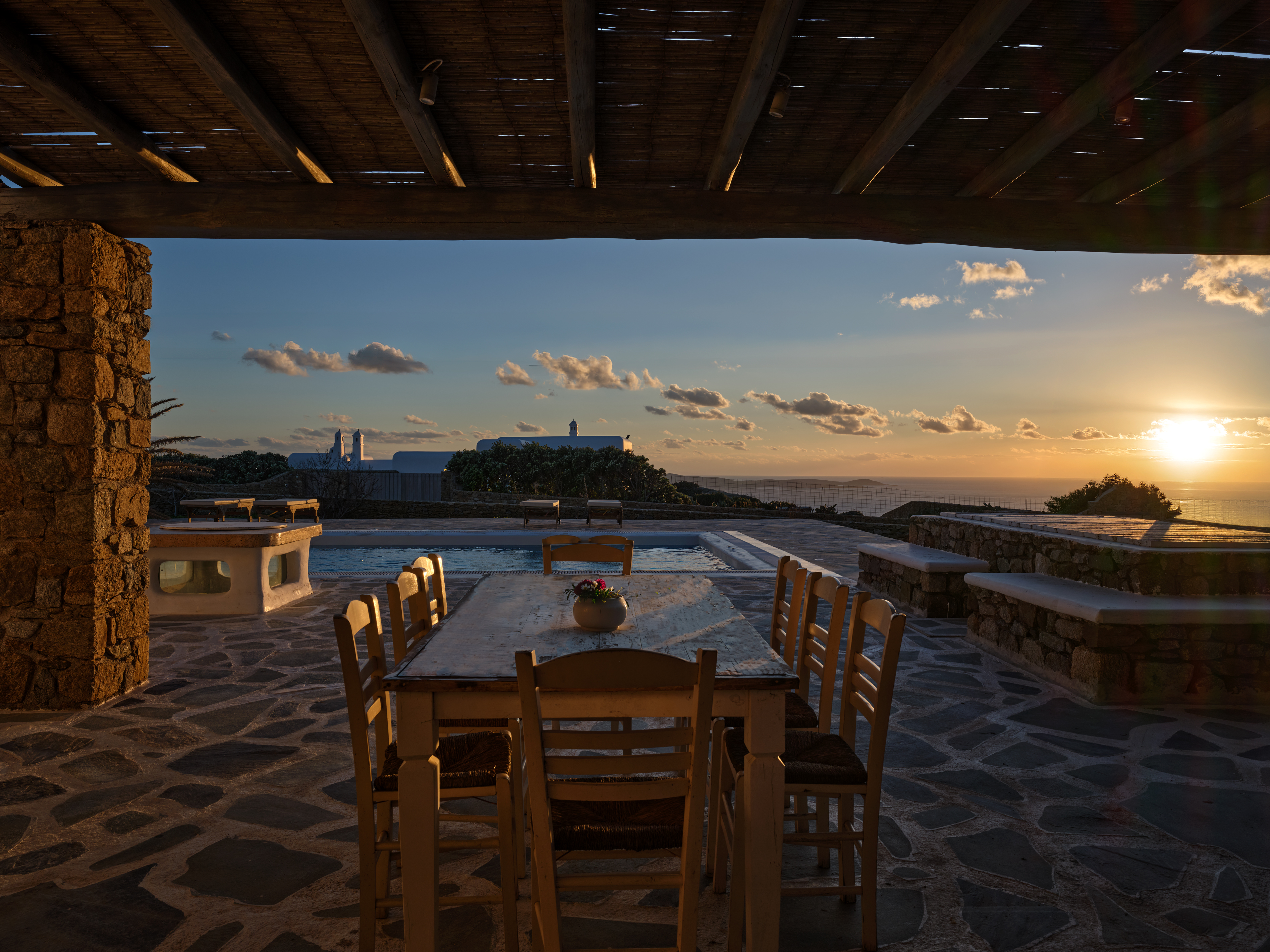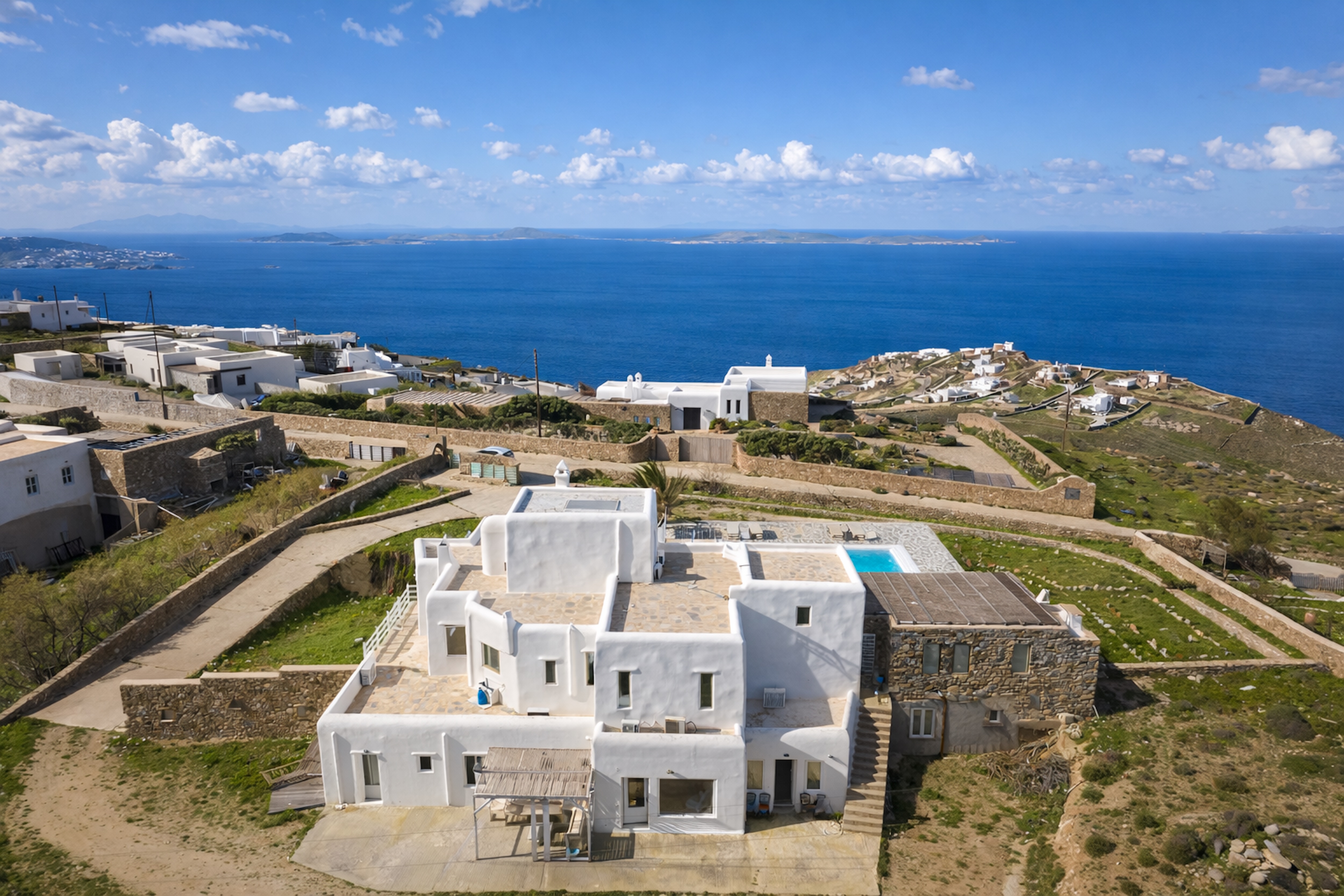 Elevated above the sea, where sunsets wash the horizon in soft gold, this traditional Cycladic villa offers a secluded retreat shaped by light, space, and serenity. Comprising three independent residences, it strikes a considered balance between shared living and complete privacy—ideal for extended family or hosting guests.