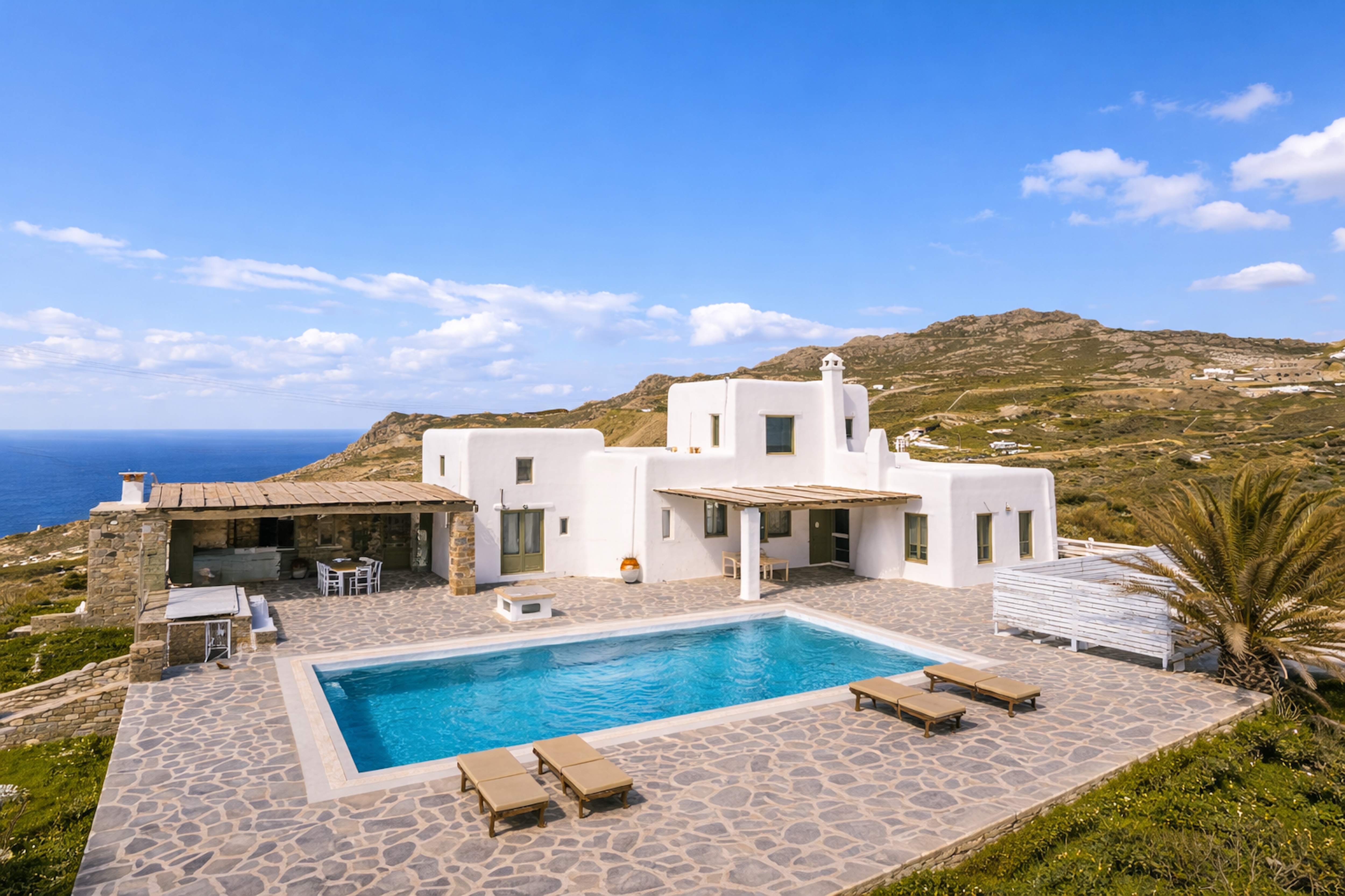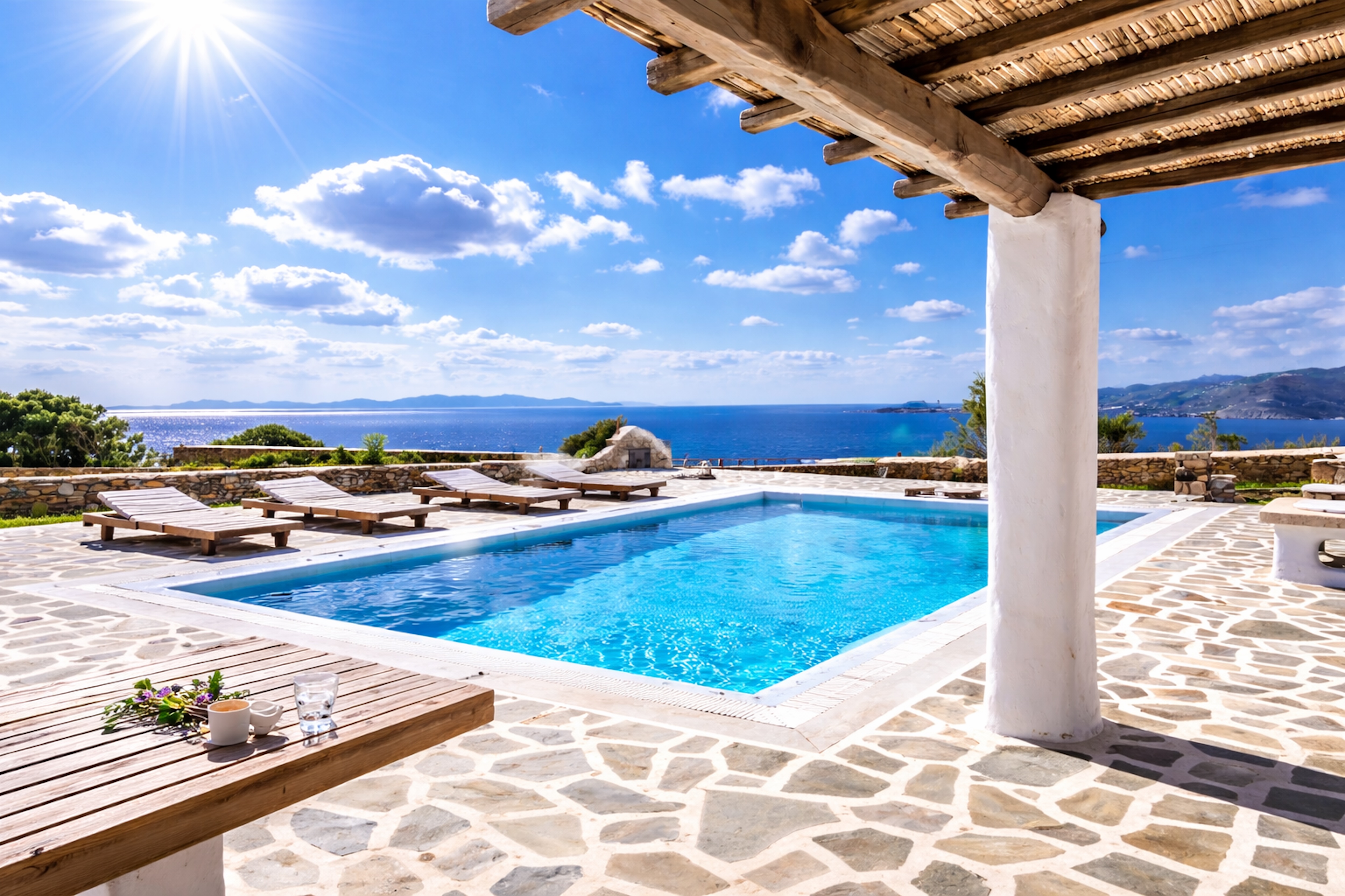 Expansive terraces frame uninterrupted sea views, while the gentle Aegean breeze lends an effortless calm to days defined by relaxation and ease.