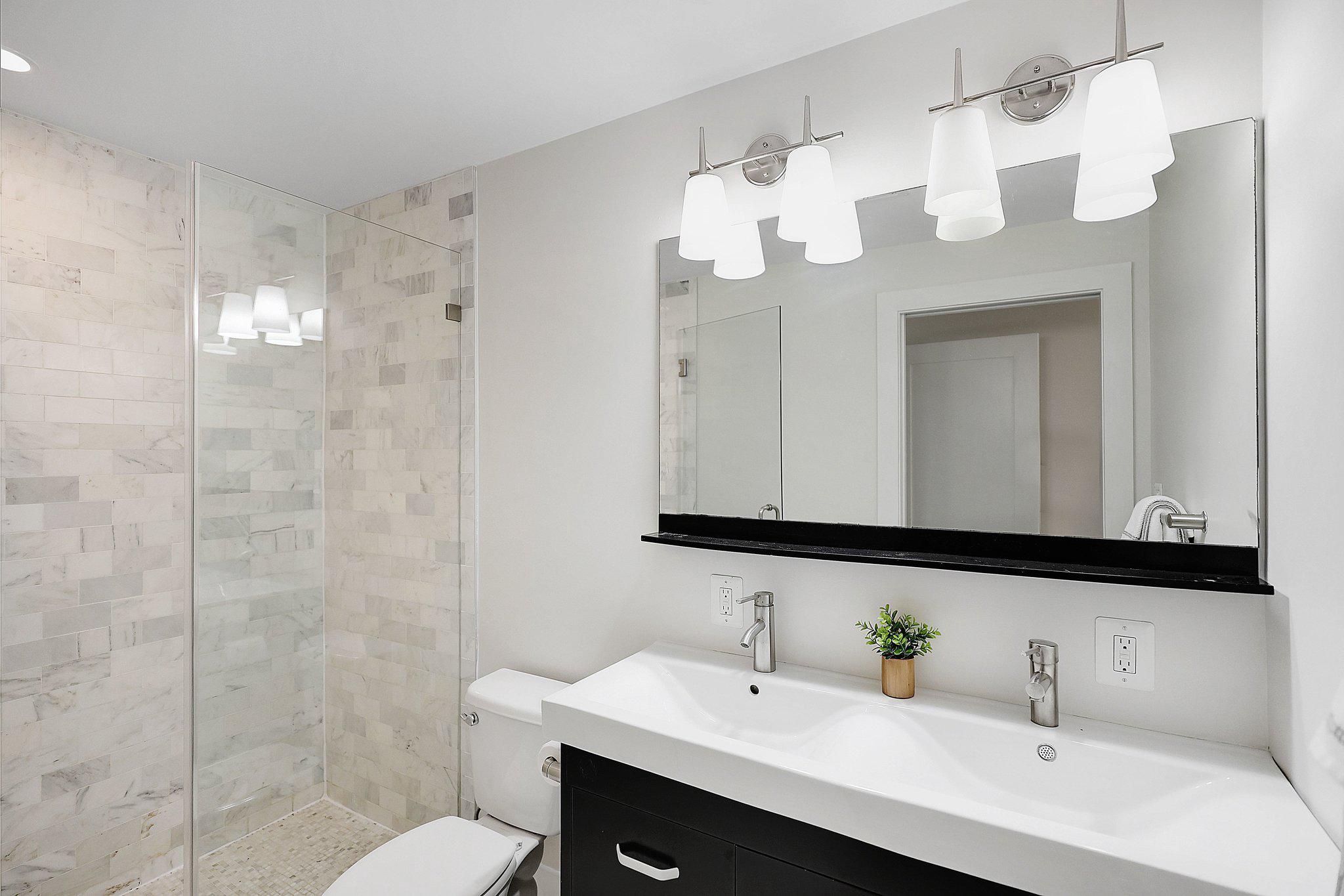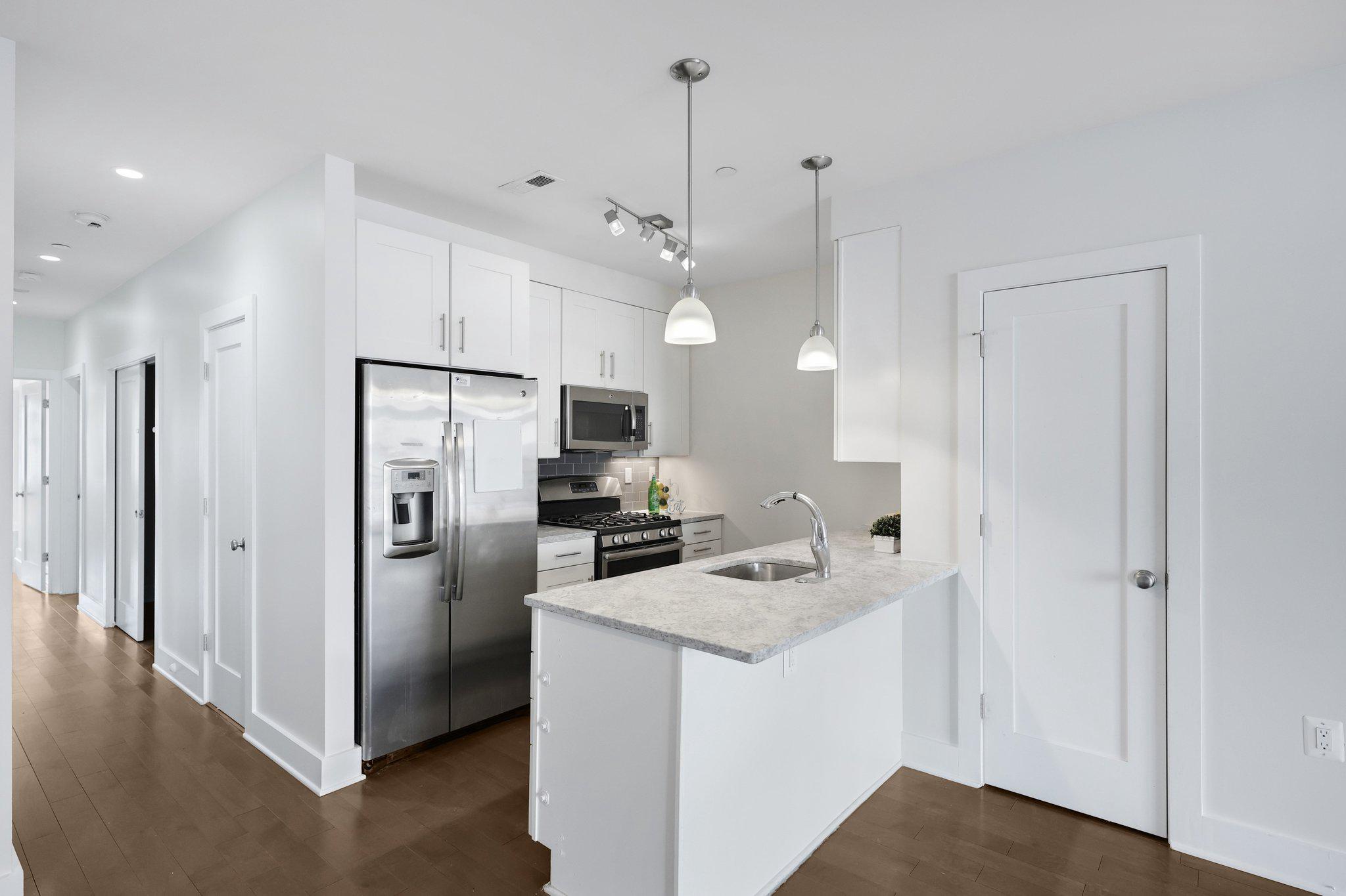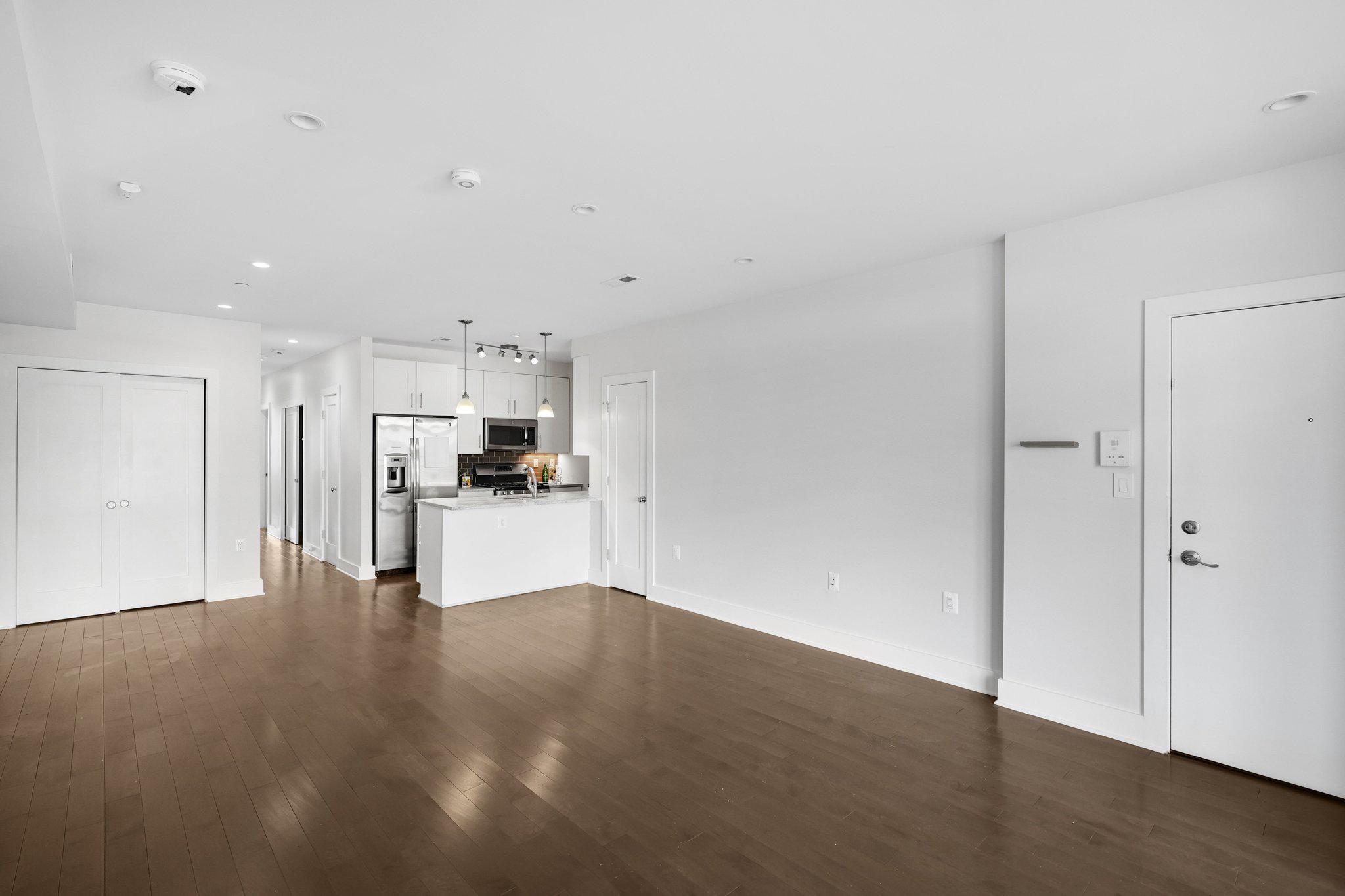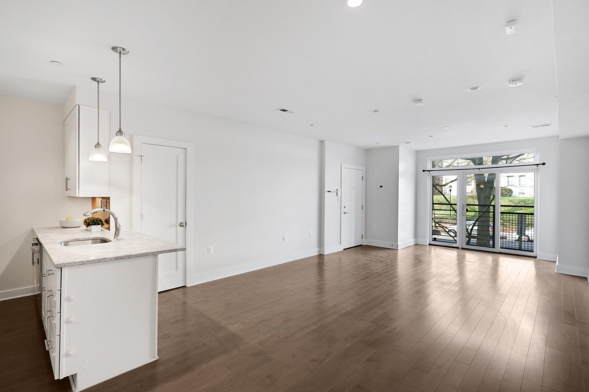 Freshly painted and move-in ready, this 3BD/2BA Columbia Heights condo comes with reserved parking, hardwood floors, floor-to-ceiling windows, and a Juliet balcony that keeps the whole unit bright year-round. The open layout, Carrera marble kitchen, and well-appointed primary suite make this one of the more complete packages available in the neighborhood right now. The kitchen, dining area, and living room flow together in a way that works equally well for a quiet night in or having people over. The kitchen features Carrera marble countertops, stainless steel appliances, a tile backsplash, and custom cabinetry with plenty of storage. The primary suite has a walk-in closet with an Elfa storage system and a private walkout. The en suite bath offers a glass-enclosed shower with custom marble tile, dual vanities, and marble floors — details that set this unit apart. The two additional bedrooms are each genuinely sized for a guest room or home office, and the unit includes a washer and dryer along with deep closets throughout. A few blocks out, both the Columbia Heights and Petworth Metro stops are easily walkable, and several bus lines run straight downtown. Restaurants, groceries, and shops are close enough to handle most errands on foot.